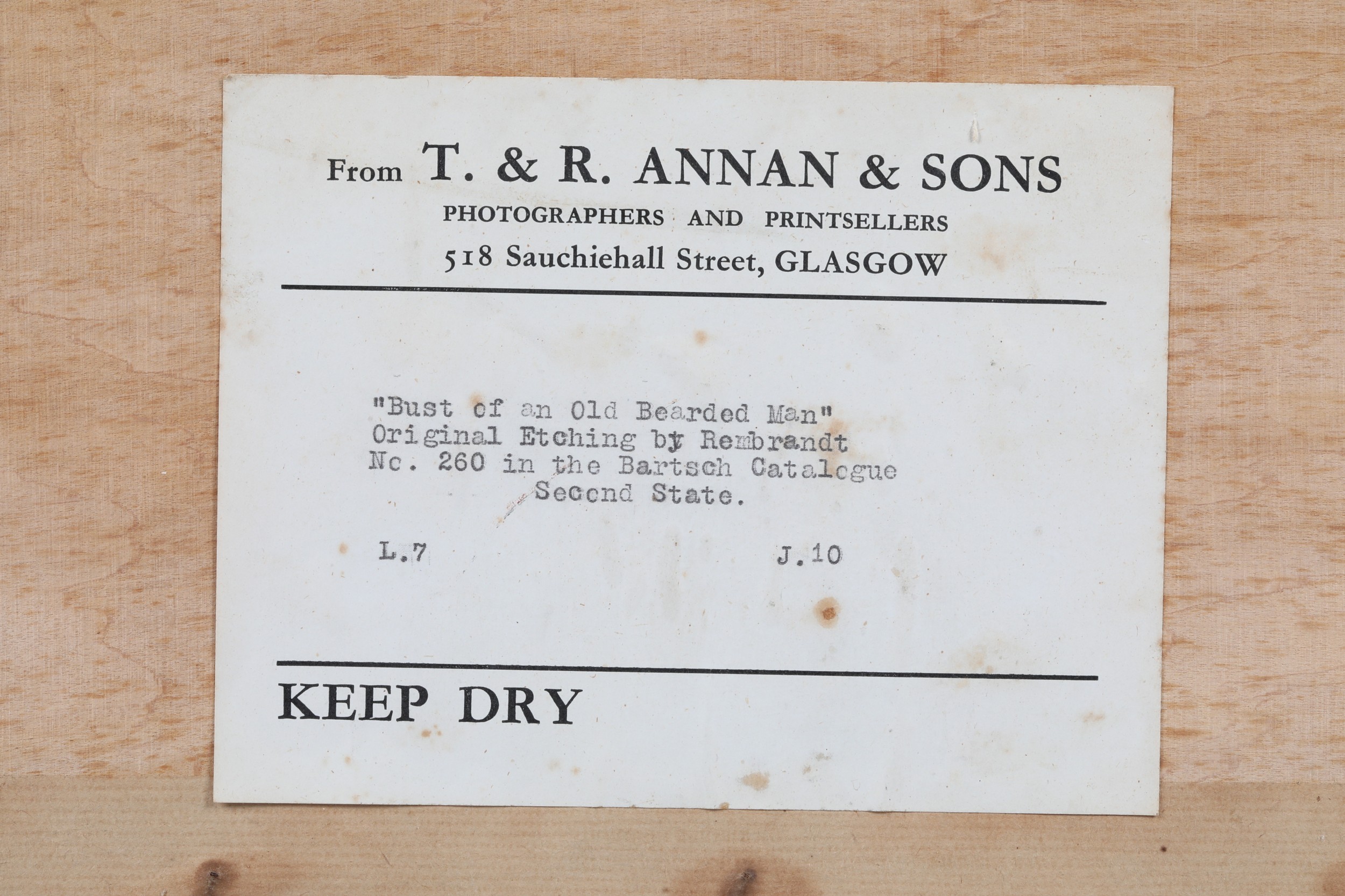Rembrandt Harmensz Van Rijn (Dutch 1606-1669) Framed original etching 'Bust of an Old Bearded Man' 12cm x 10.5cm Provenance: No 260 in the Bartsch Catalogue, Second State, T&R Annan & Sons, Glasgow