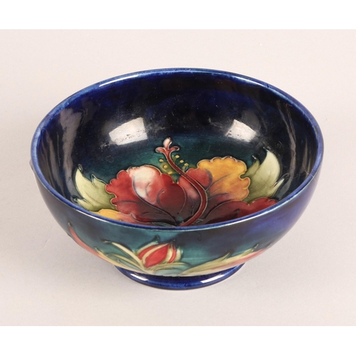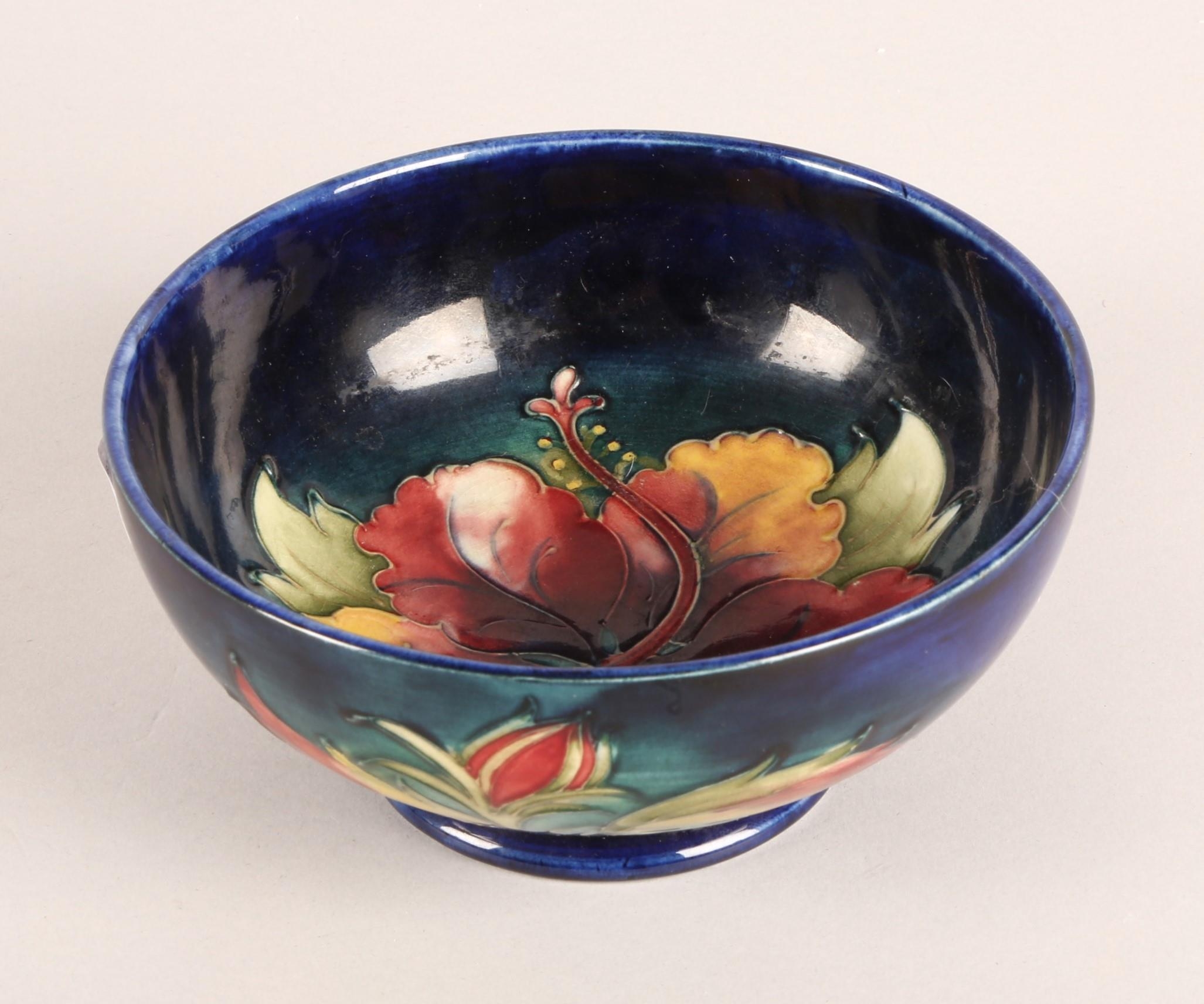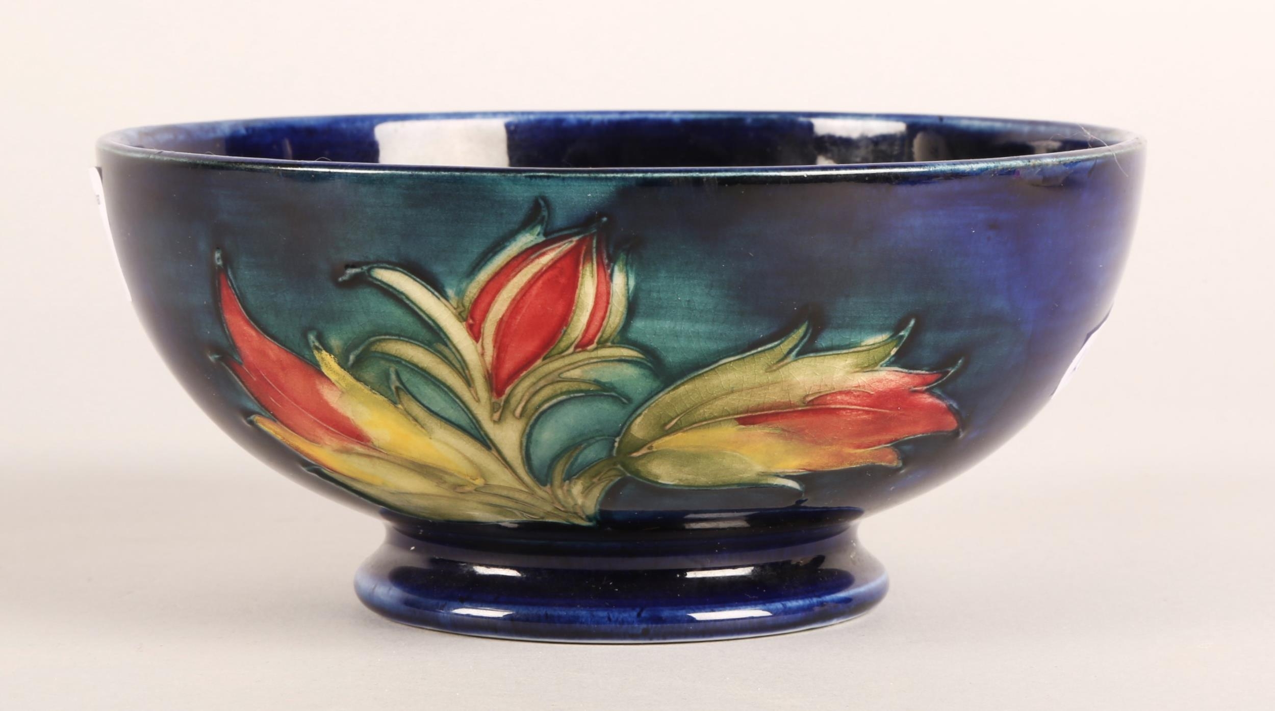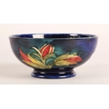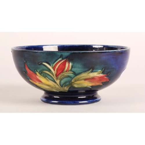 Moorcroft pottery tube lined circular footed bowl on a blue ...
