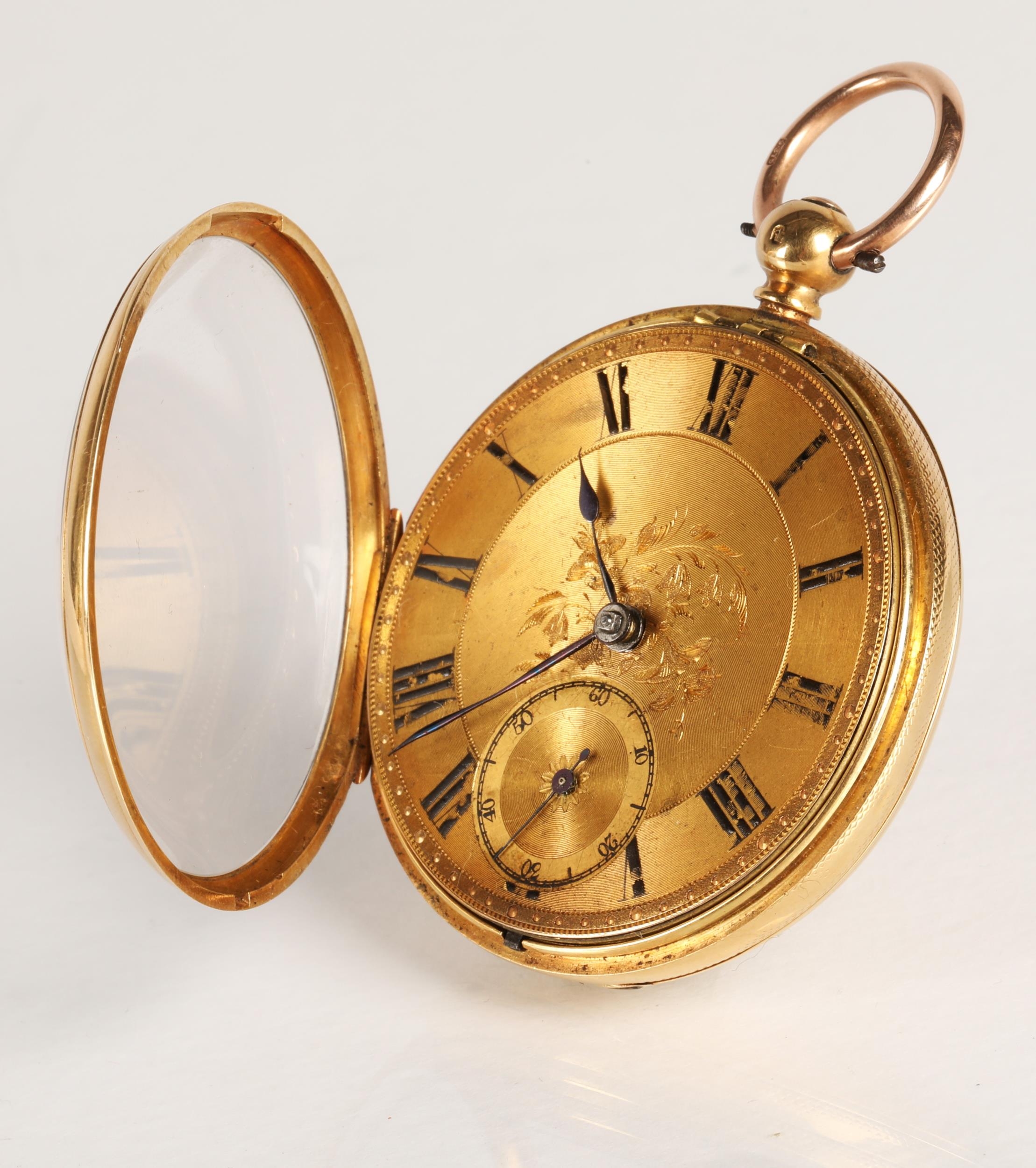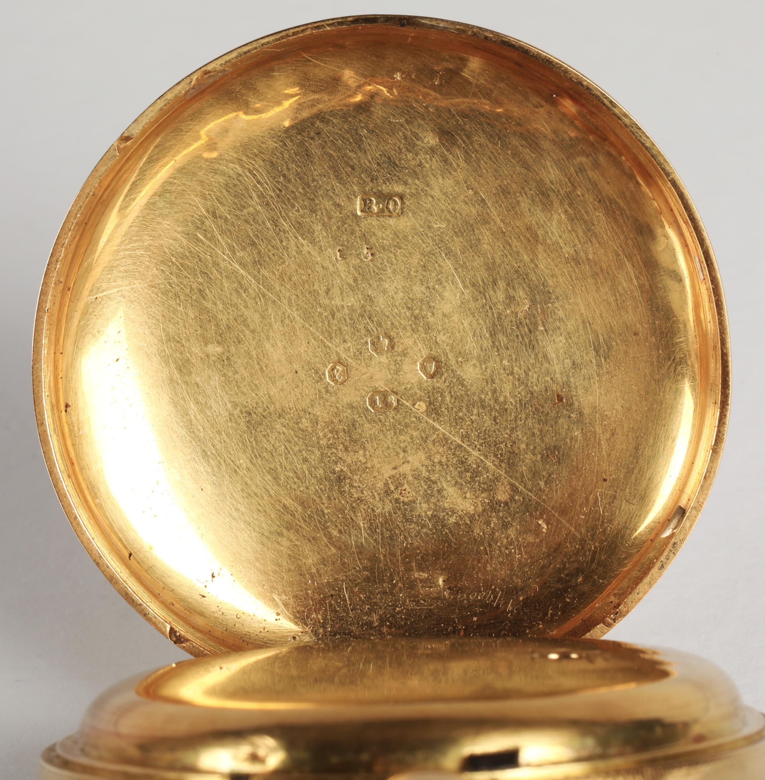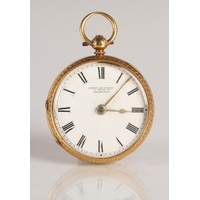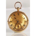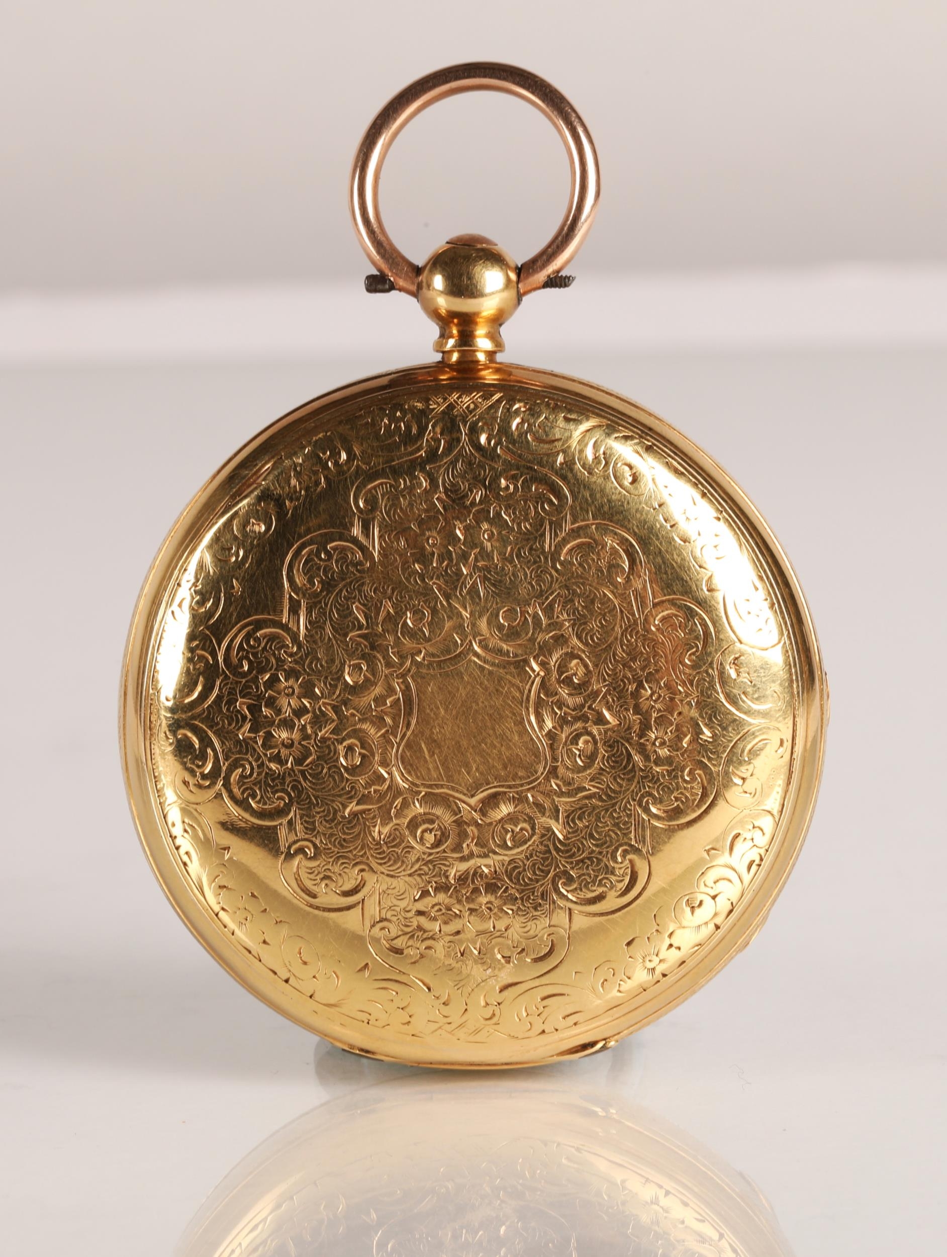 Gents 18ct gold open faced pocket watch, engraved dial with ...