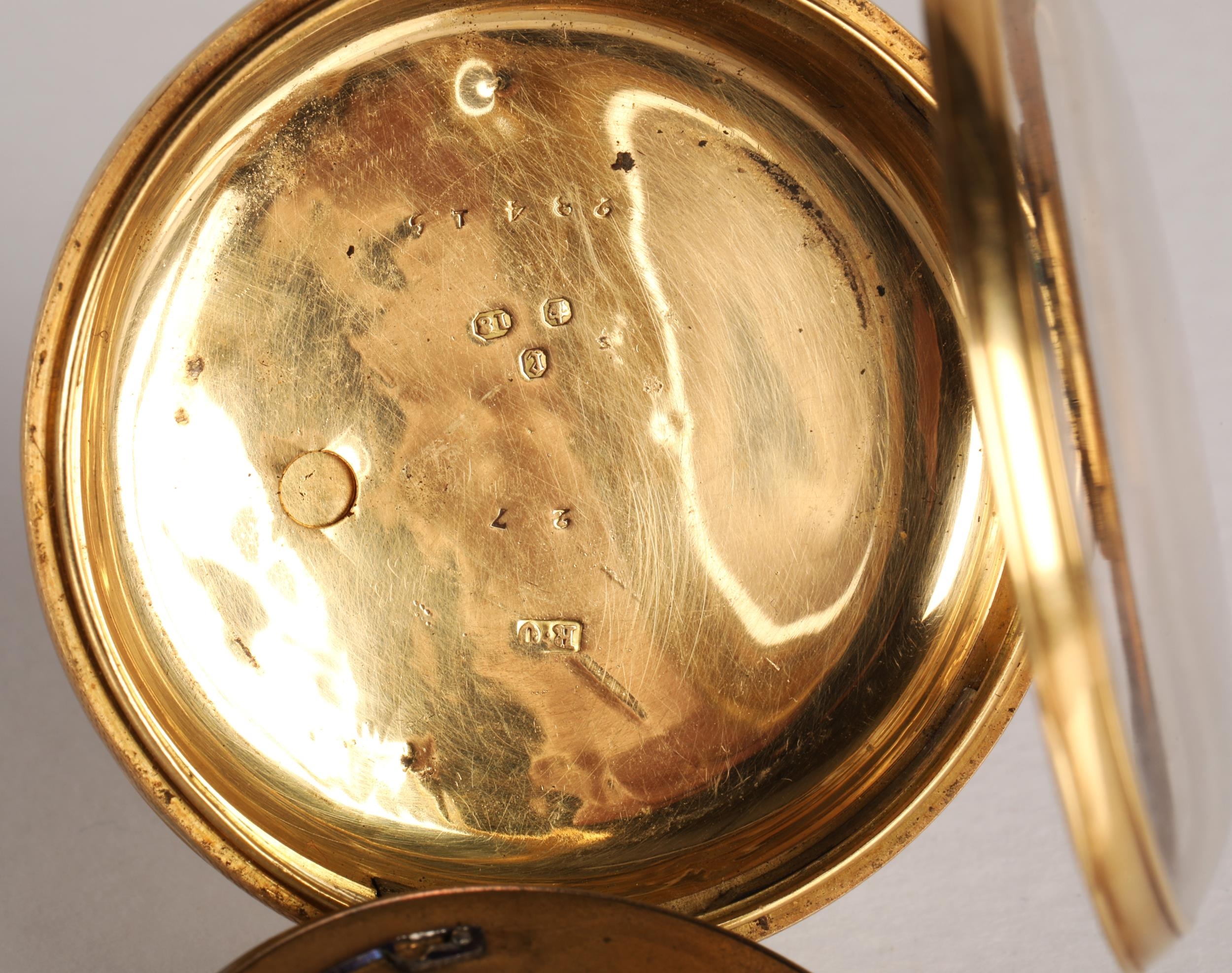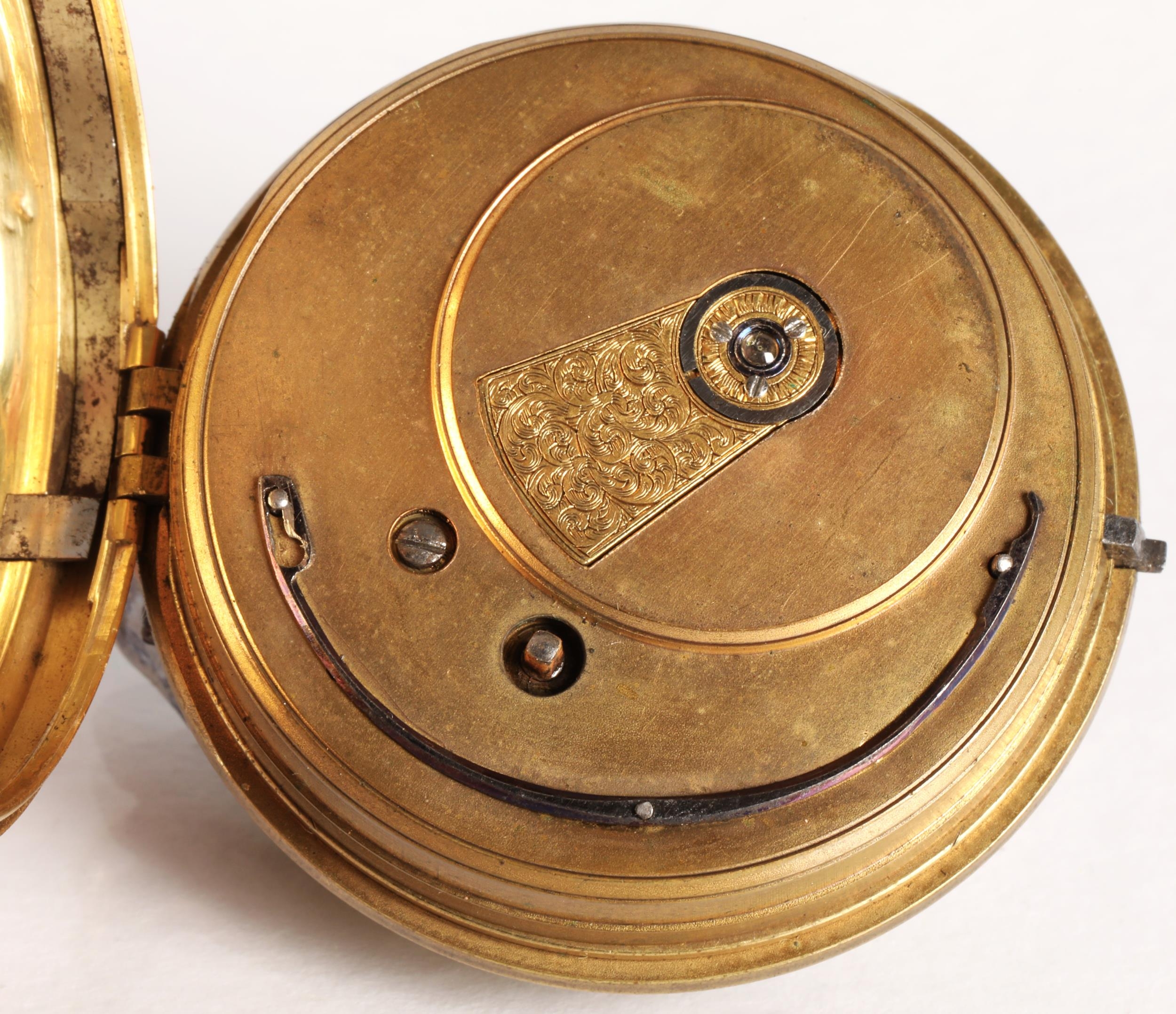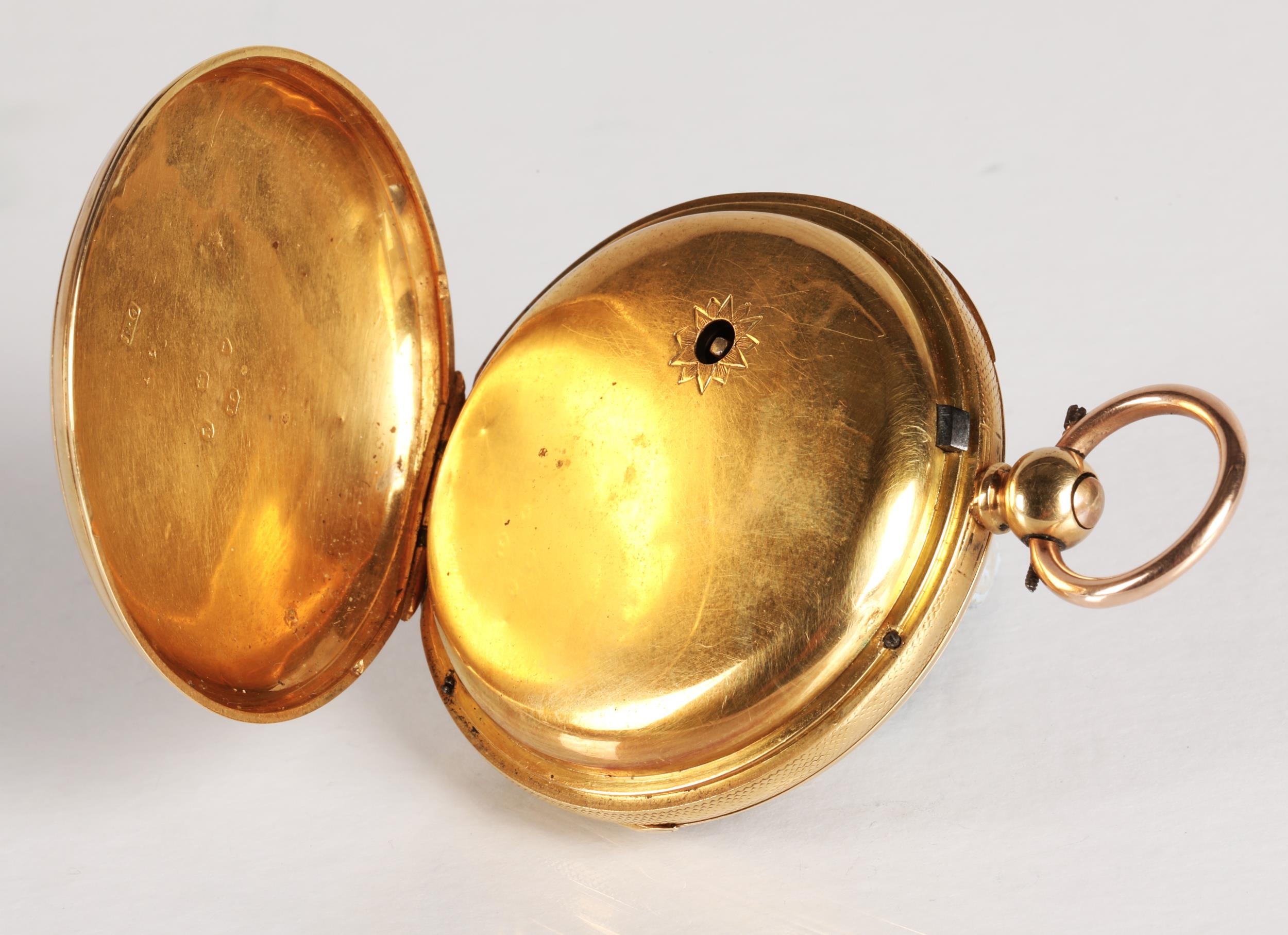 Gents 18ct gold open faced pocket watch, engraved dial with ...
