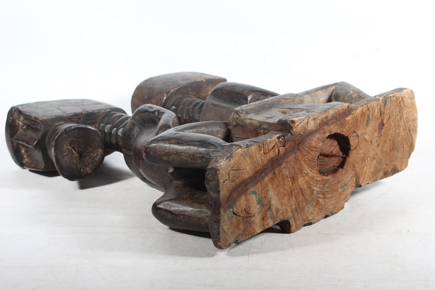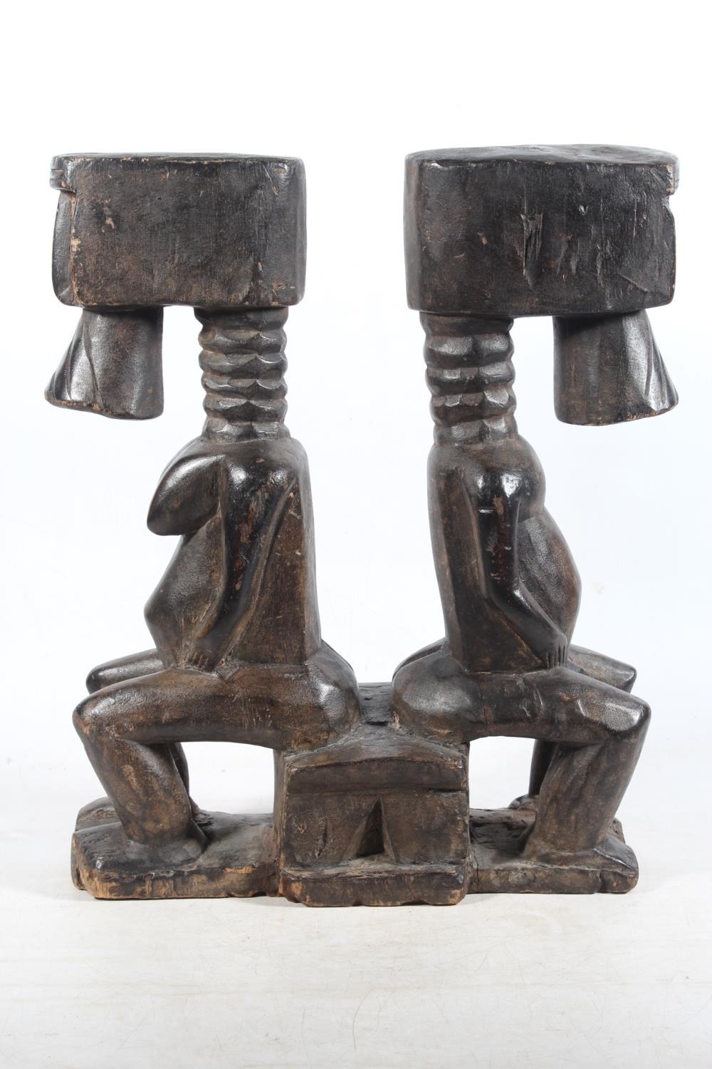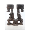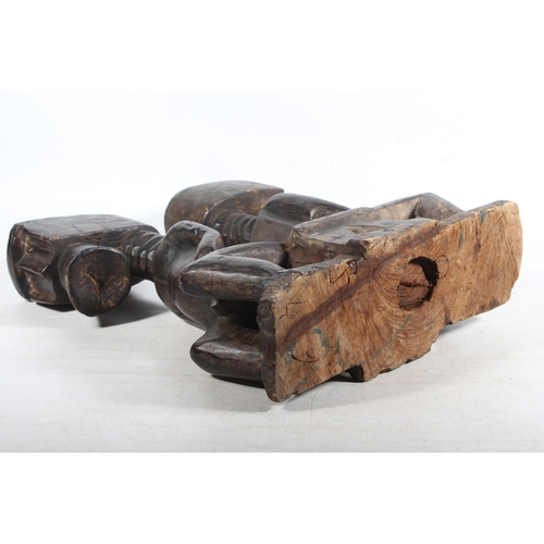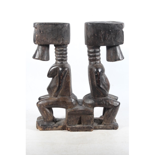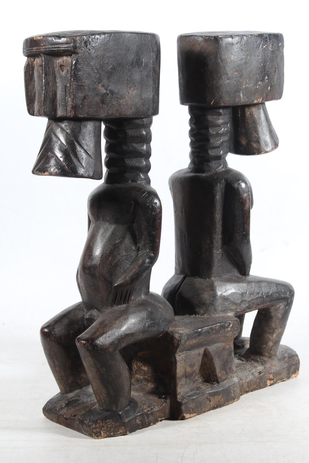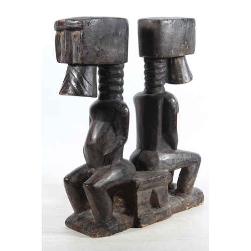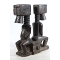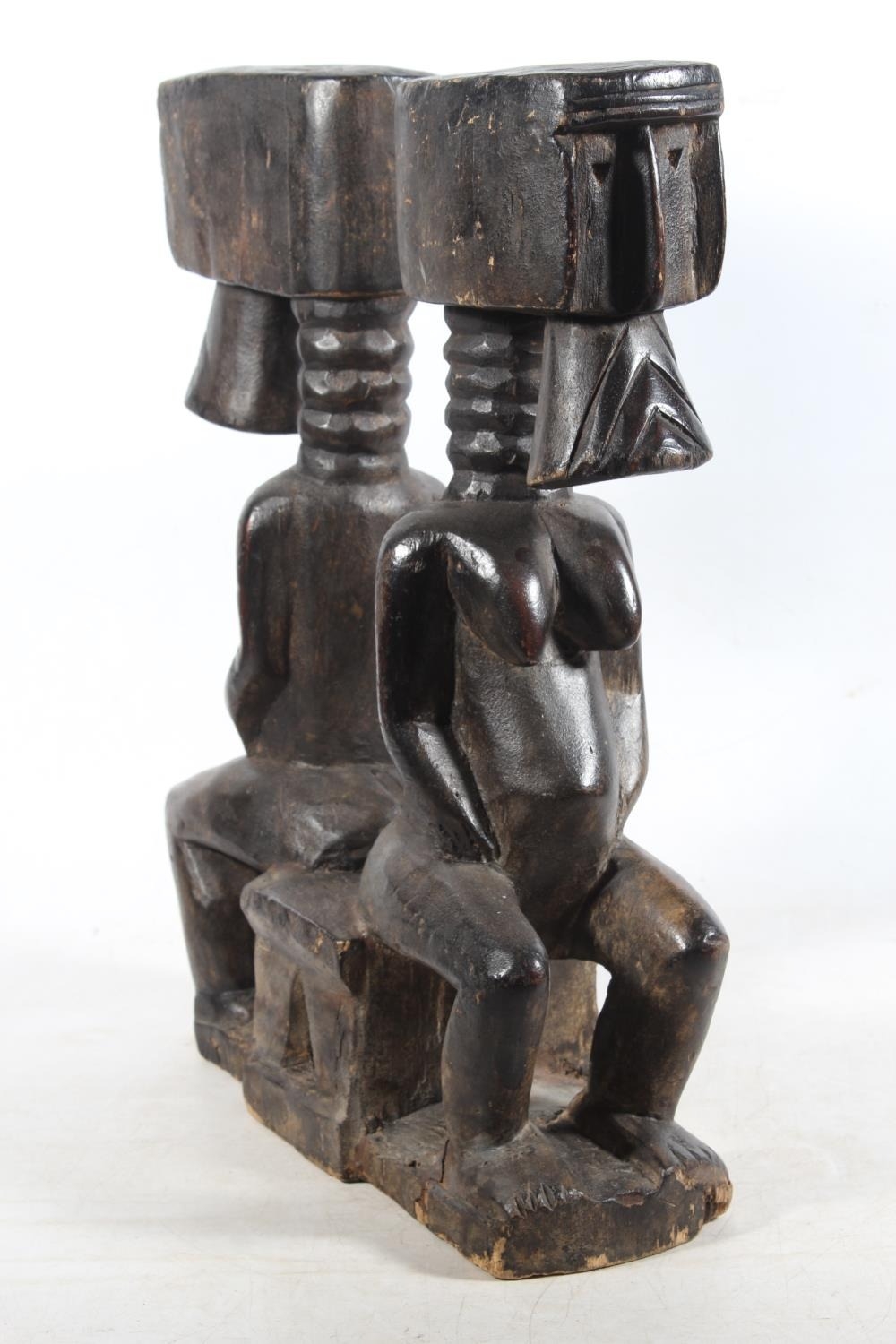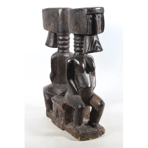 African carved hardwood marriage or fertility figure group modelled as a male and female in seated position, 40cm tall.