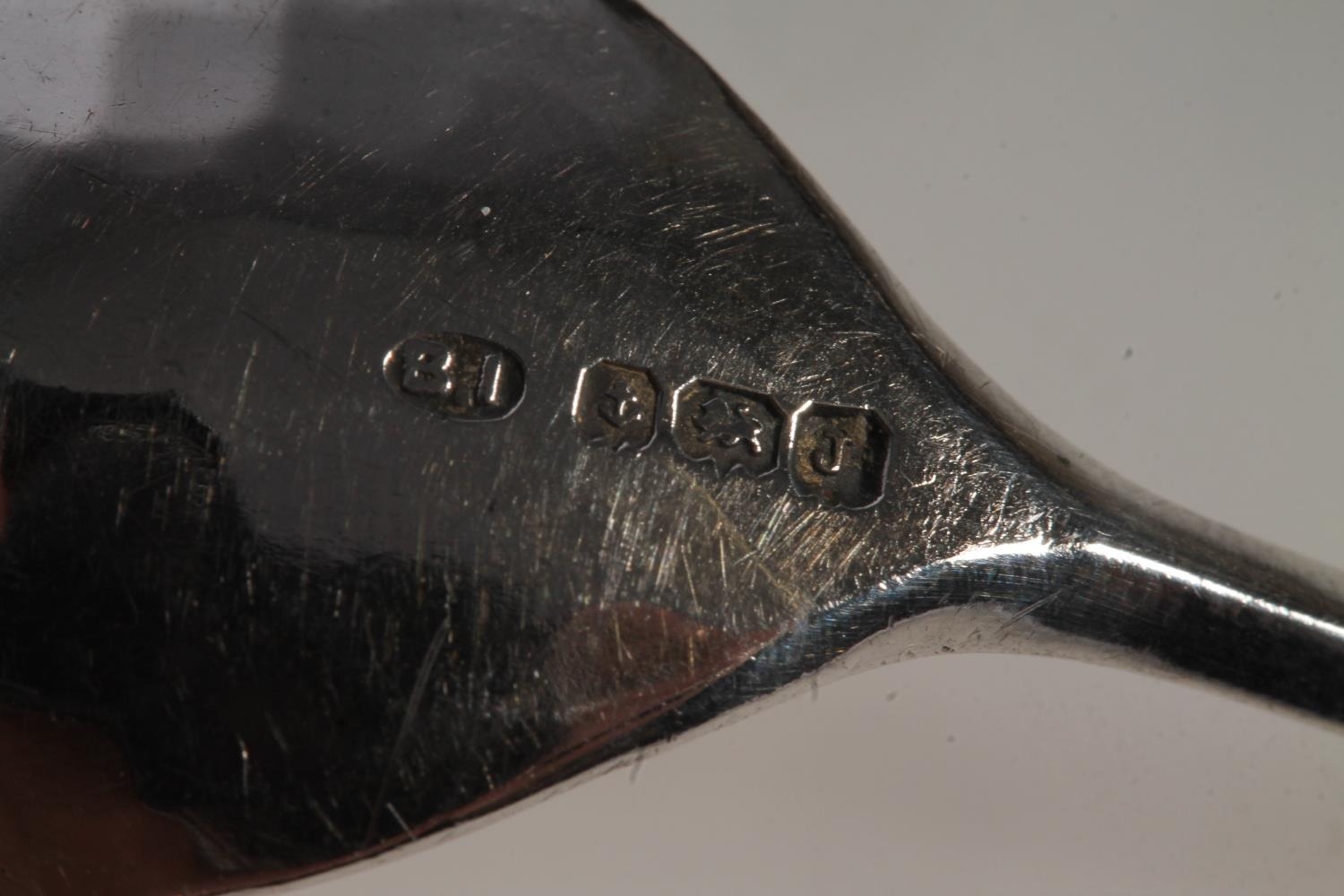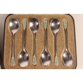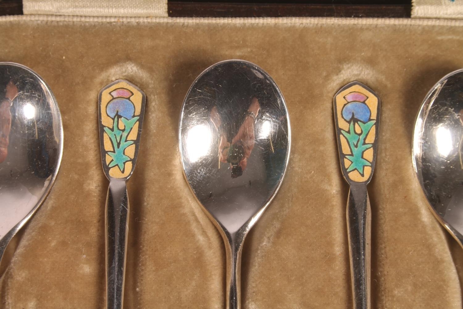 Set of six Geo. V silver and enamel teaspoons, with thistle ...