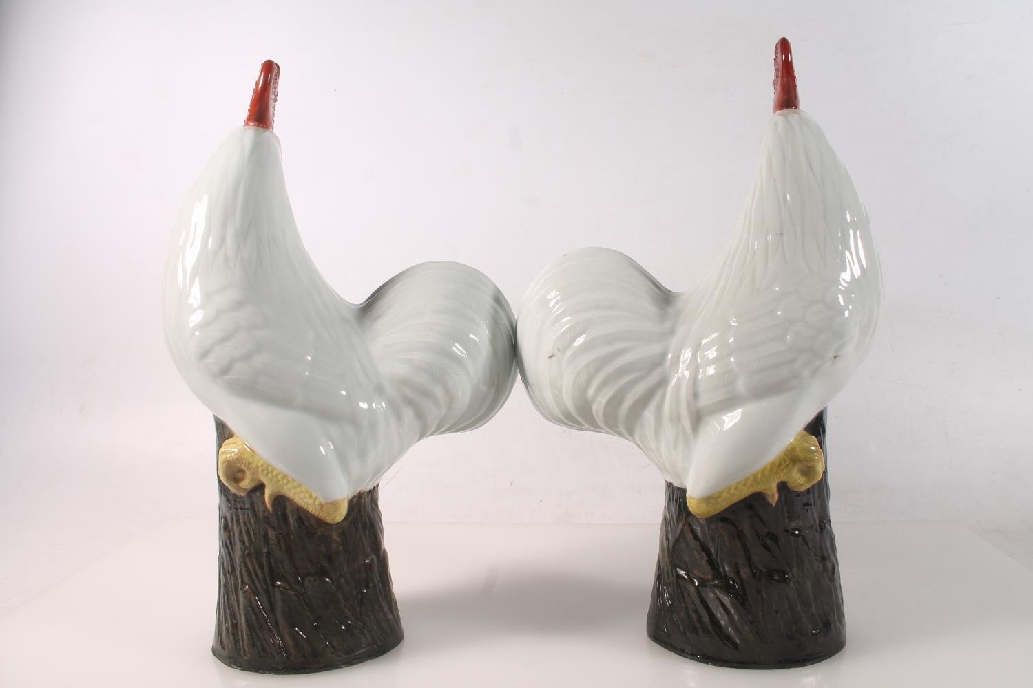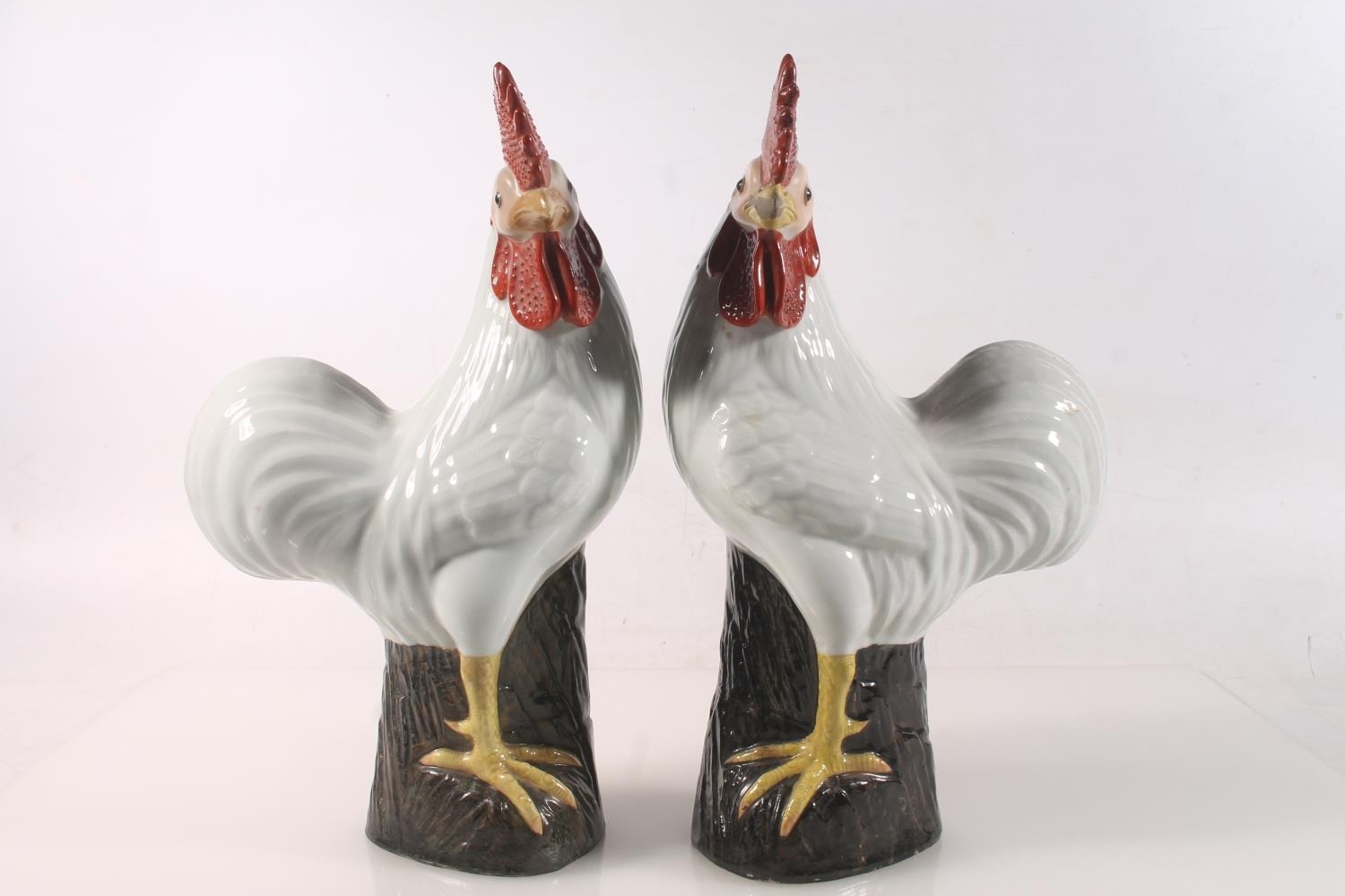 Pair of Chinese pottery cockerel models, 30cm high.