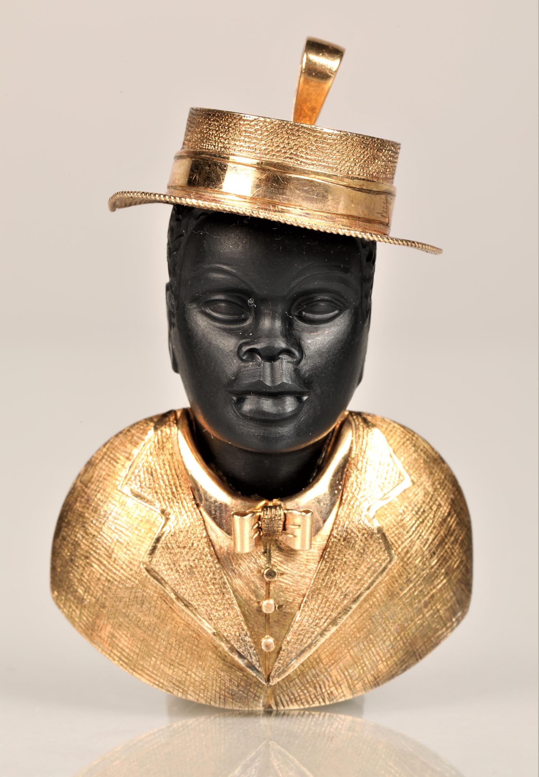 9ct gold mounted jazz singer pendant, gross weight 15 grams,...