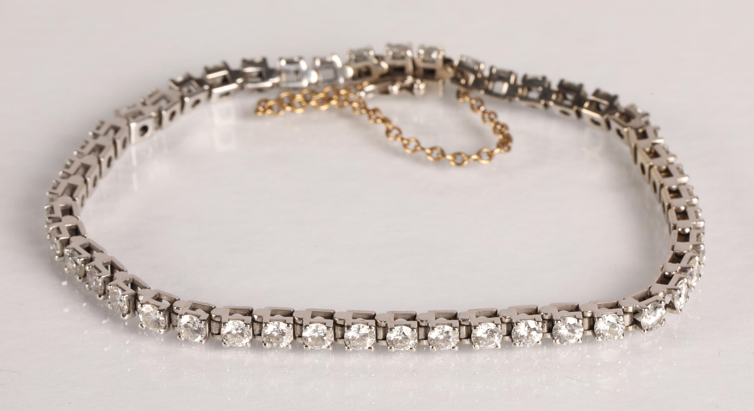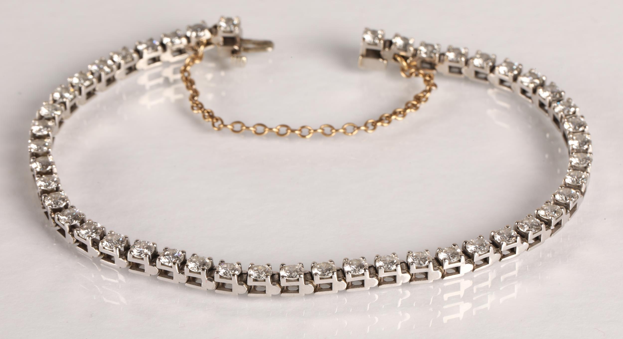Ladies 14k white gold diamond tennis bracelet, set with fort...