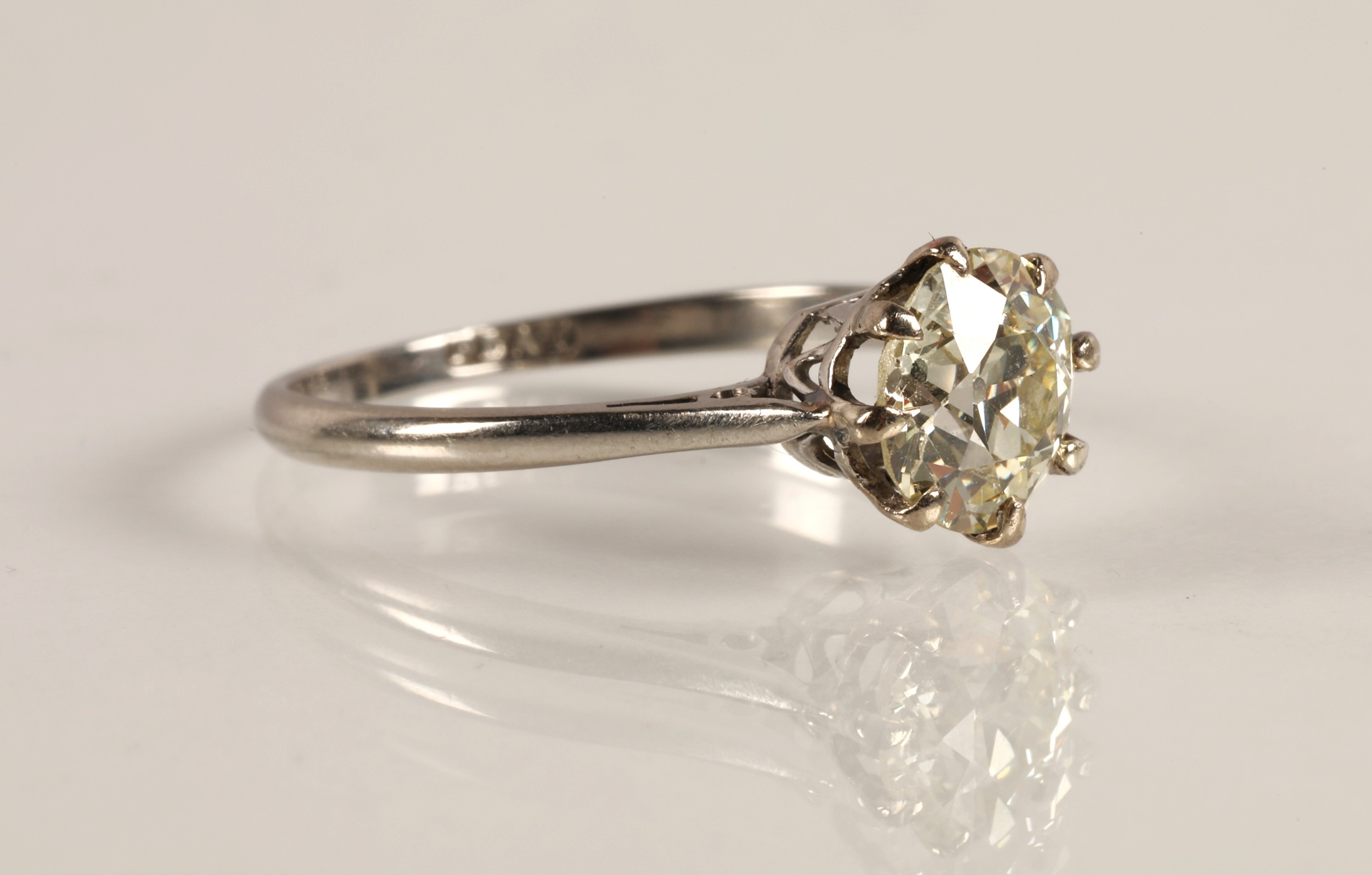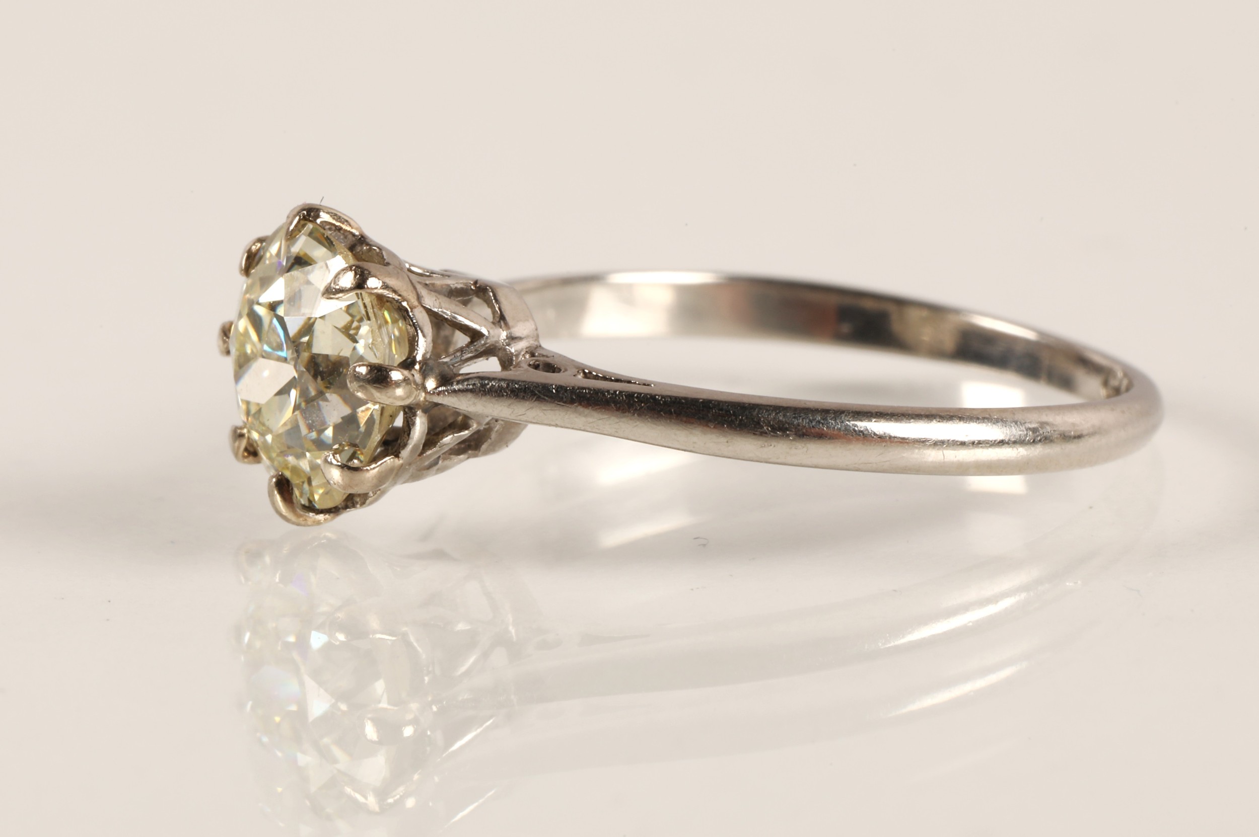 Ladies platinum diamond solitaire ring, brilliant cut diamond approximately 1.3 carat, set on platinum shank, approximate colour I-K, approximate clarity VS2-SI1, ring size N