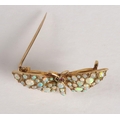 Ladies opal and ruby butterfly brooch, the body and wings set with opals and two small rubies for eyes, set on unmarked yellow metal, 3.5 cm long, gross weight 4.9 grams