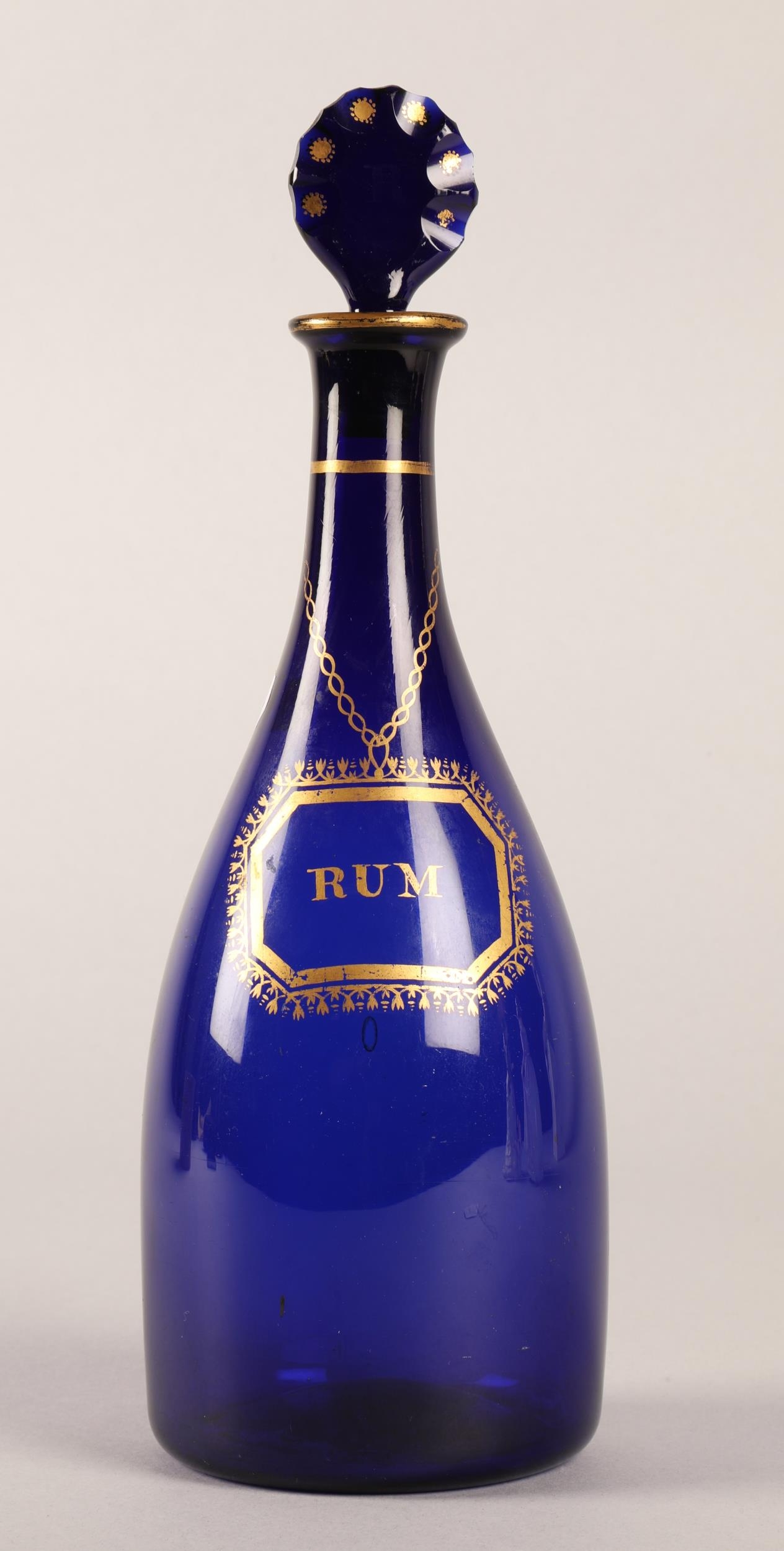 'Bristol' blue glass Rum decanter with gilt detail