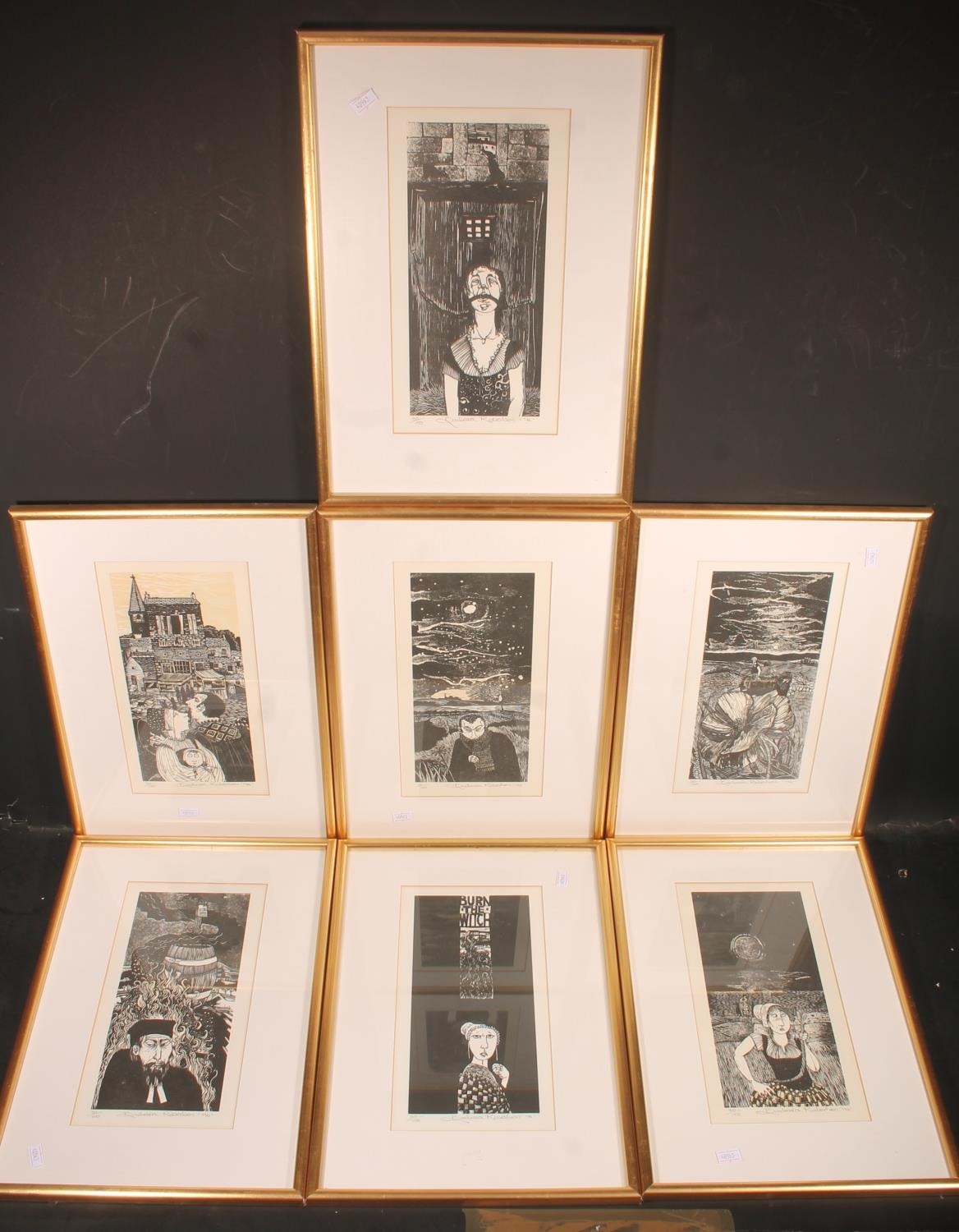 Print, limited edition 30/150, signed and dated '96 lower right, 25cm x 12cm, frame 41cm x 29cm and six others from the same series. (7)