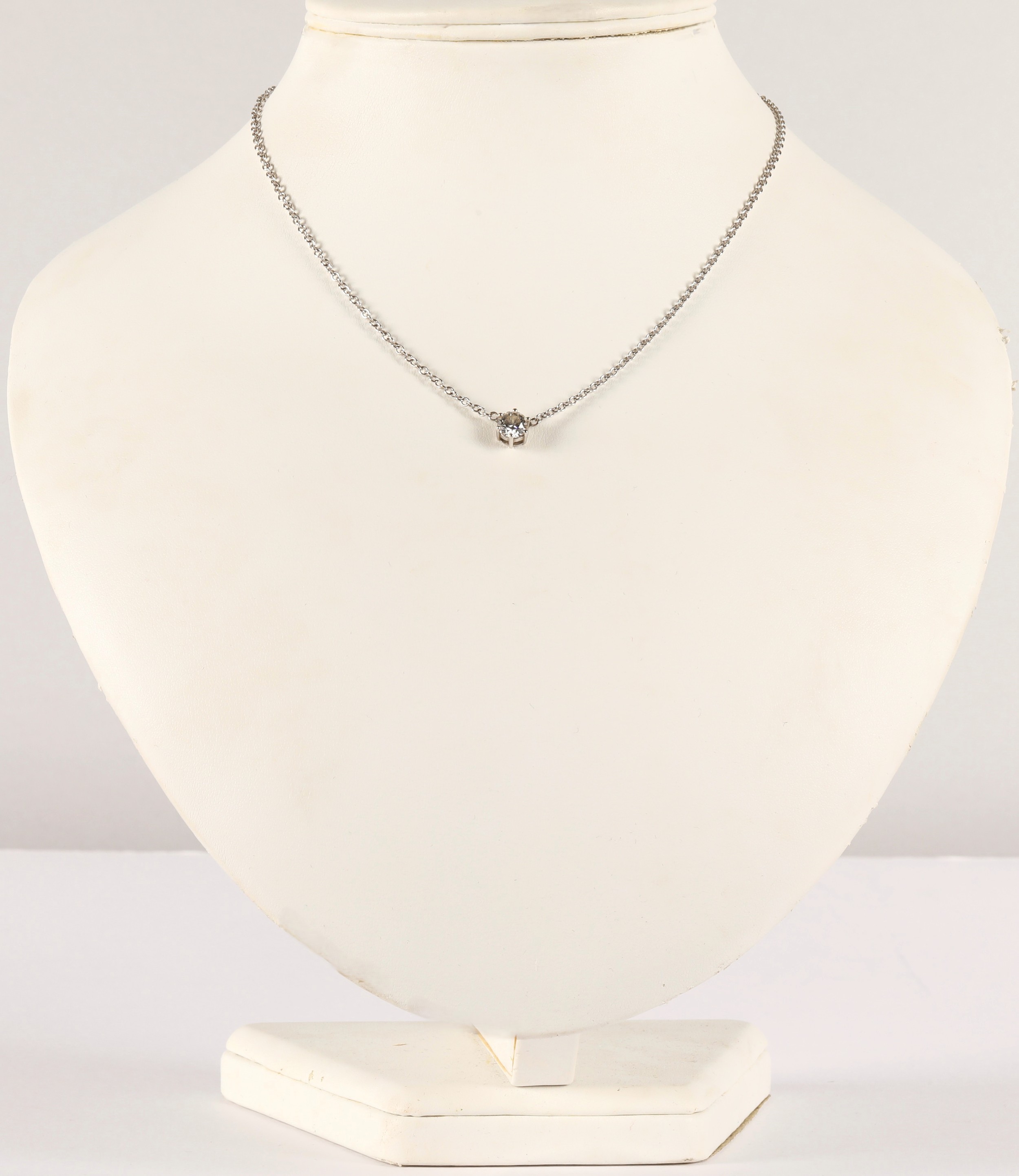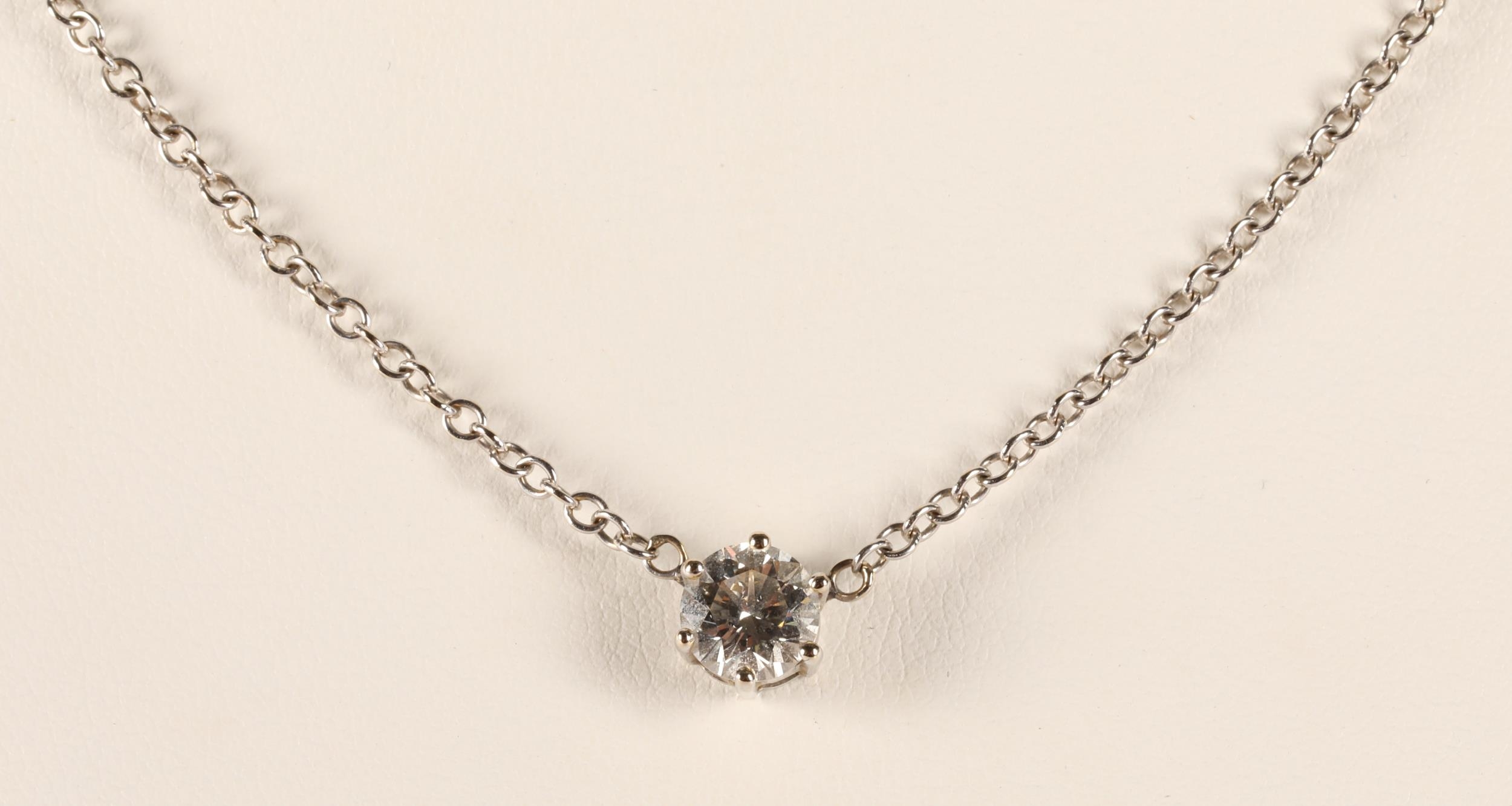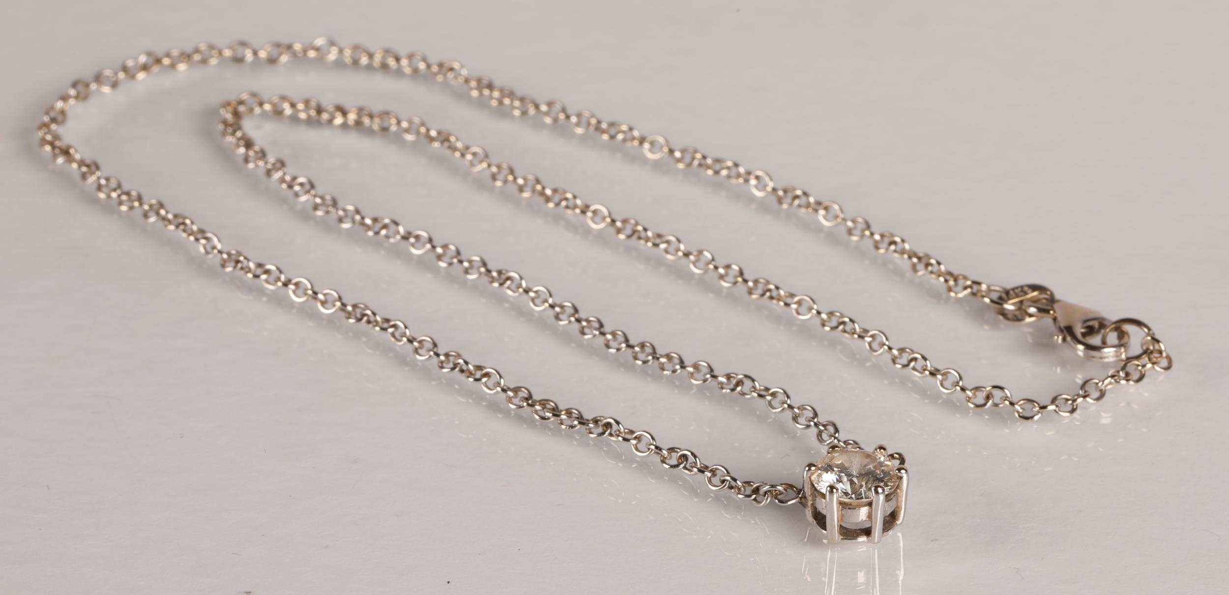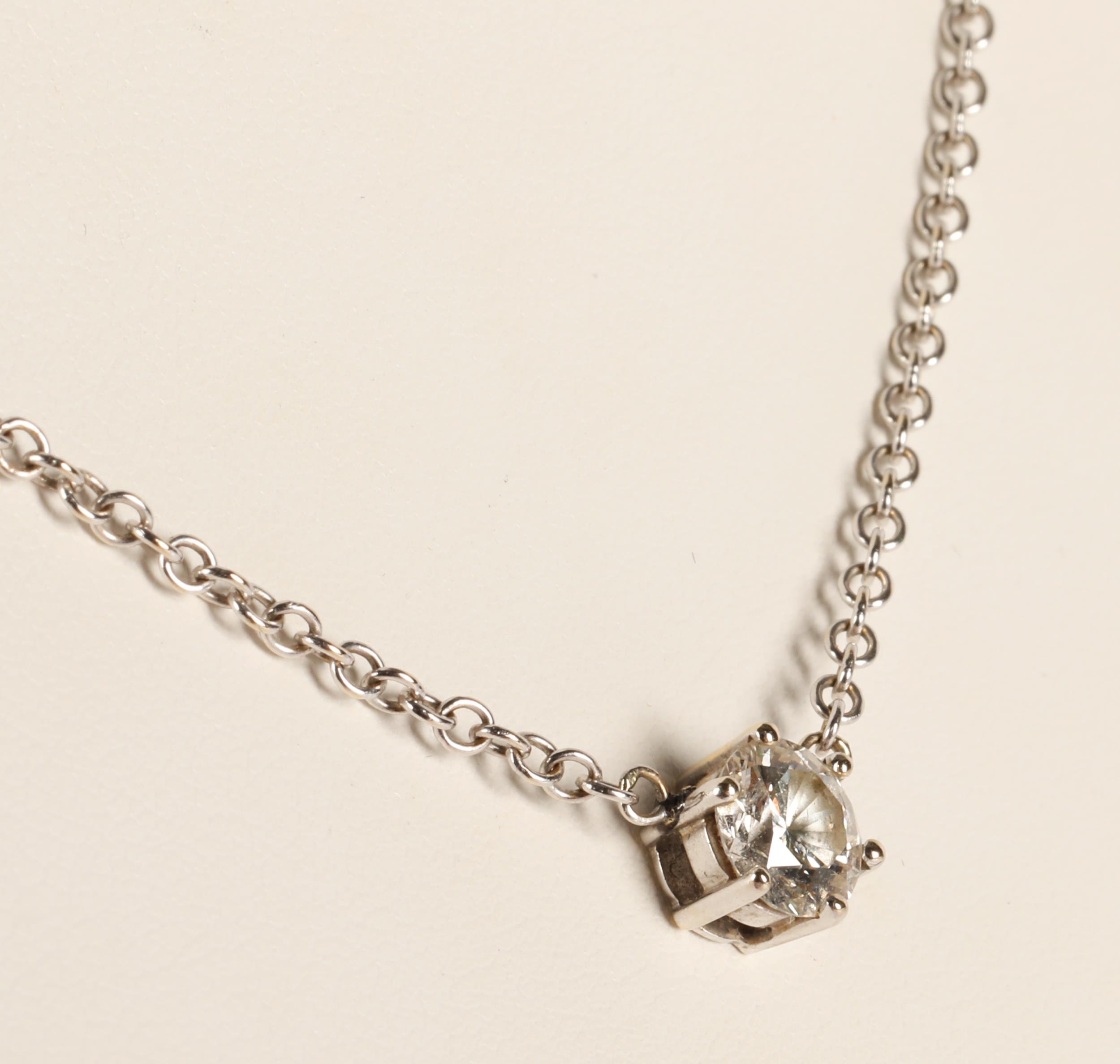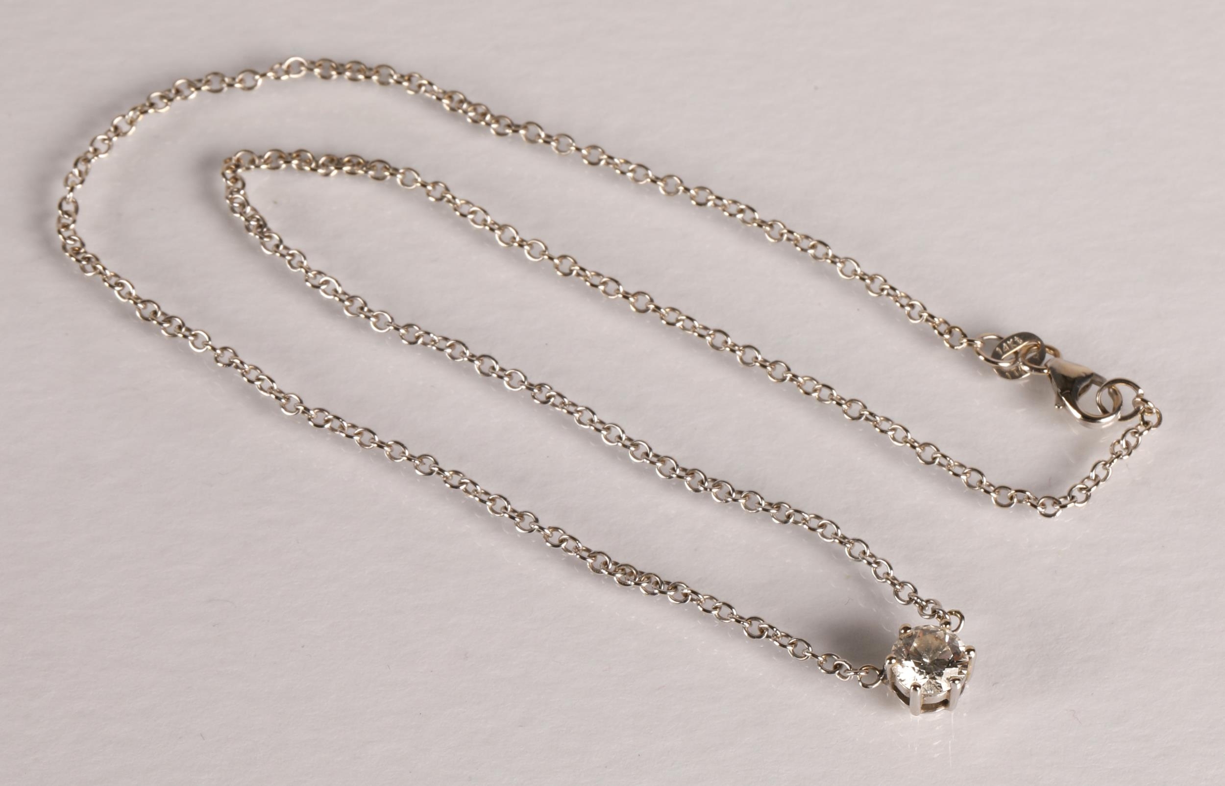 Ladies 14k white gold diamond solitaire necklace, one carat diamond, gross weight 4.2 grams
