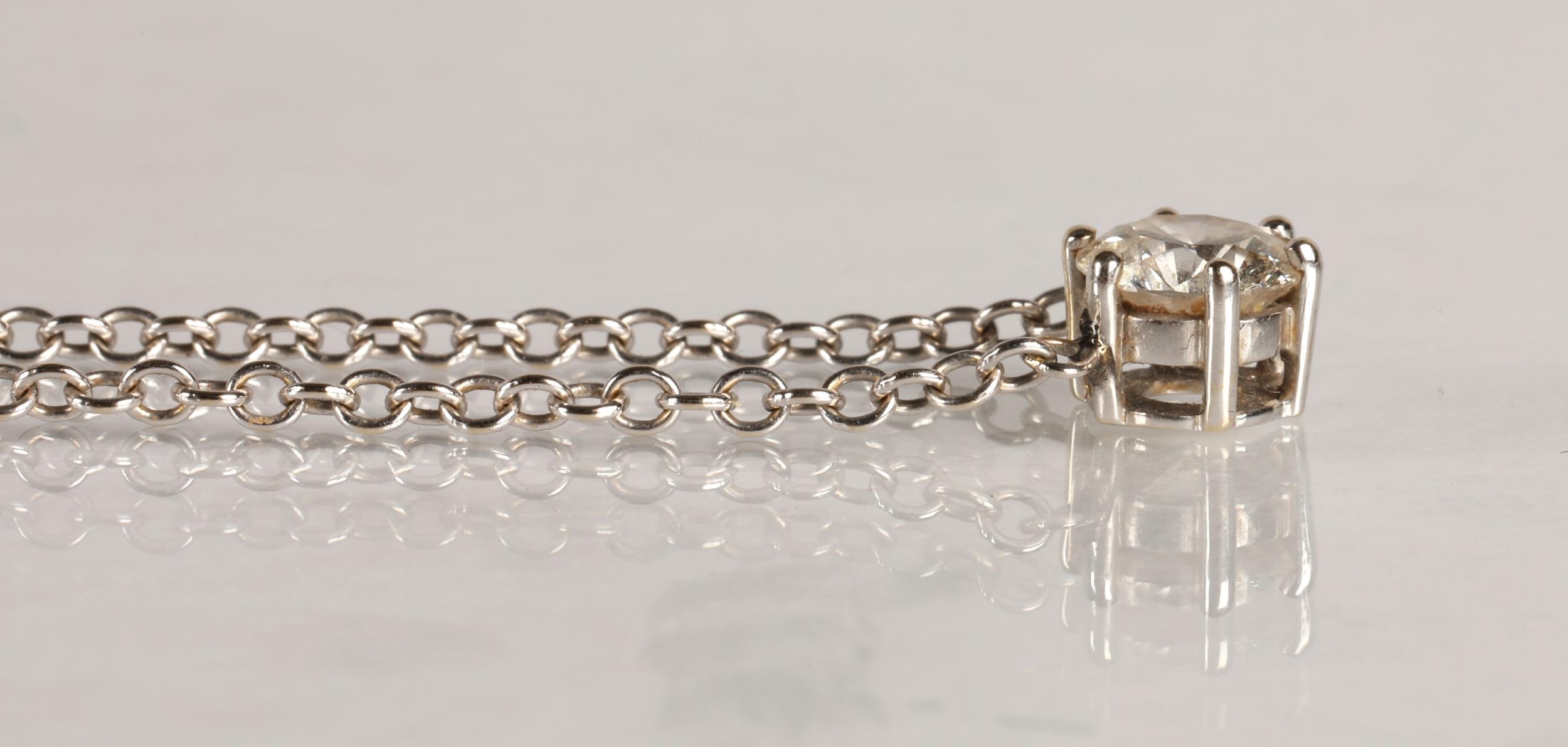 Ladies 14k white gold diamond solitaire necklace, one carat ...
