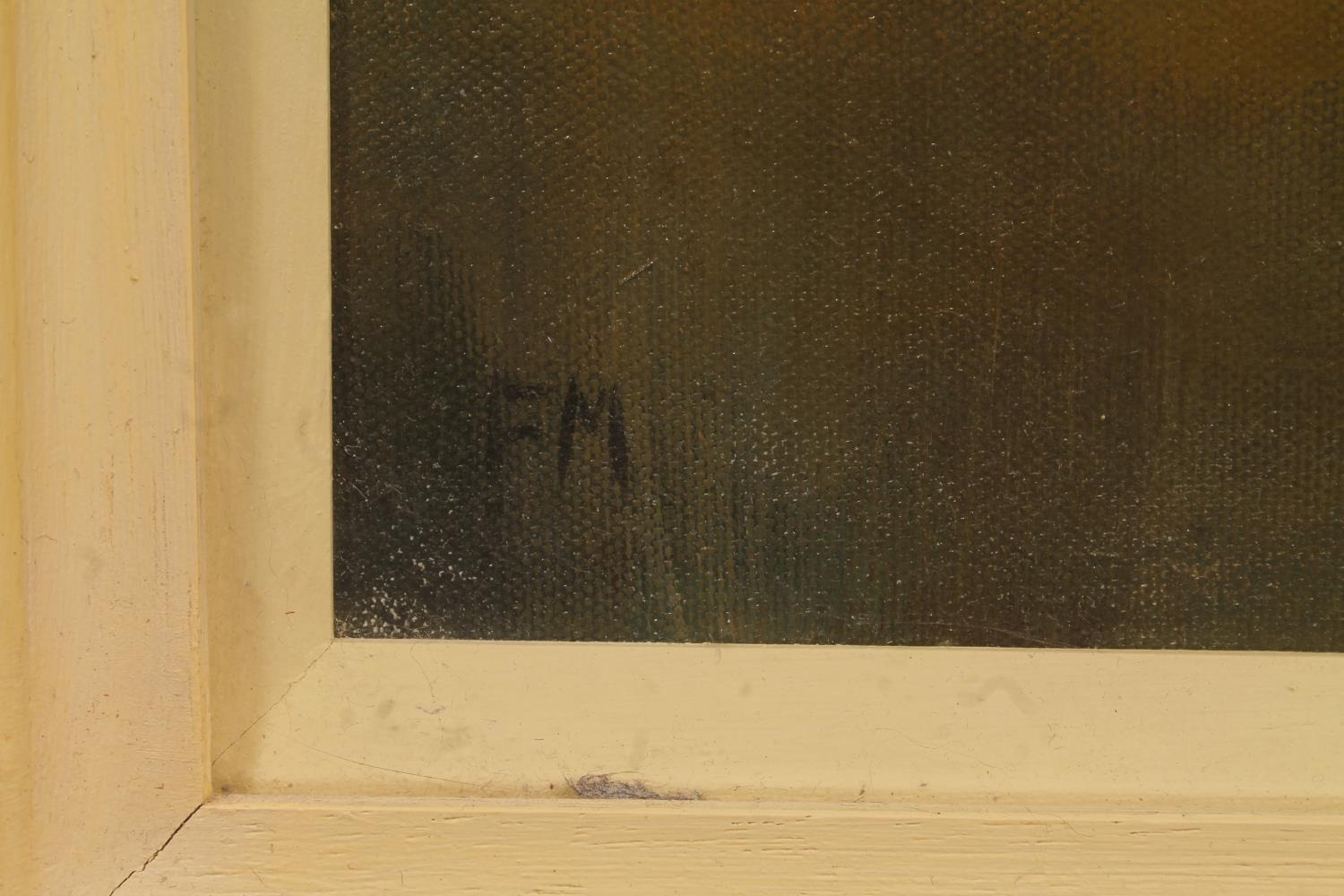 Acrylic painting on canvas, signed with initials 'FM' lower left, 59cm x 59cm, frame 80cm x 80cm.