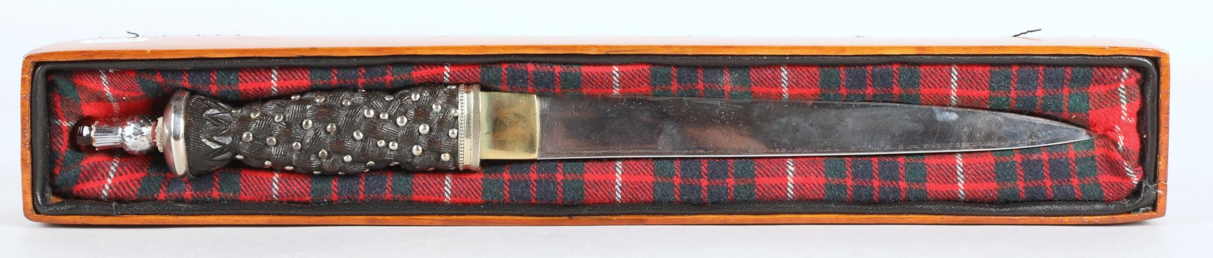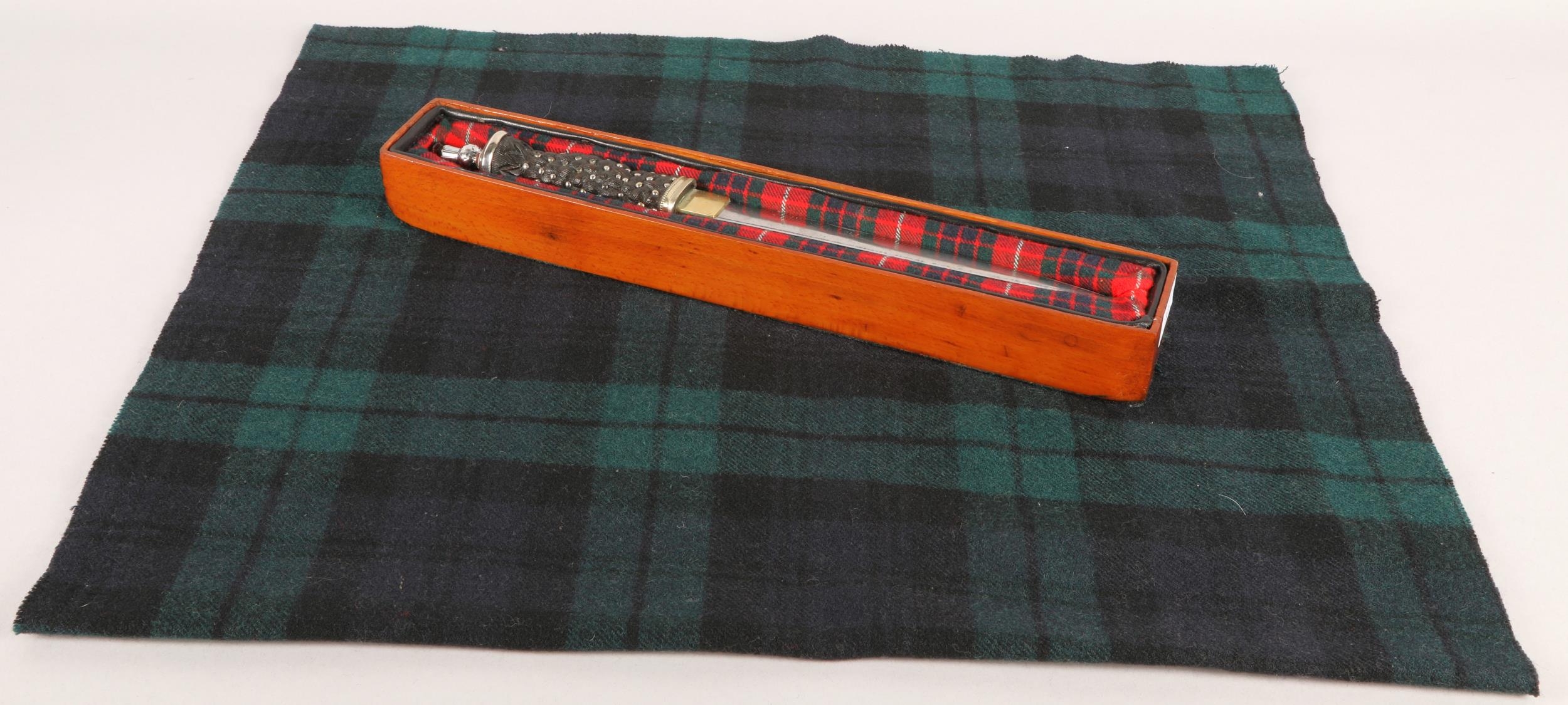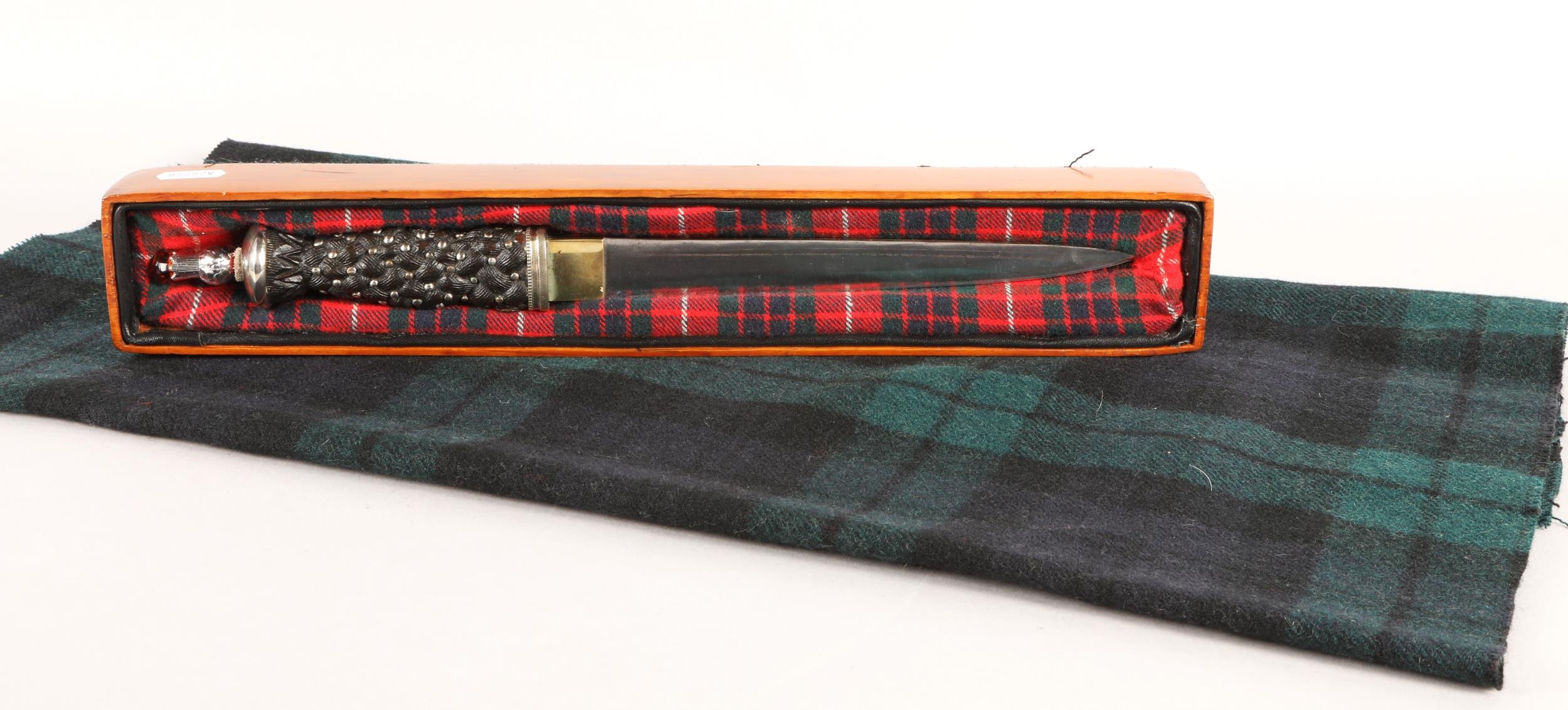 Scottish Highland Dirk in lined wooden box with plaid cover