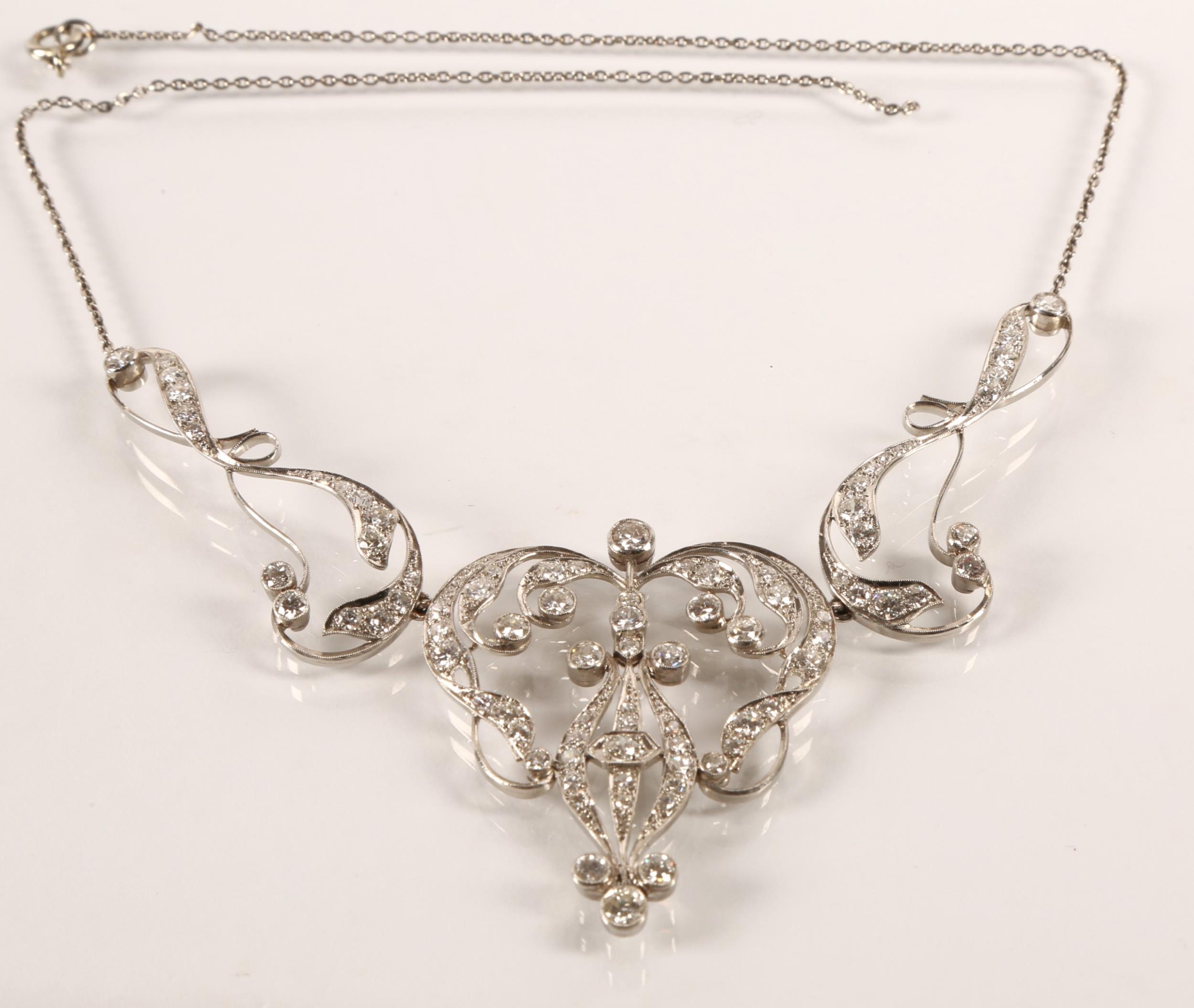 Art Nouveau ladies diamond encrusted necklace set on unmarke...