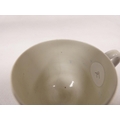 The can with two minute rim chips, very small. The cup with a faint hairline crack.