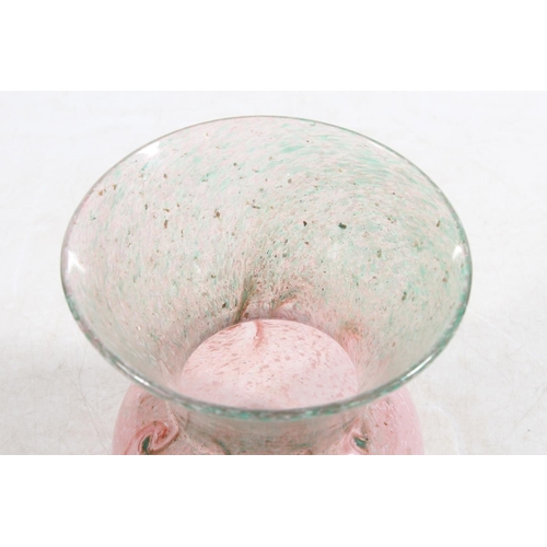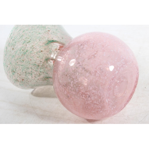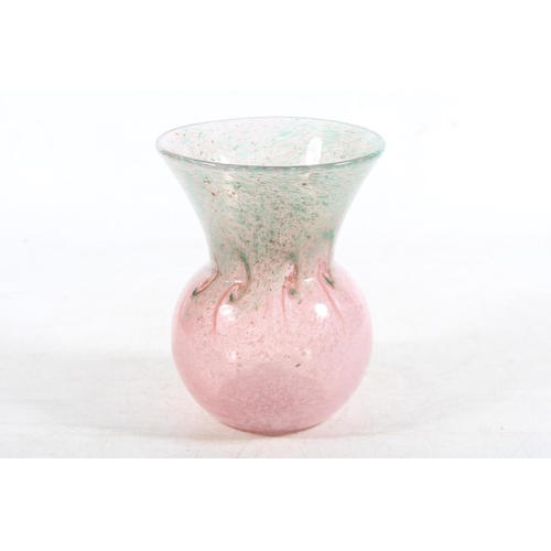 Scottish art glass vase of thistle head form decorated in green and purple with swirls and adventure inclusions, probably Perthshire, Vasart or Monart, 18cm tall.