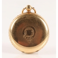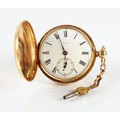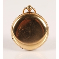 Gents 18ct gold full hunter pocket watch, white enamel dial with Roman numerals and subsidiary dial, gross weight 115.2 grams