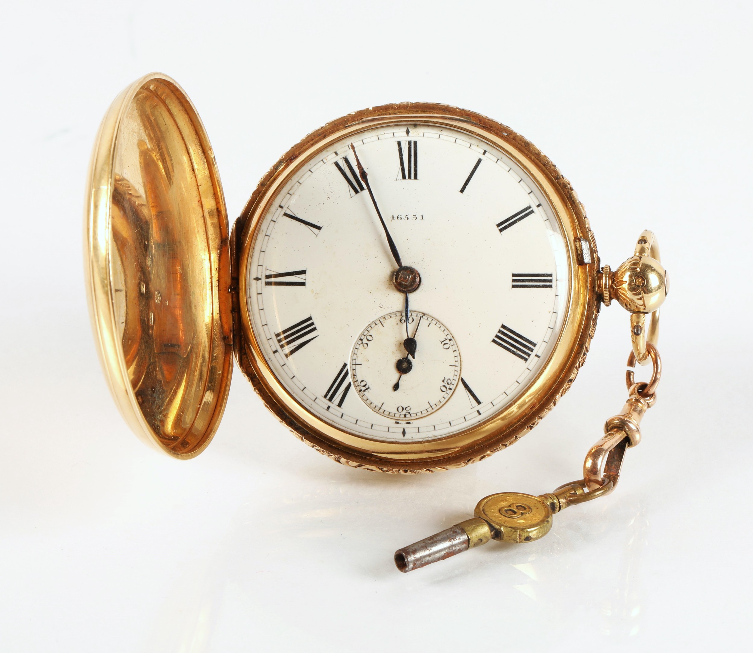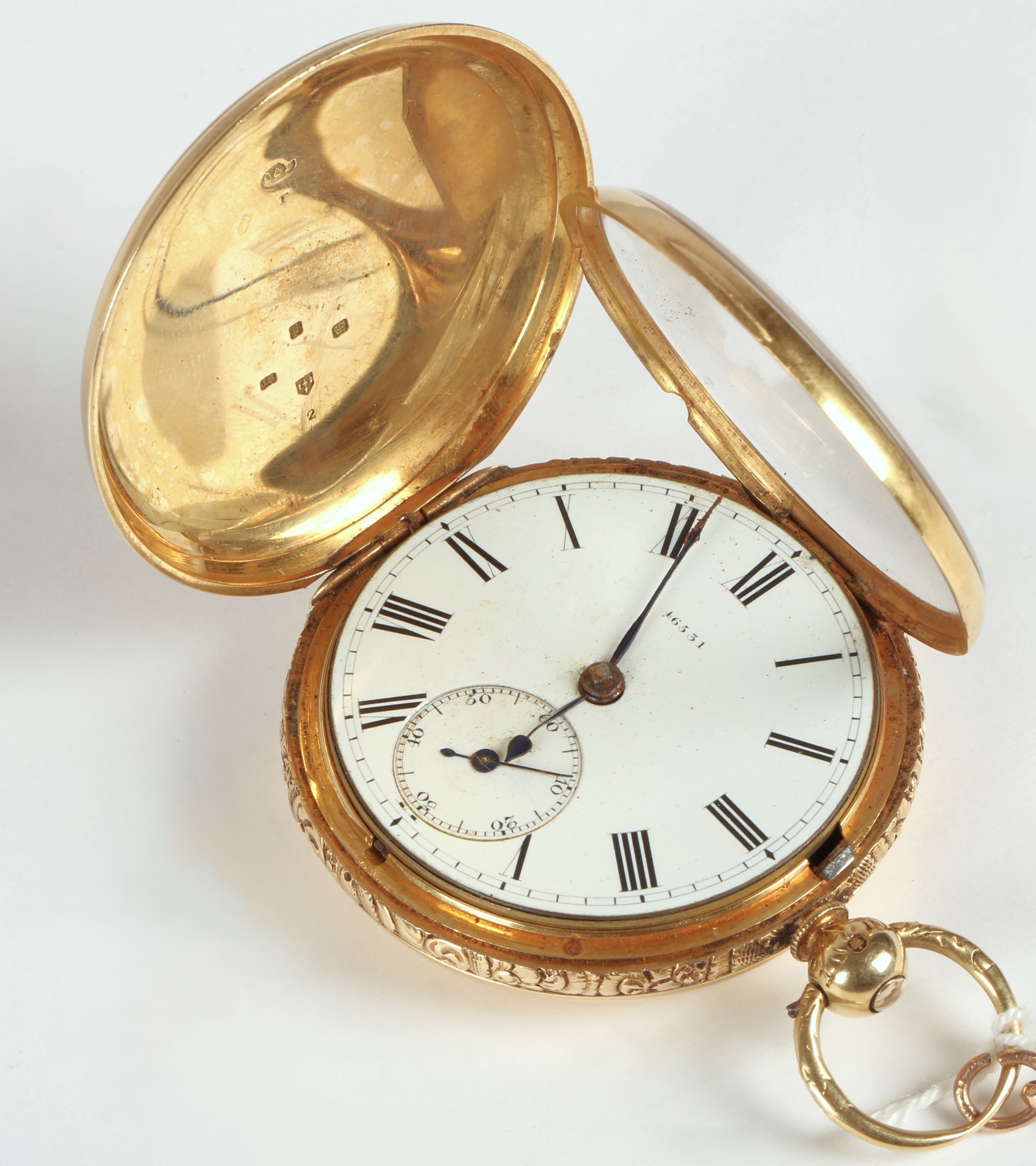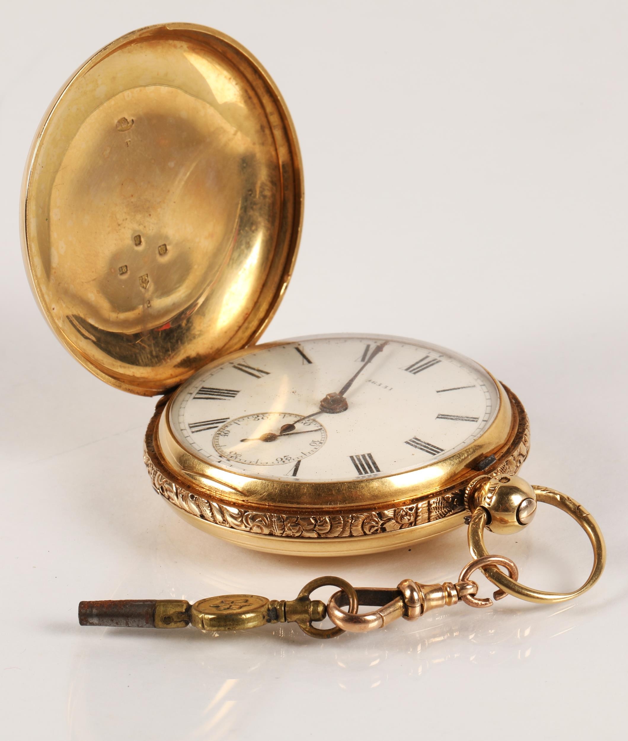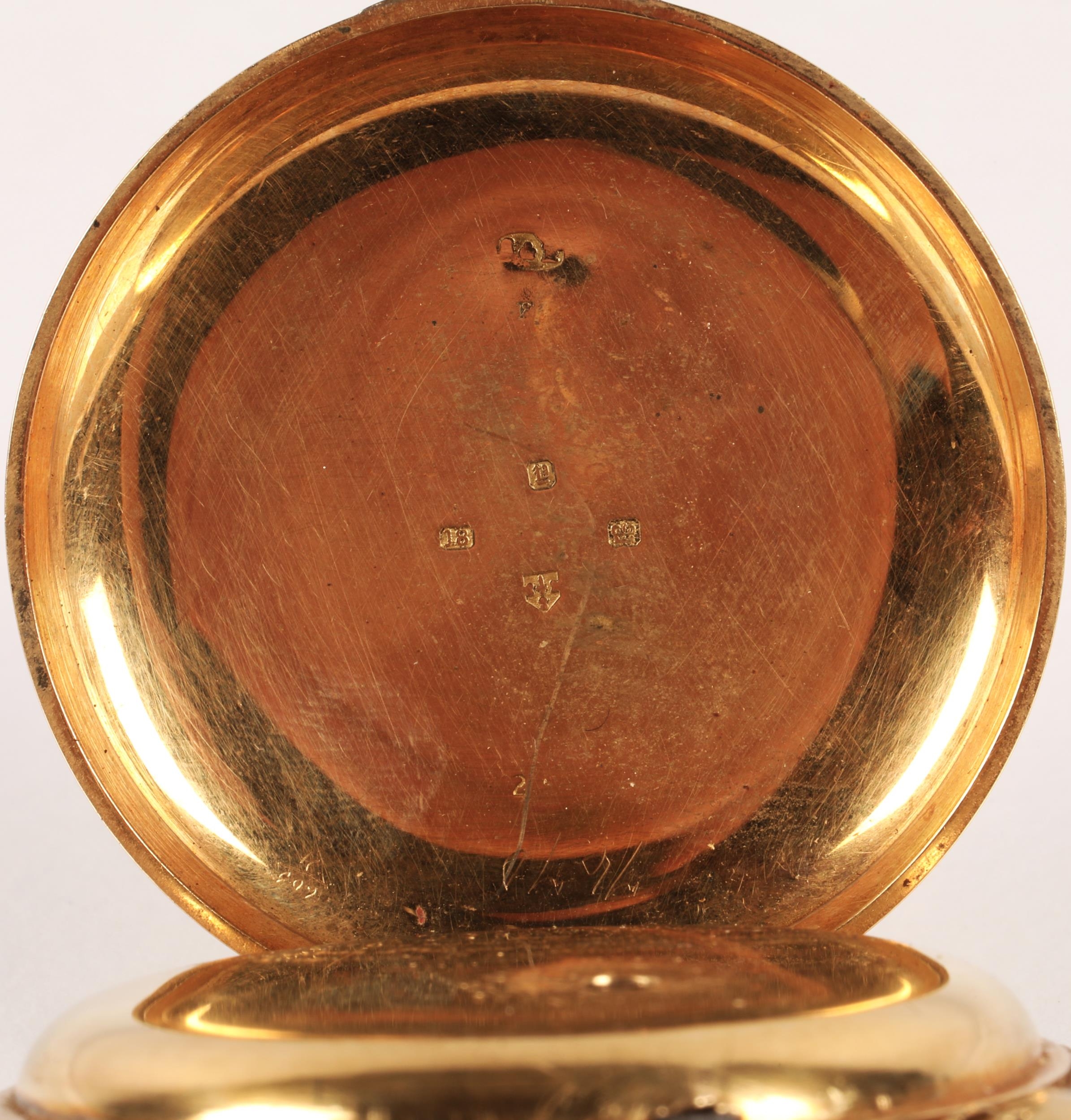 Gents 18ct gold full hunter pocket watch, white enamel dial ...