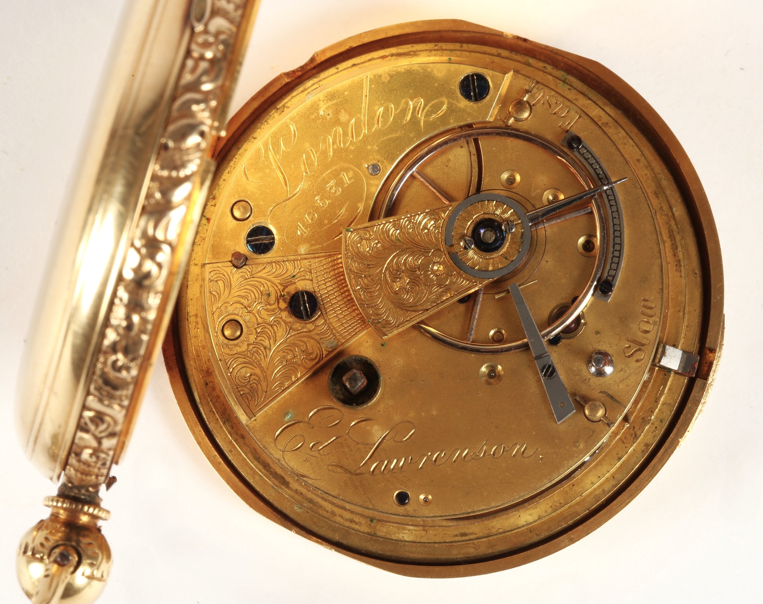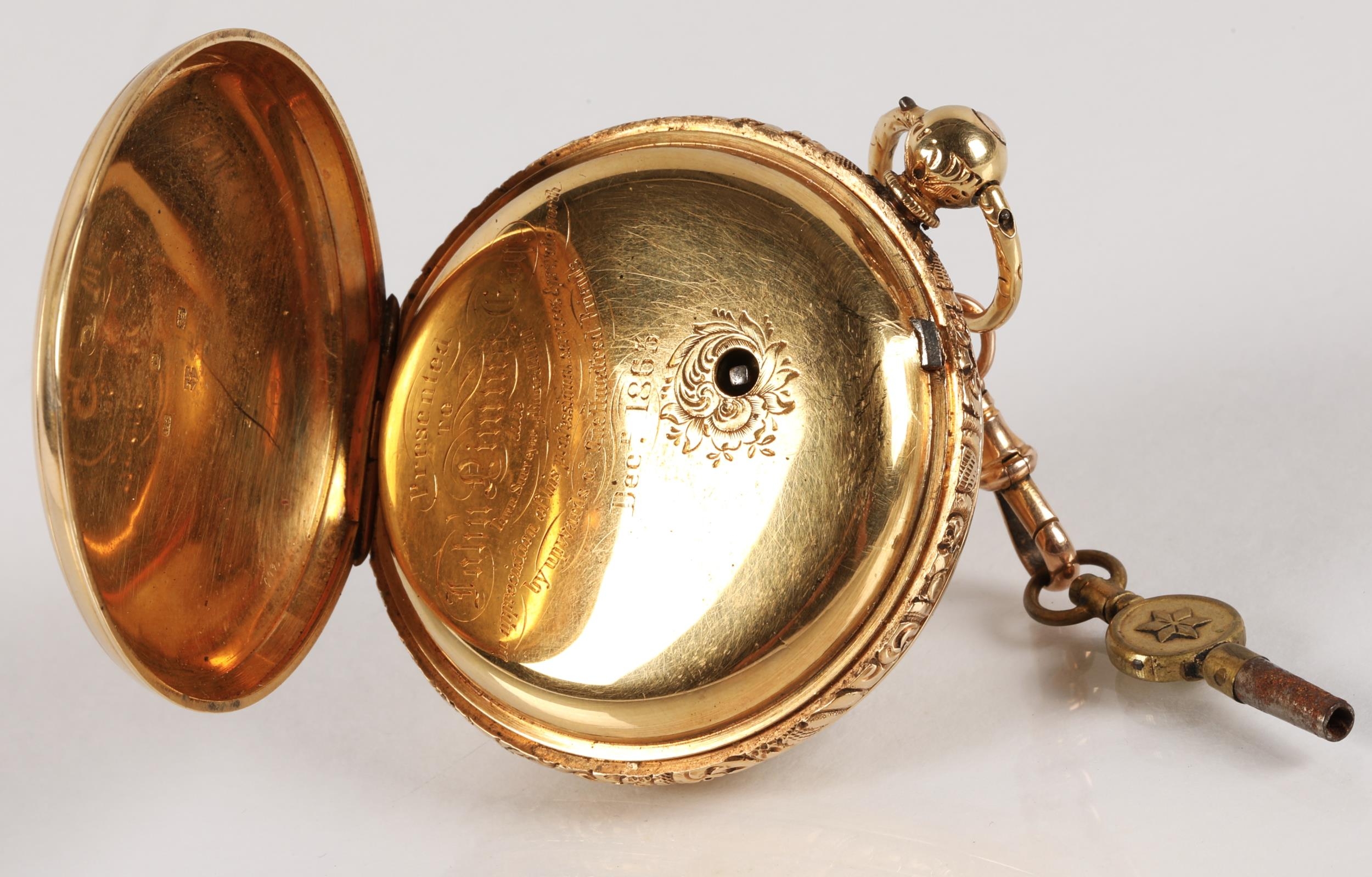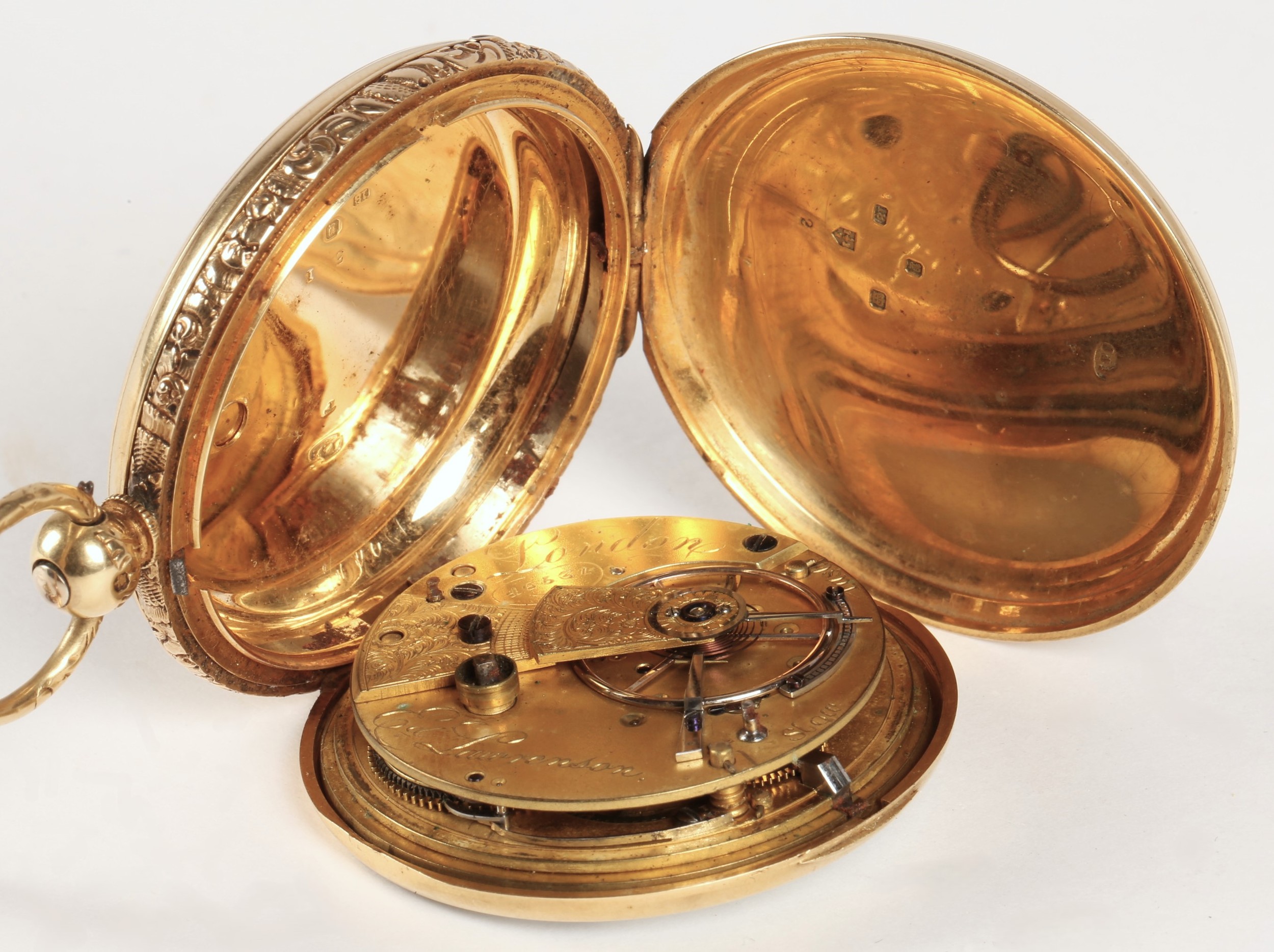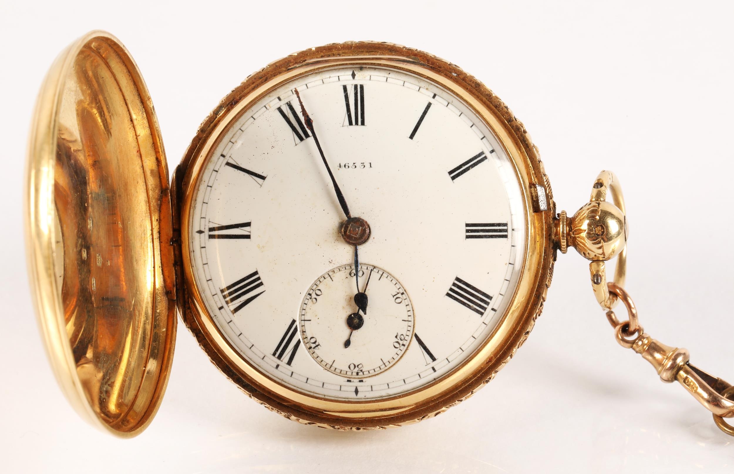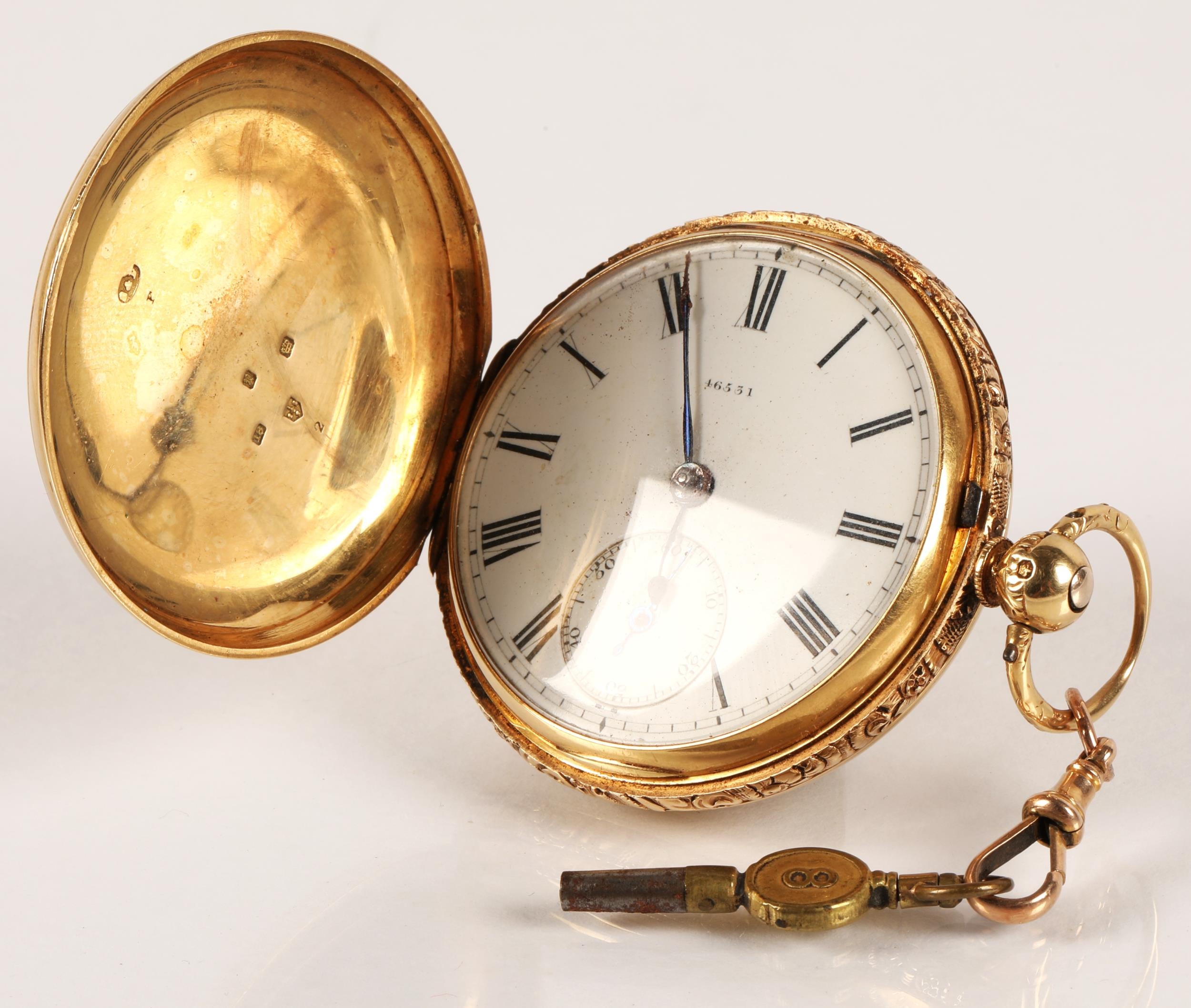 Gents 18ct gold full hunter pocket watch, white enamel dial ...