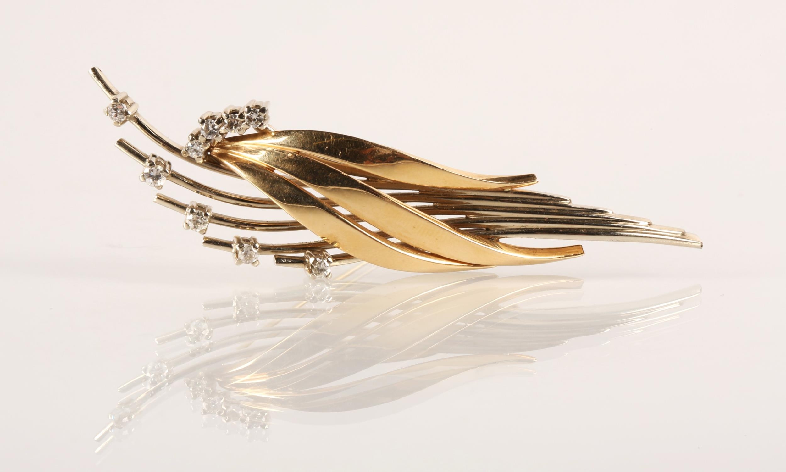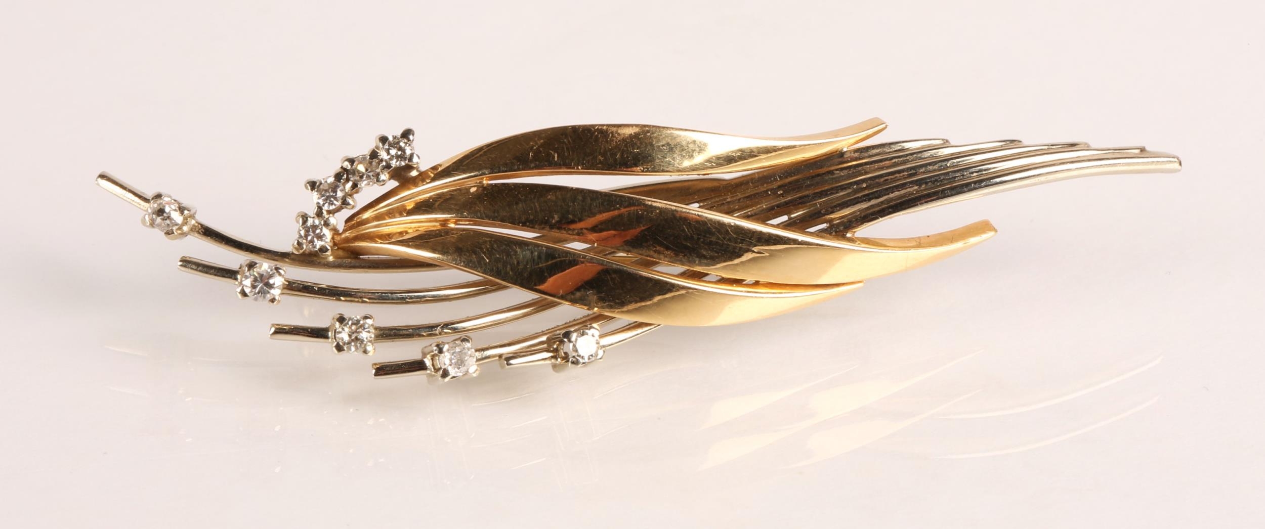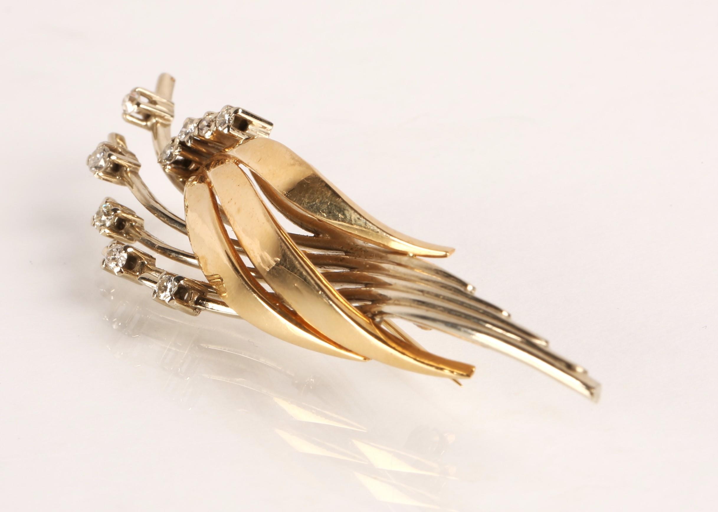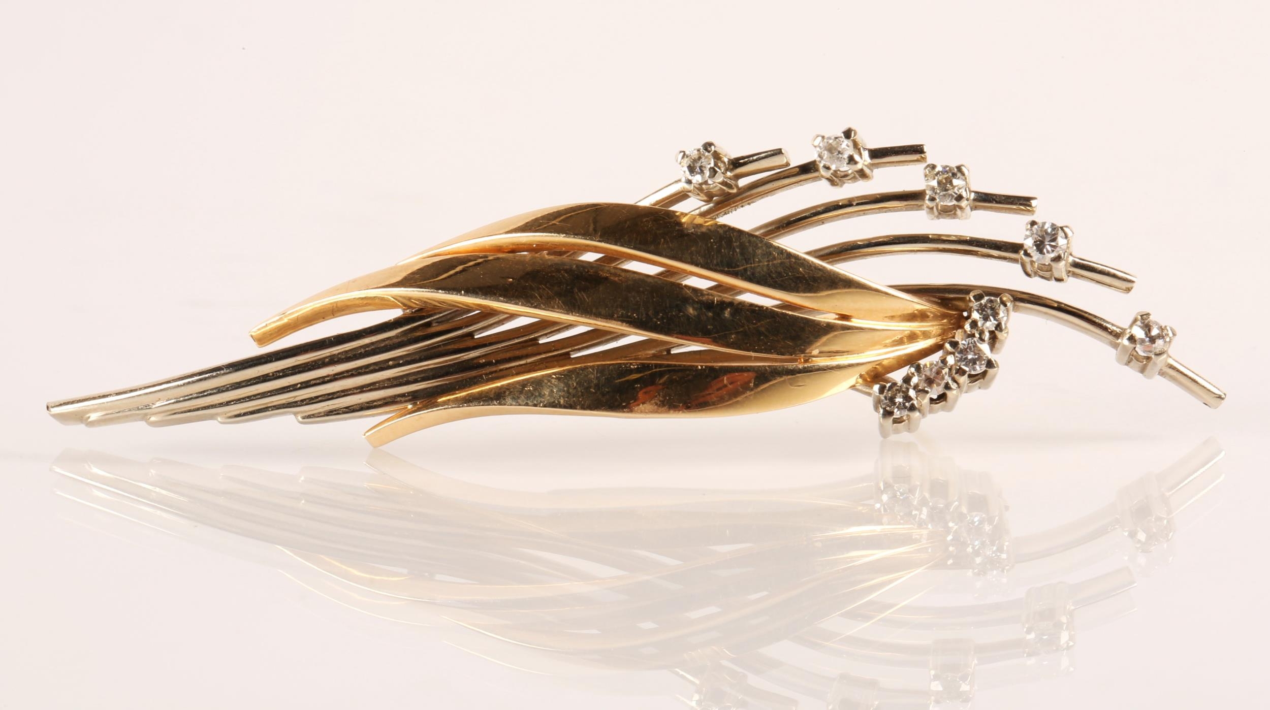 14ct white and yellow gold diamond spray brooch, set with ni...