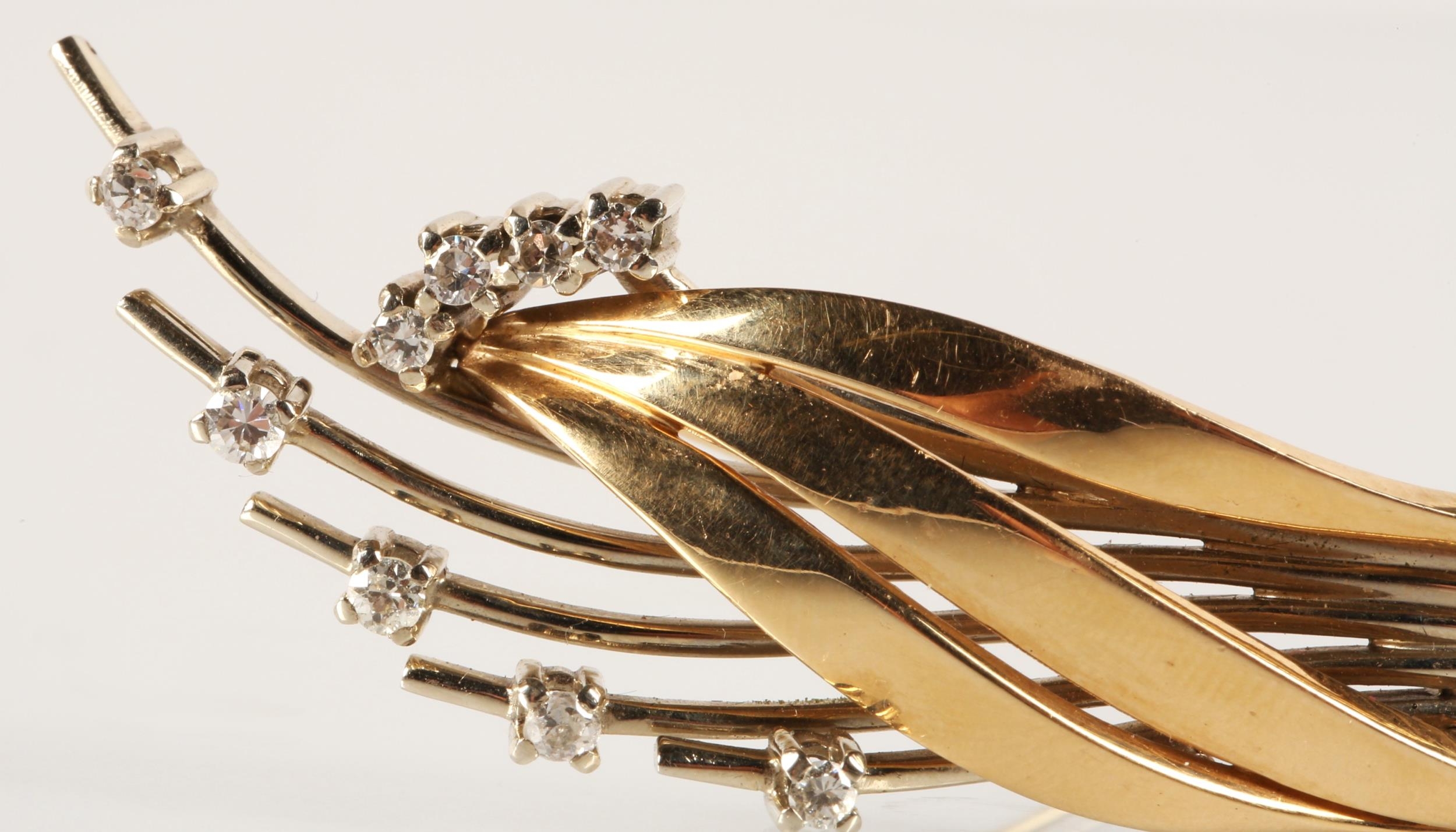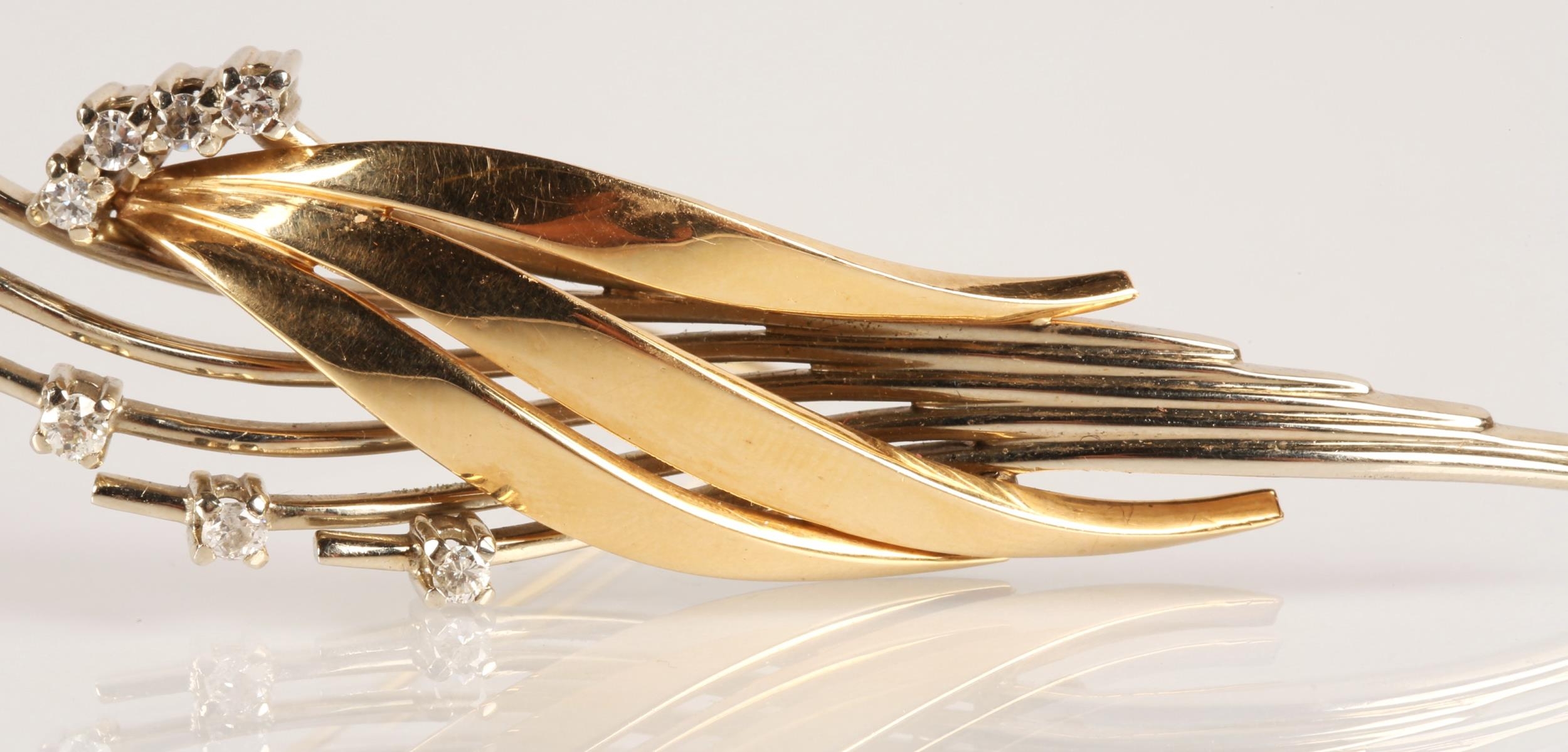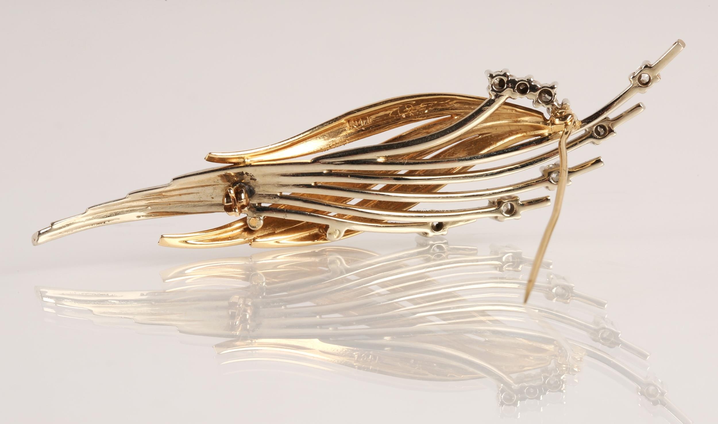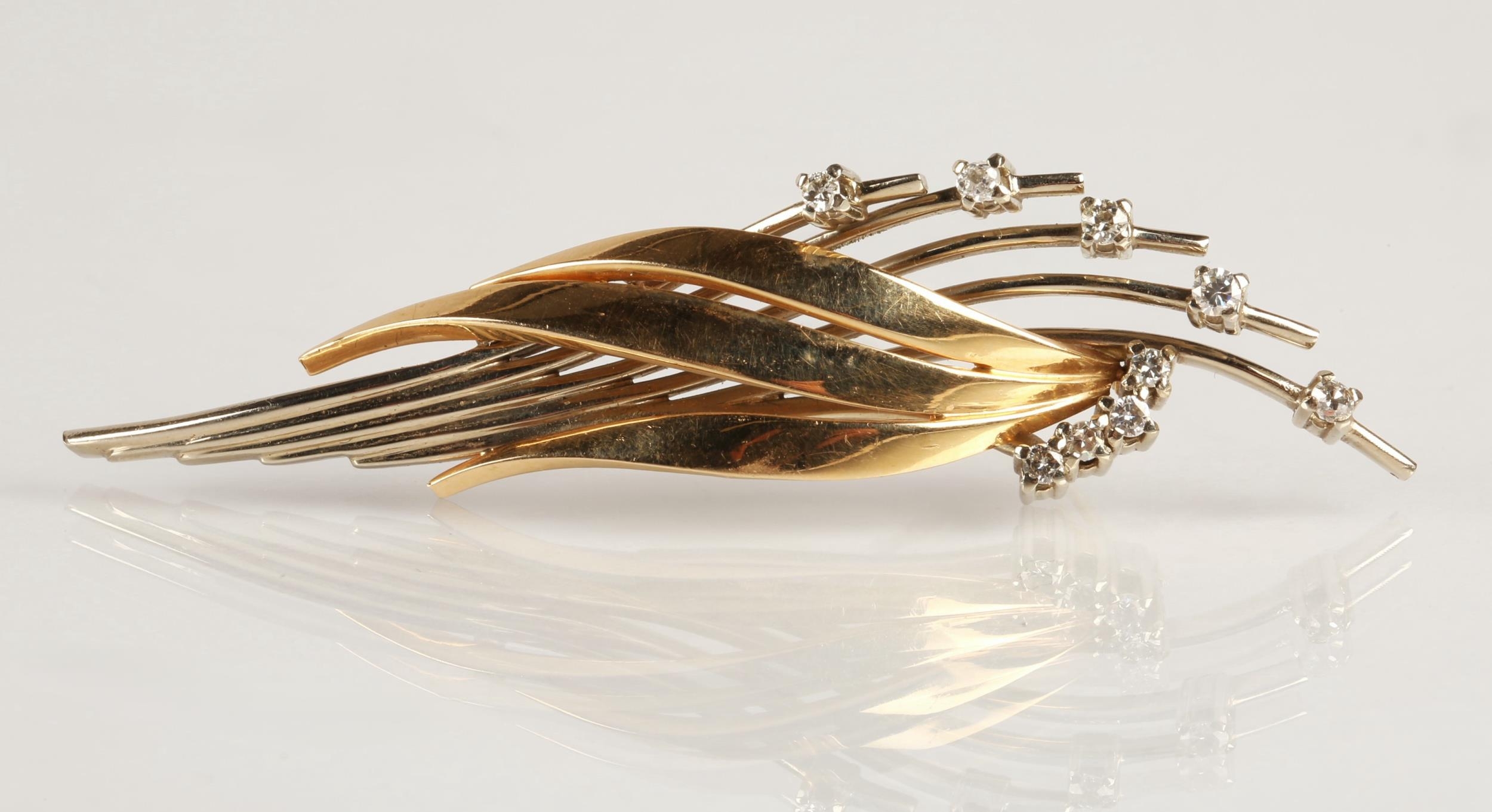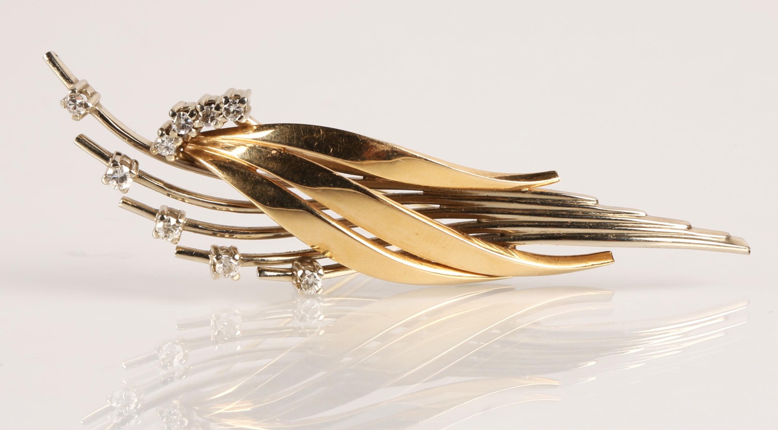 14ct white and yellow gold diamond spray brooch, set with ni...