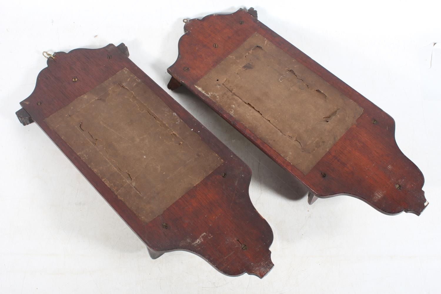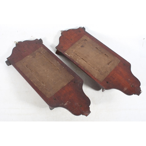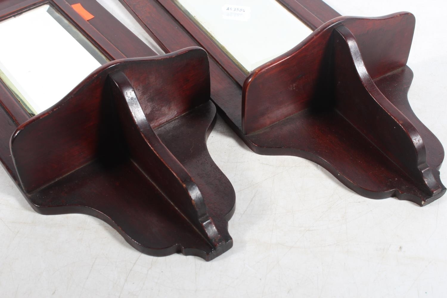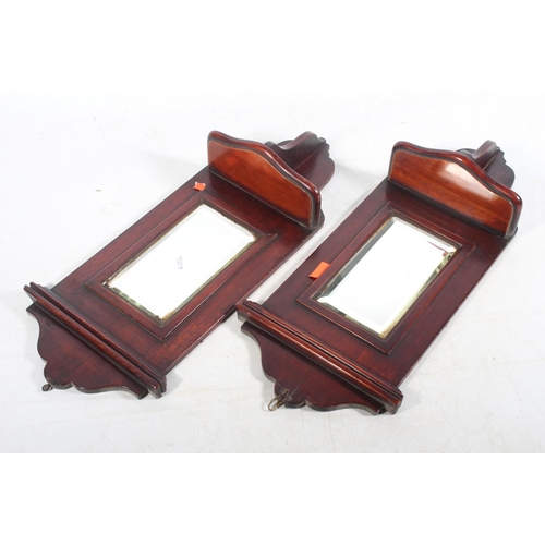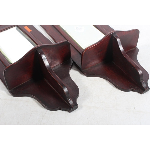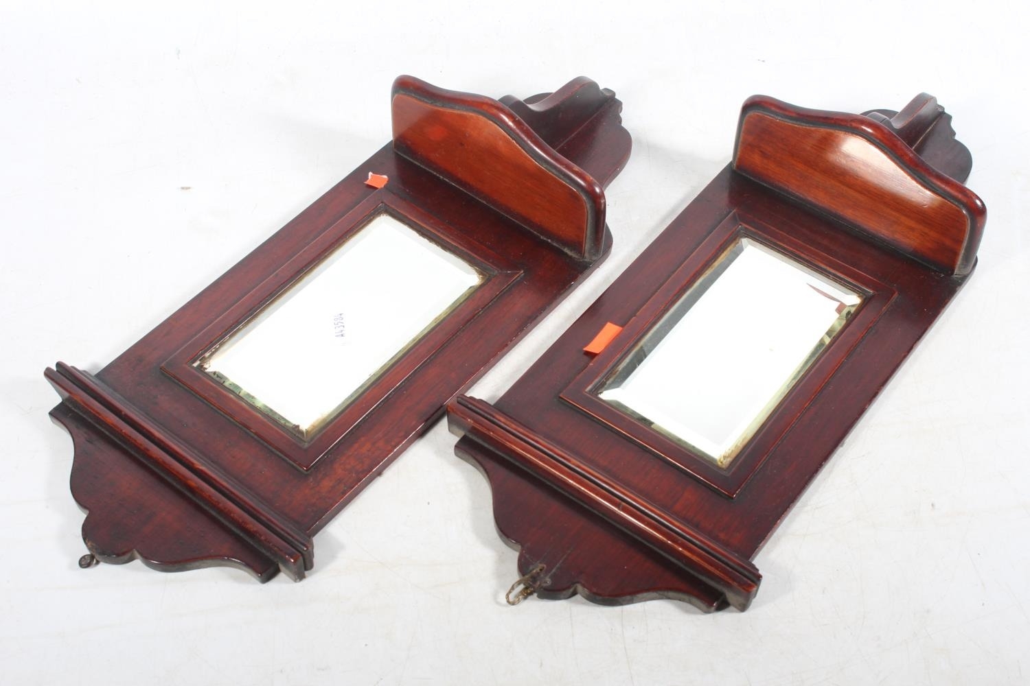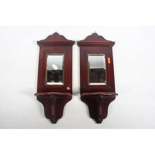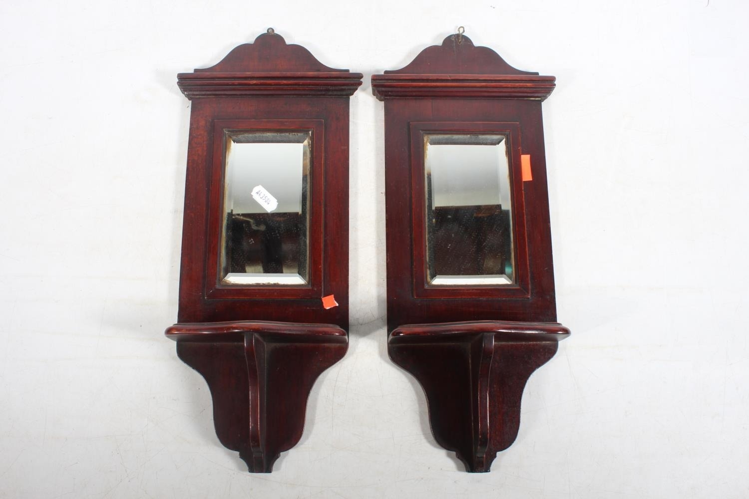 Pair of mahogany wall sconce mirrors with bevelled edges, 42...