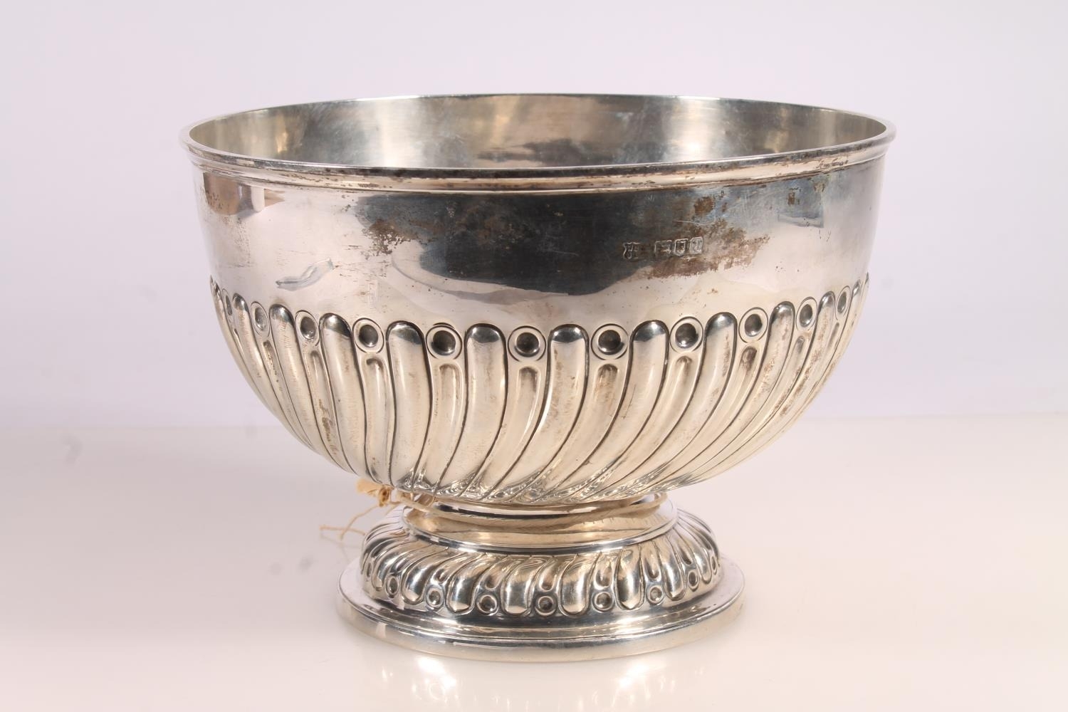 Victorian silver pedestal bowl with fluted decoration to the body and base, Goldsmiths & Silversmiths Co