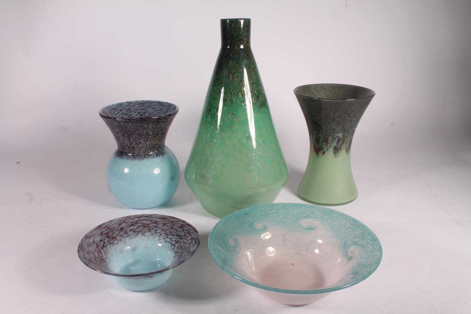 Scottish Art Glass vases and bowls, largest 31.5cm high.