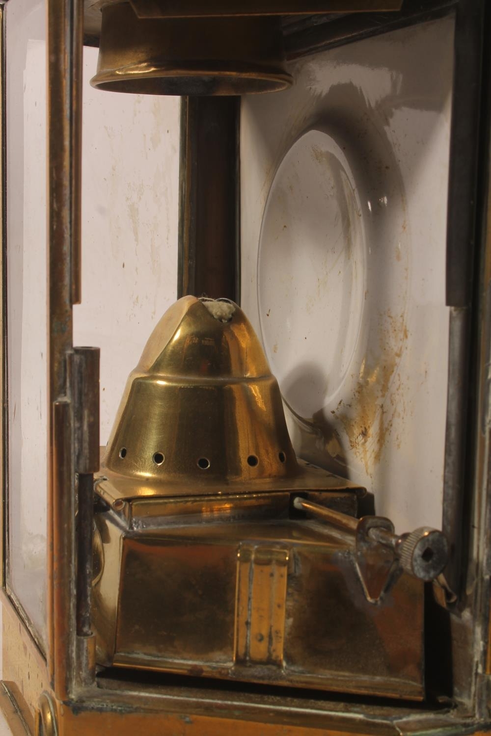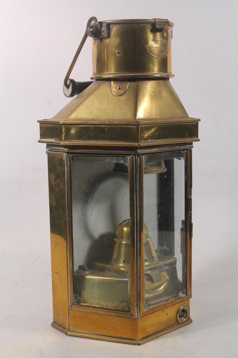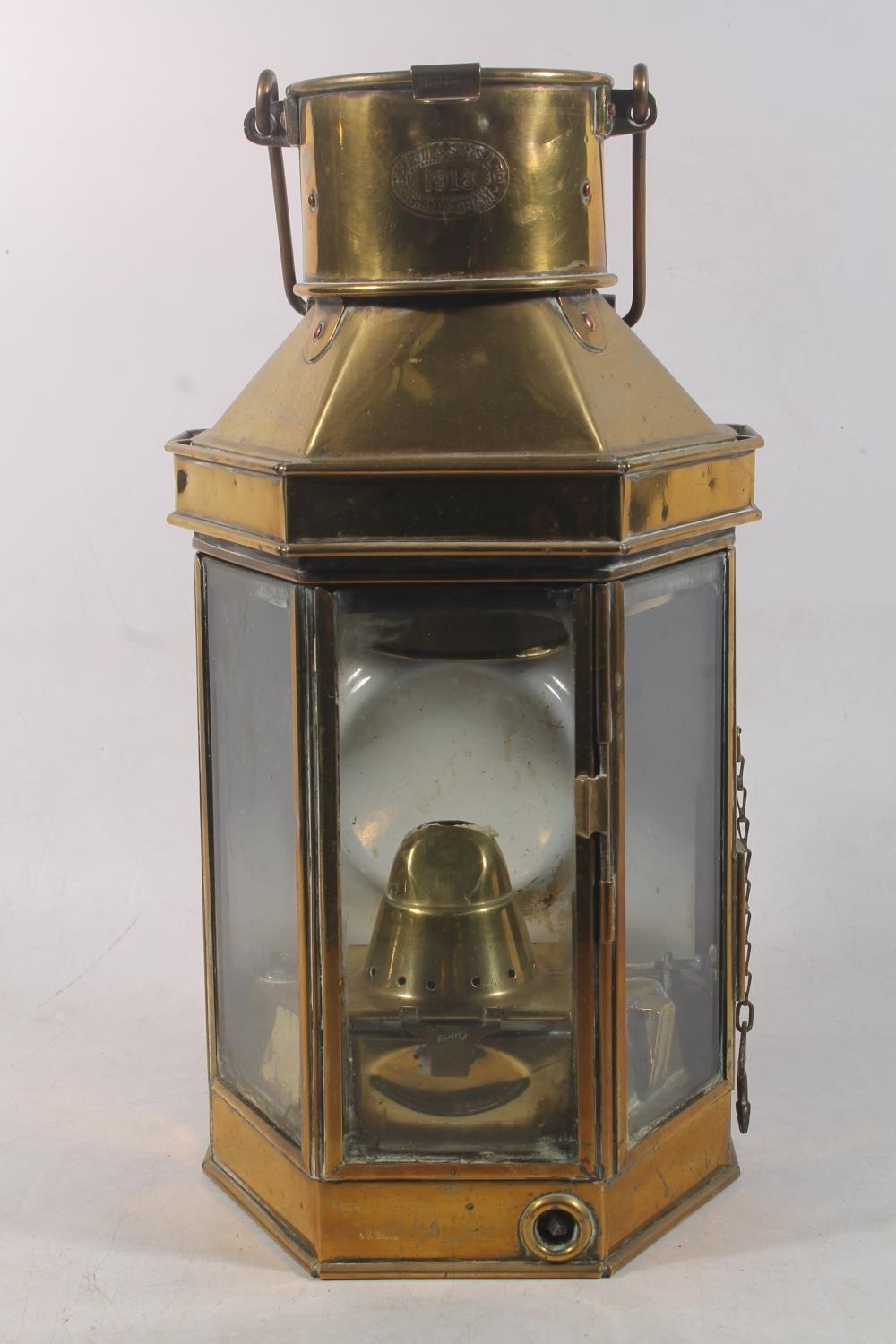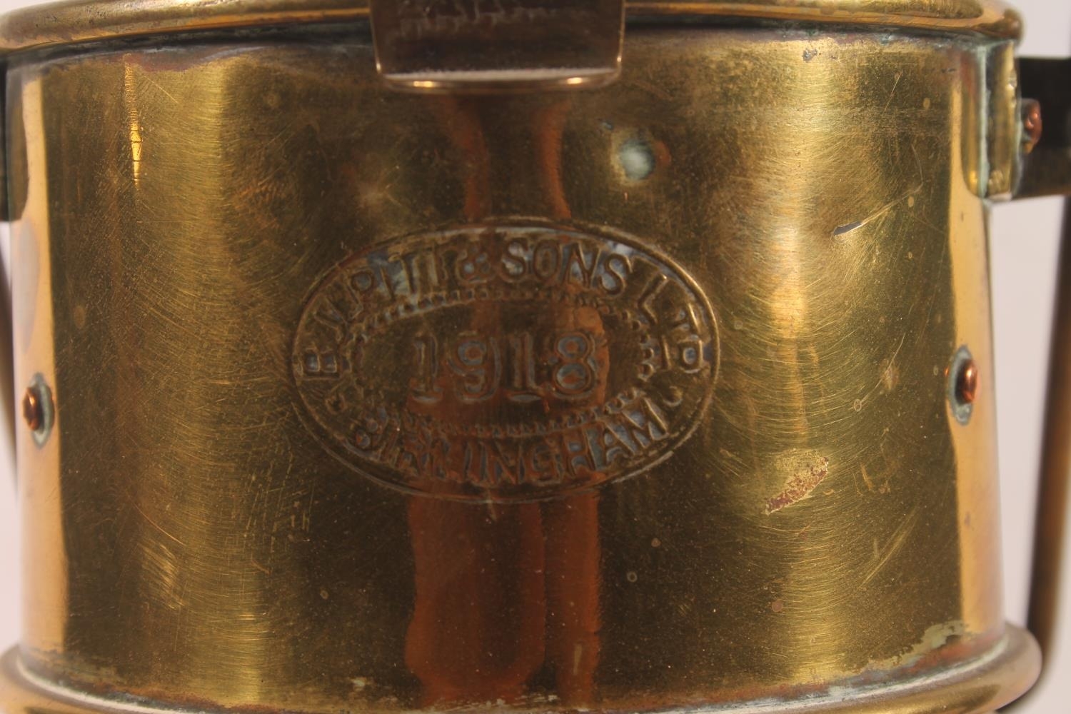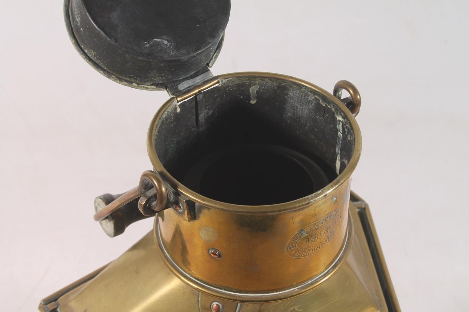 B J Pitt & Sons Ltd of Birmingham brass ships masthead lantern, dated 1918, 52cm high to top of handle.
