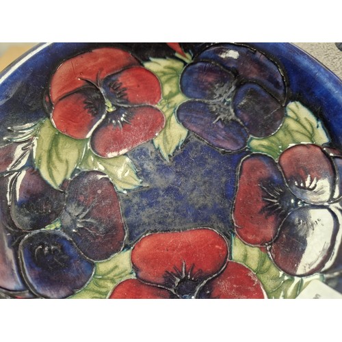 Moorcroft pottery tube lined shallow plate on blue ground, d...