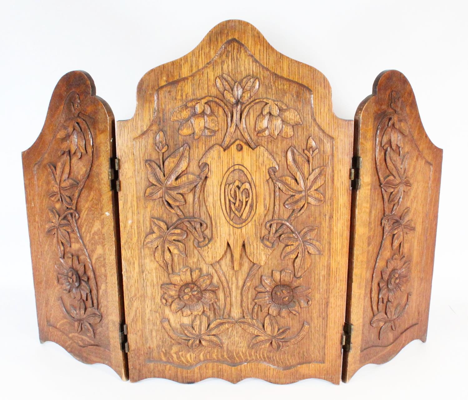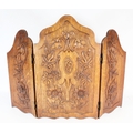 Edwardian deep carved oak folding screen, 62cm high.