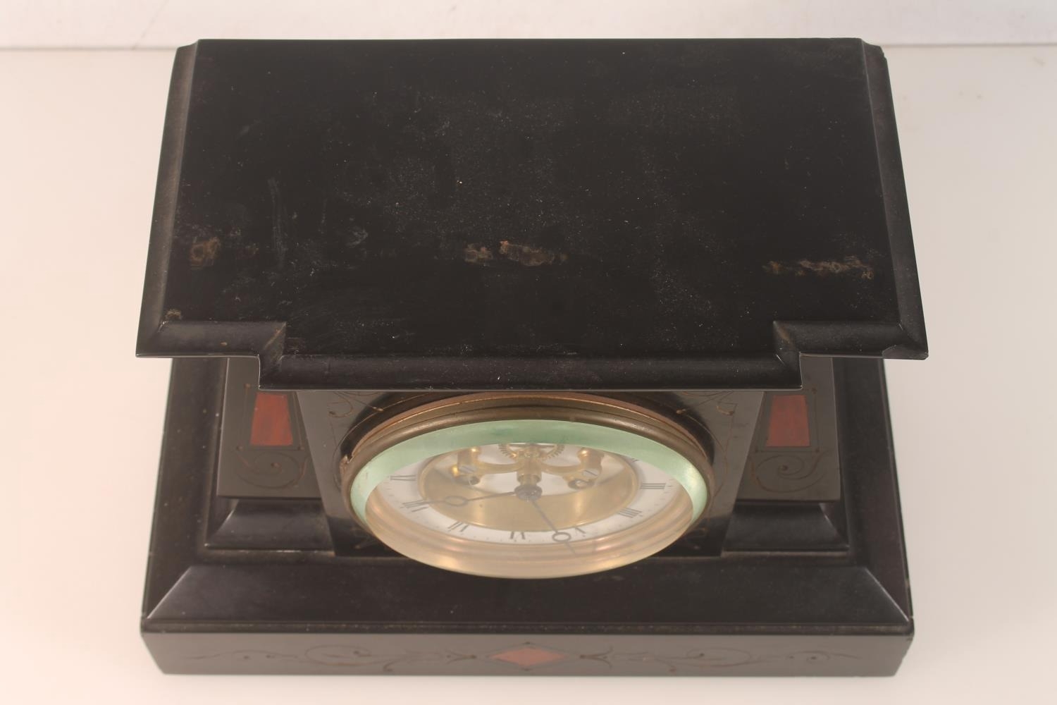 Antique slate mantel clock with brocot escapement, striking ...