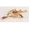 Edwardian 9ct gold pendant brooch set with amethyst and seed...