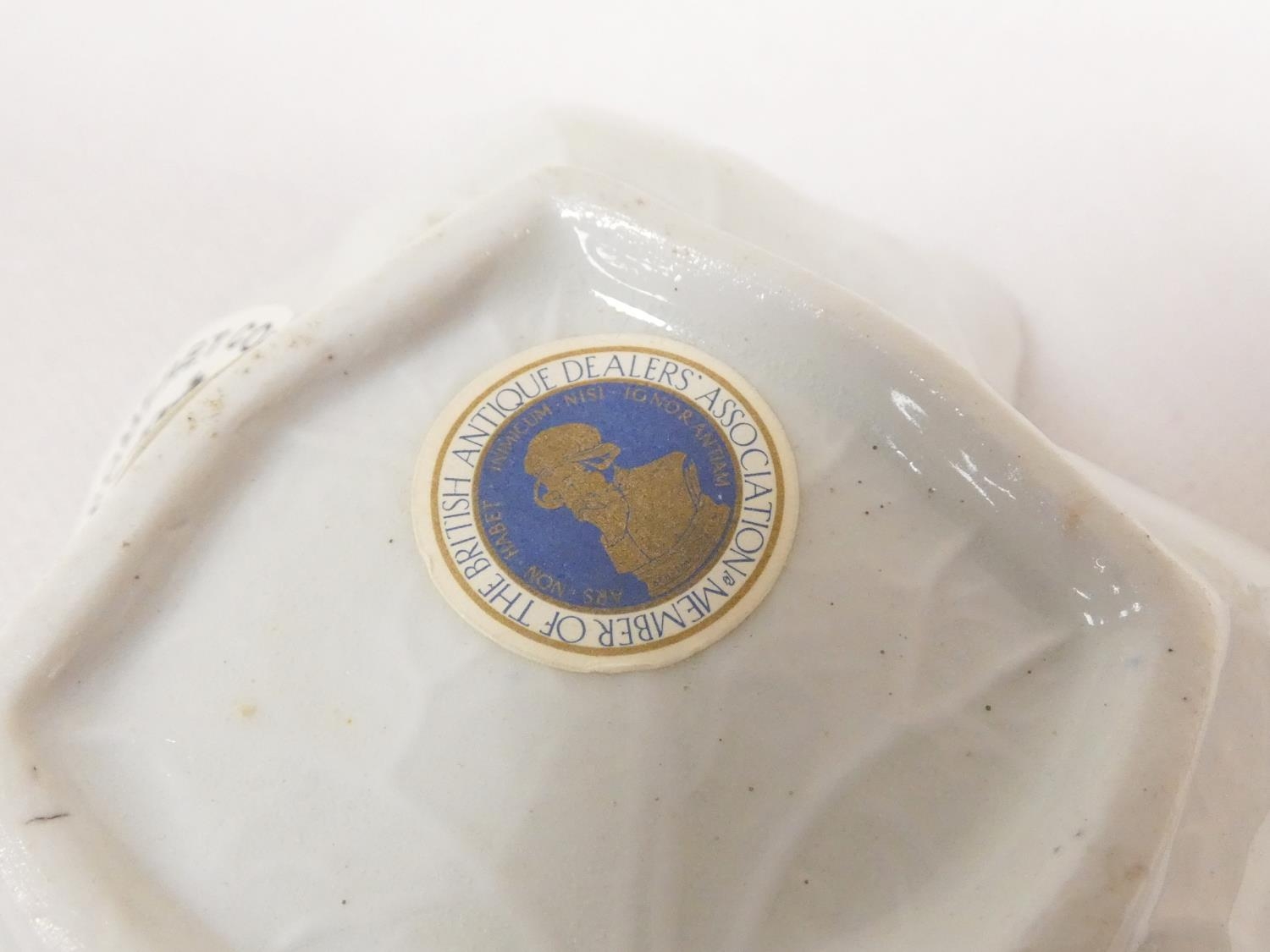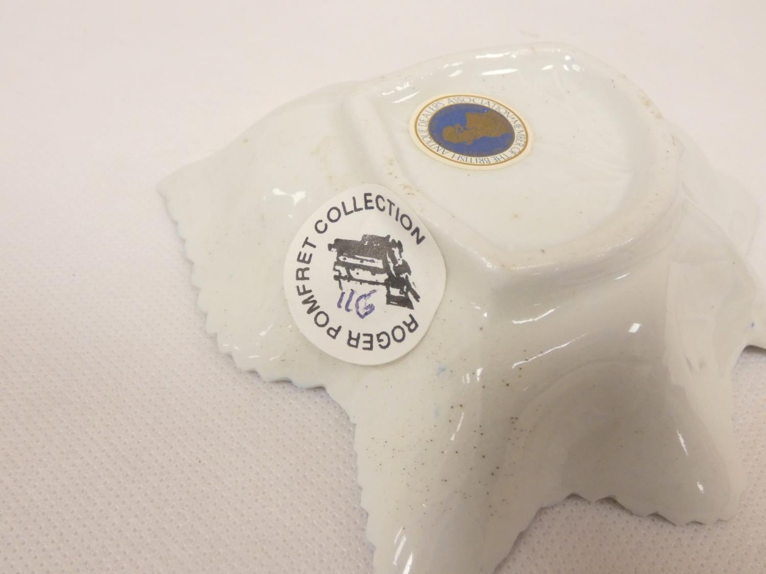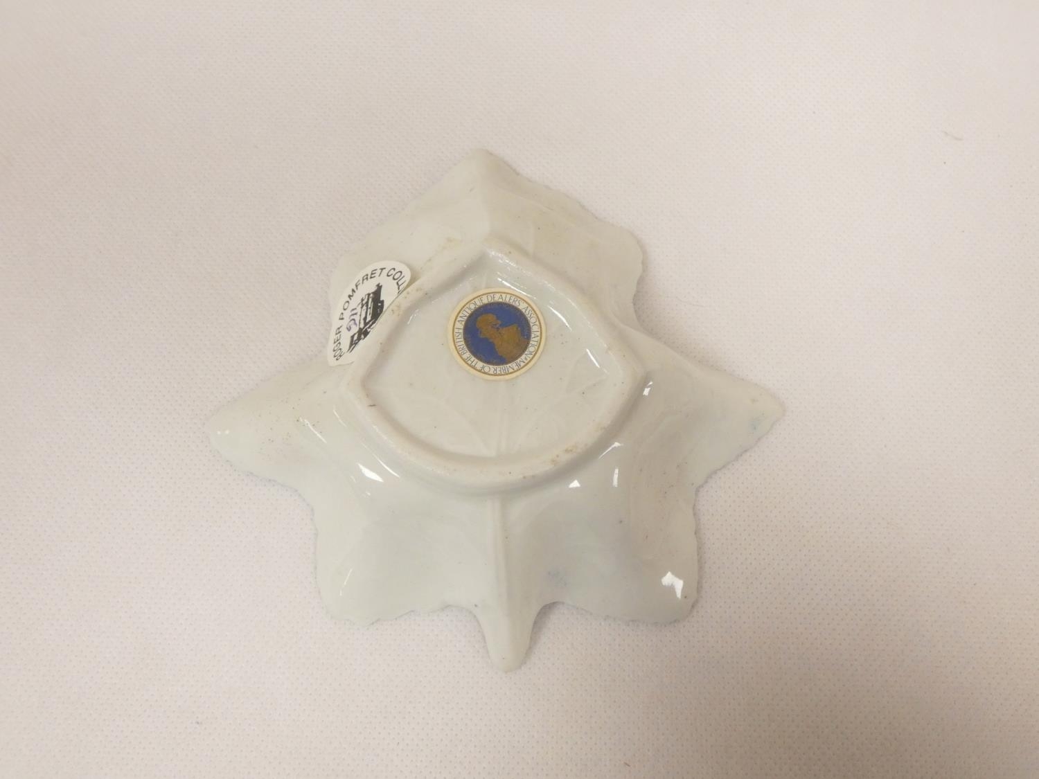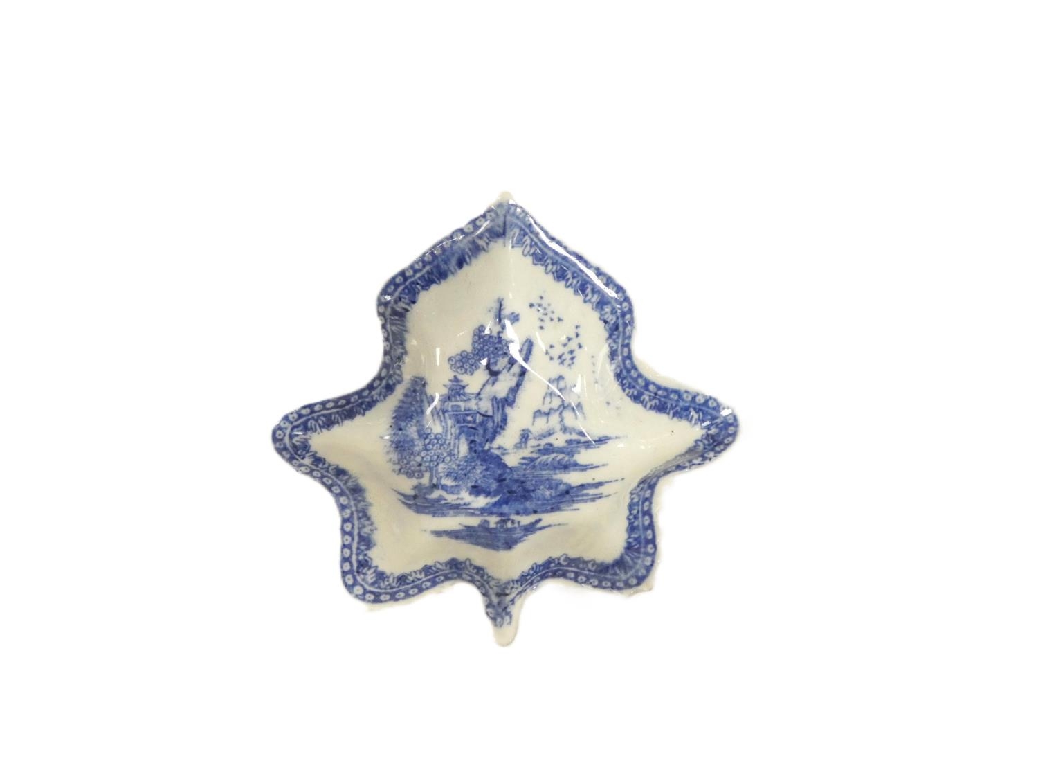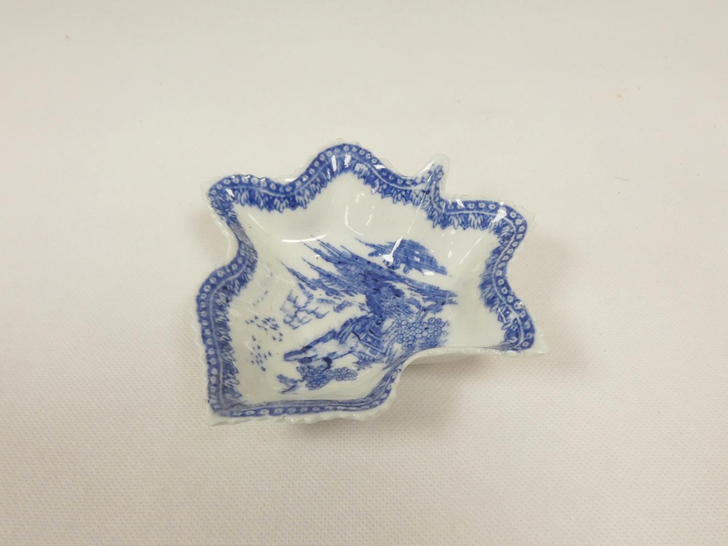New Hall pickle dish of leaf form, blue printed with "Gazebo...