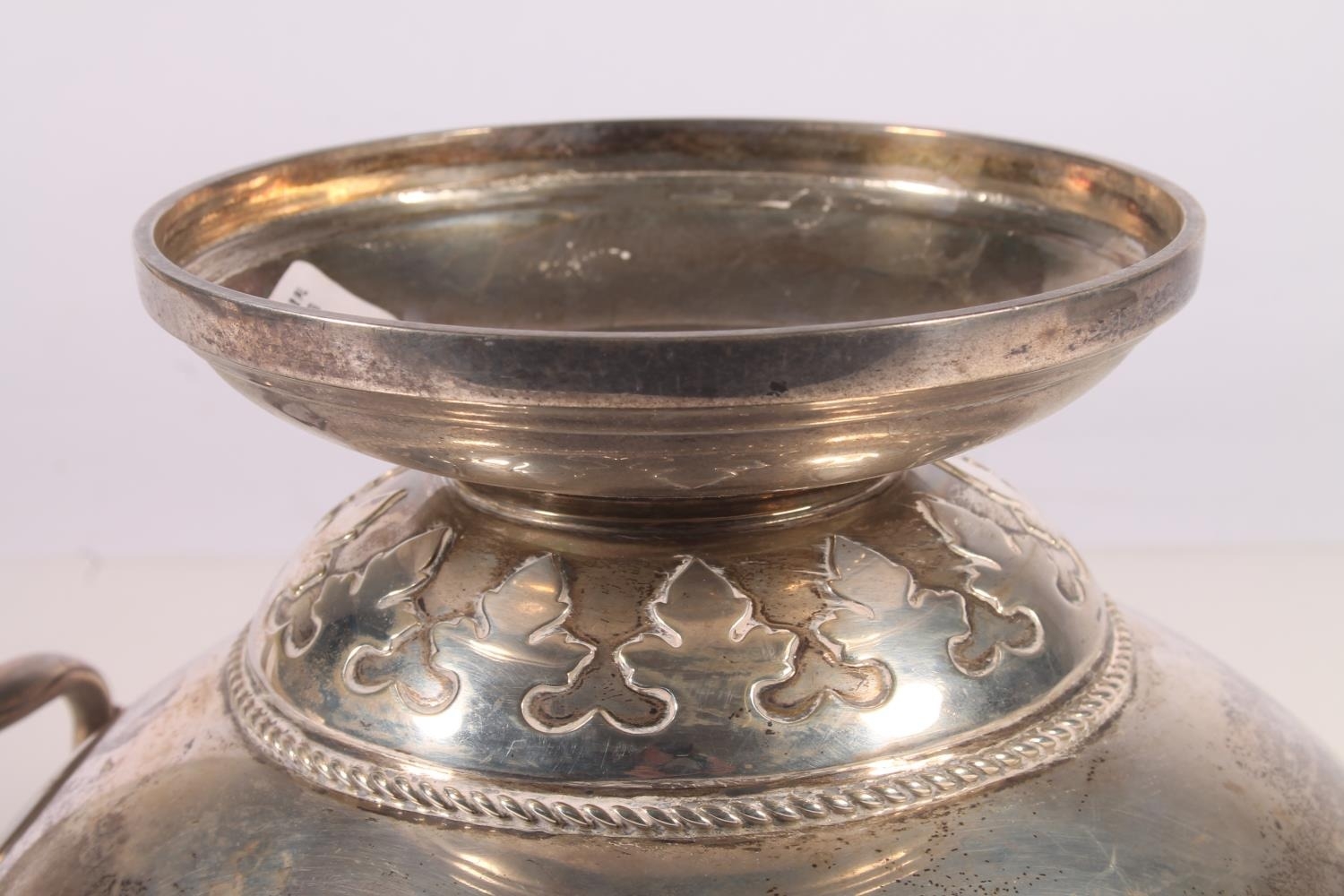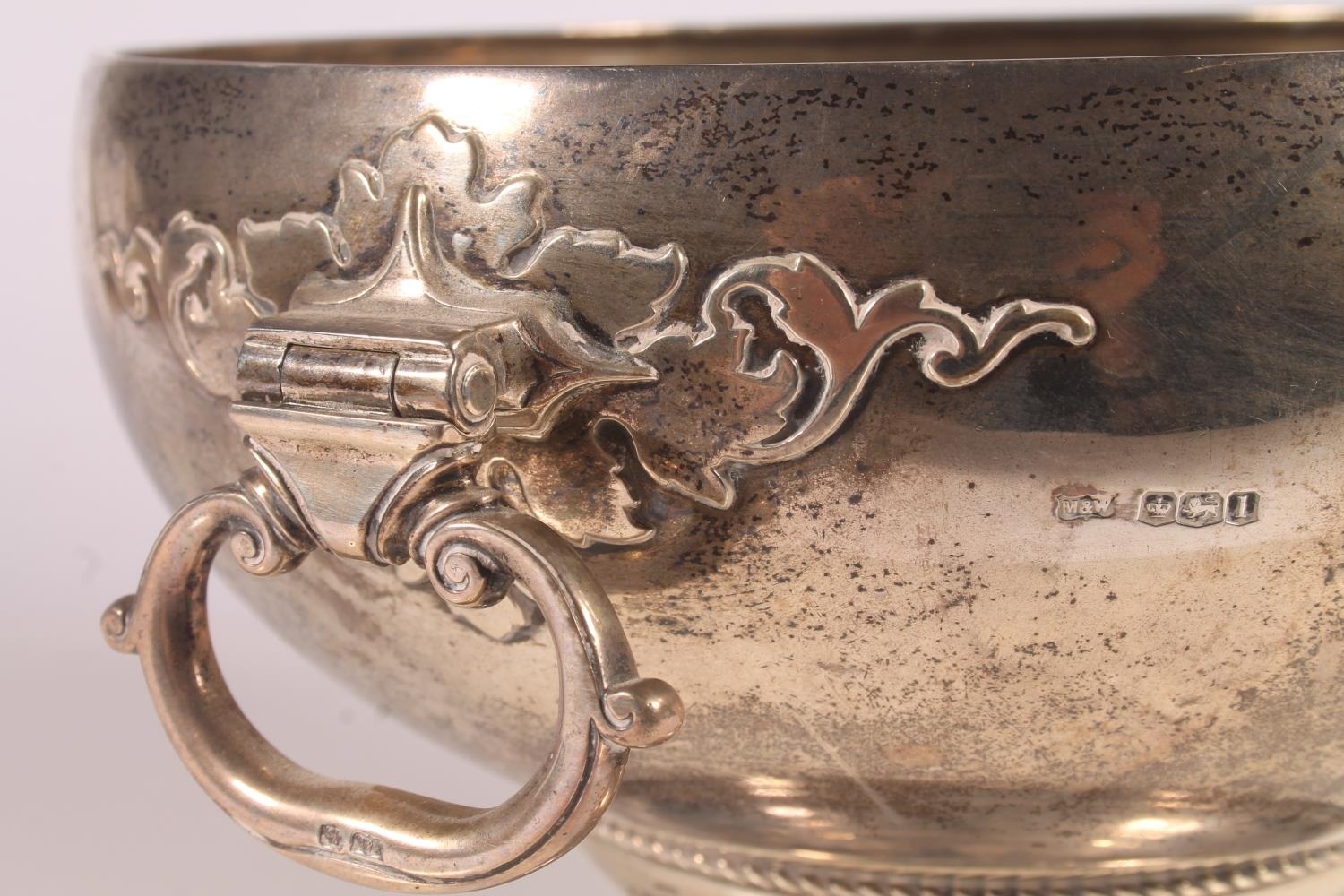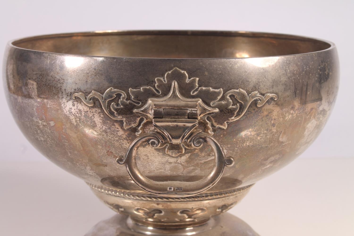 Geo. V silver pedestal fruit bowl, the round bowl with hinge...