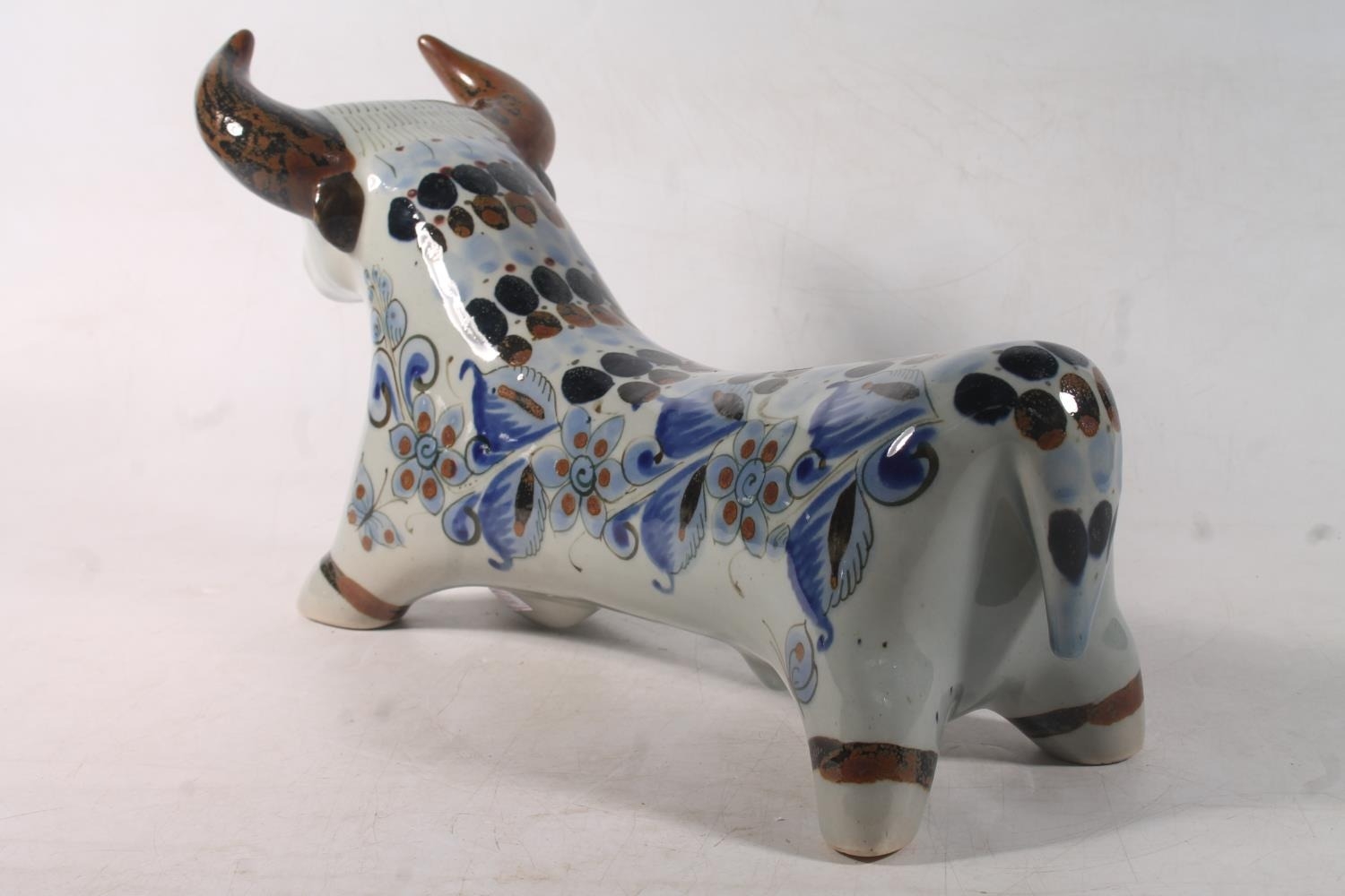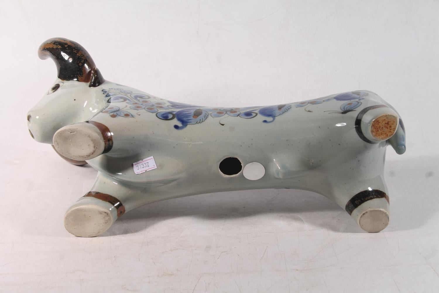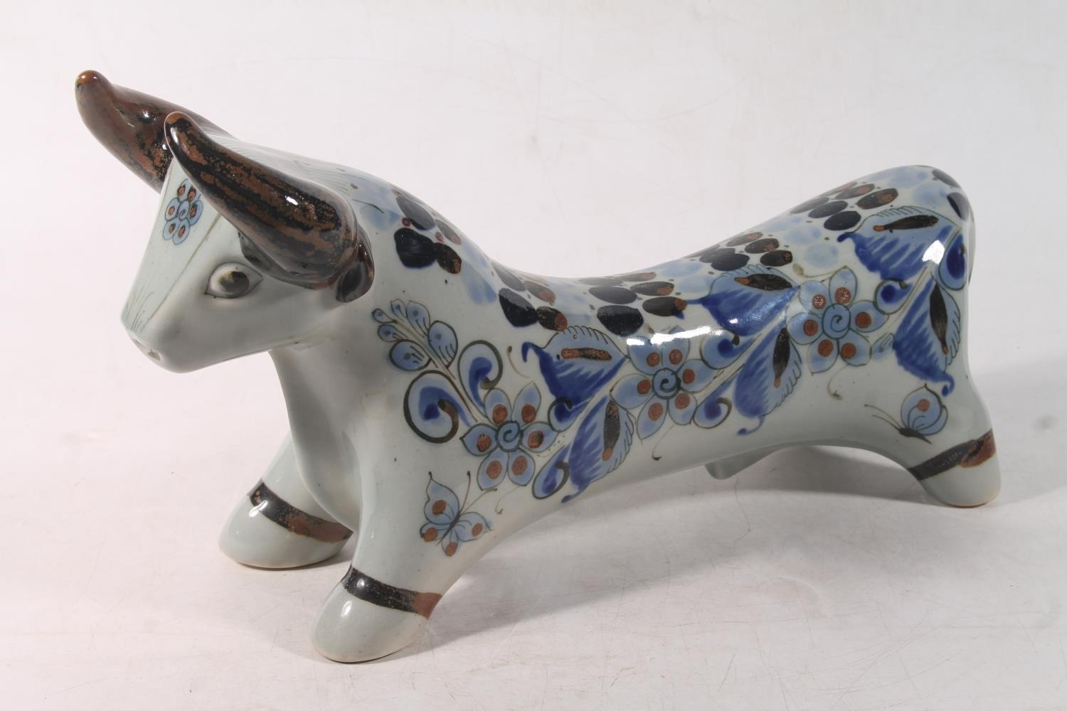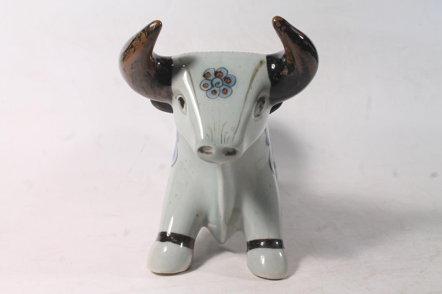 Continental Studio Pottery model of a bull, 36cm long.