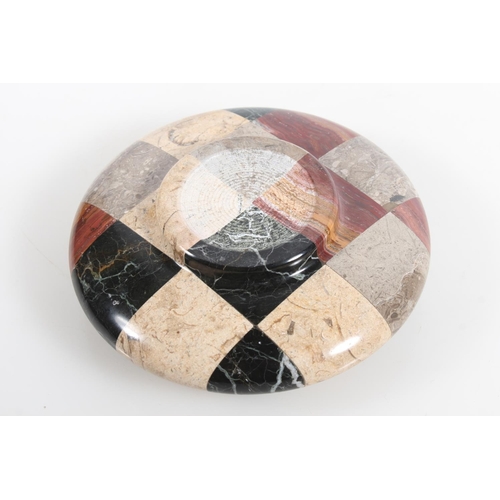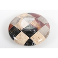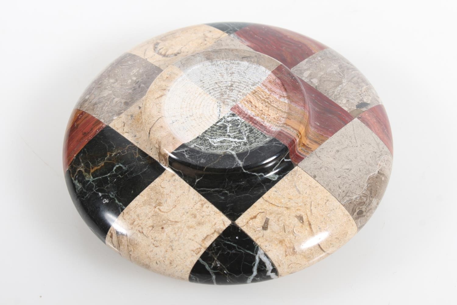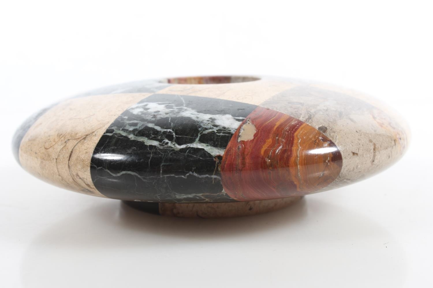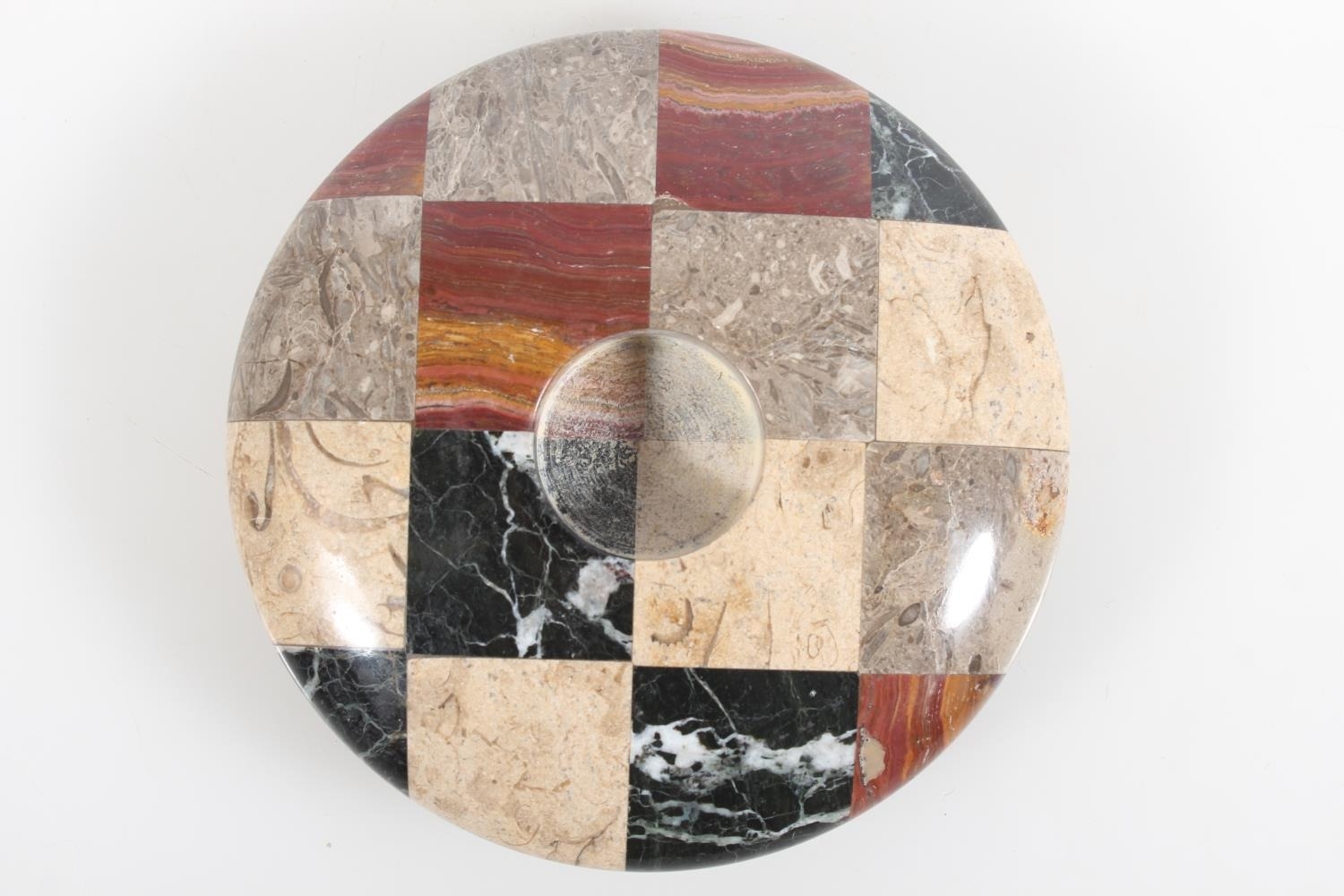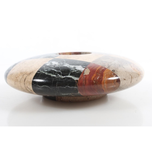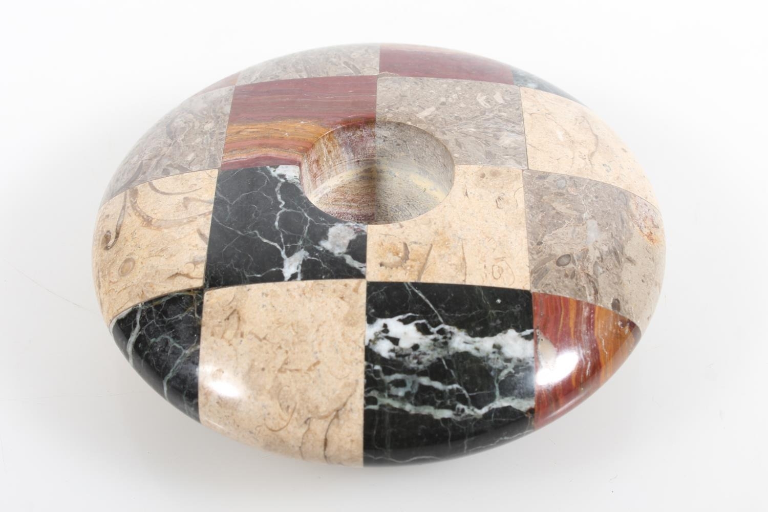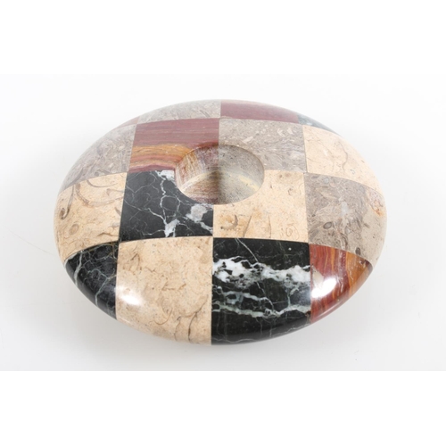Natural History interest, a polished agate mineral specimen candleholder of discus form, 16cm diameter.
