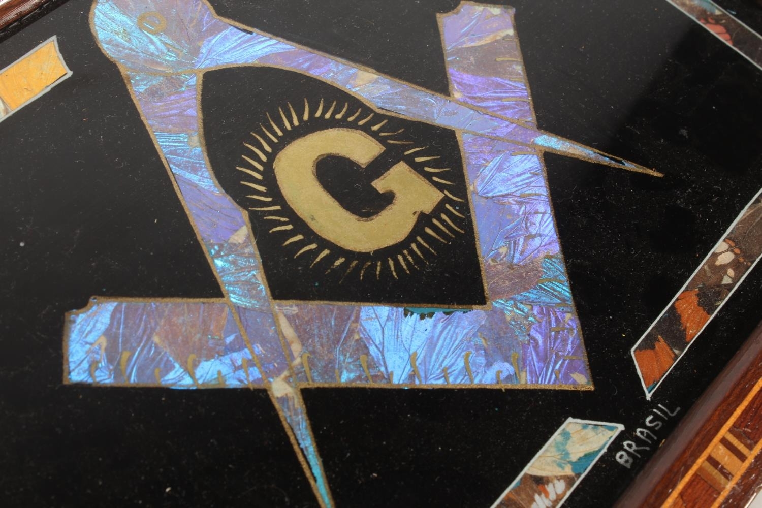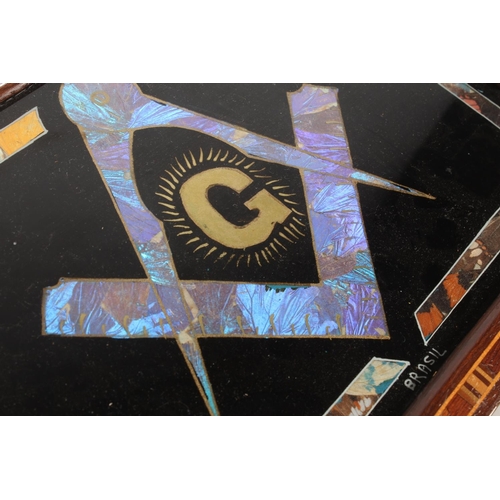 Masonic interest, a butterfly wing inlaid and specimen wood ...