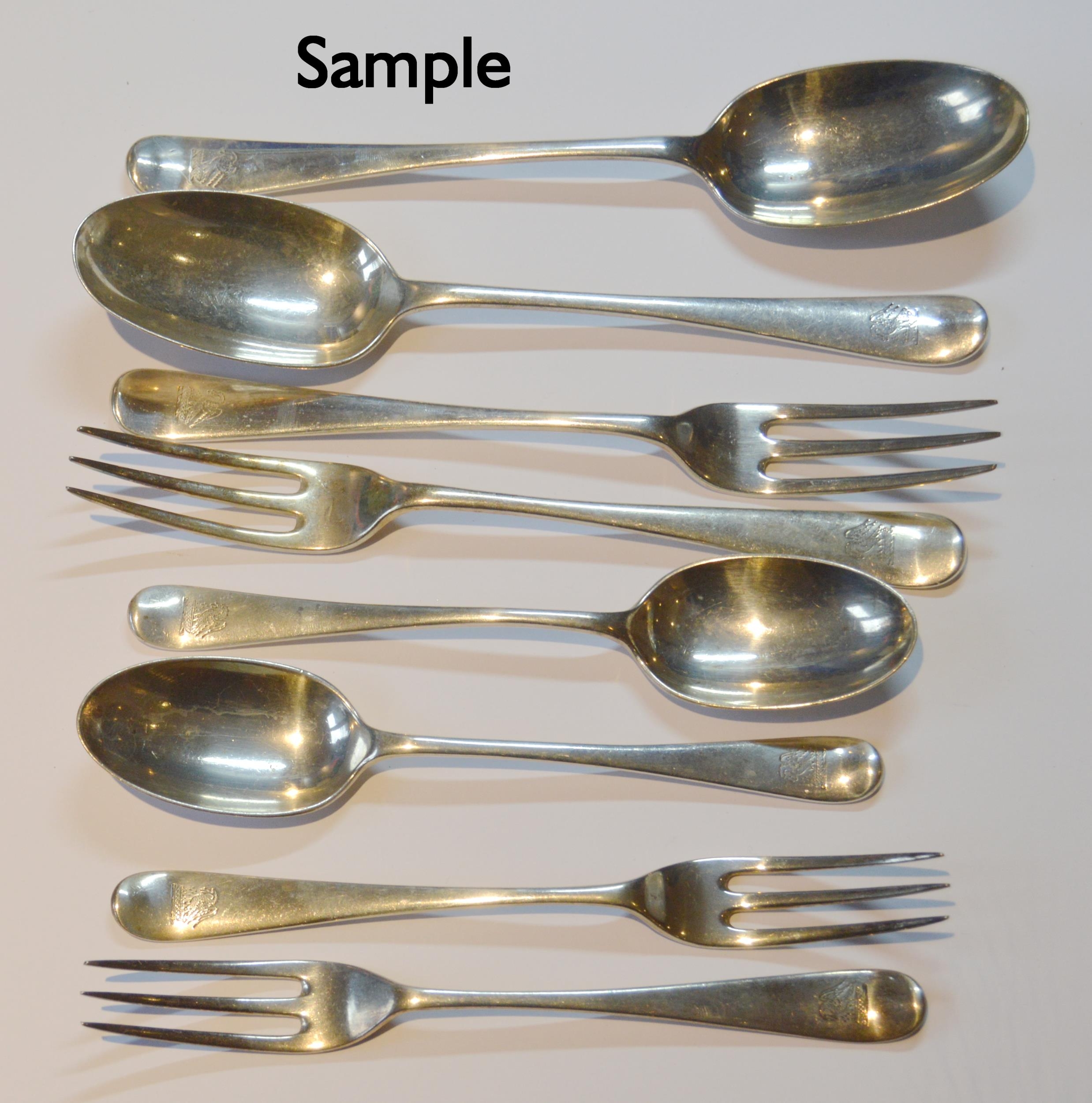 Part suite of near-matching late Victorian crested silver cutlery by Elkington & Co., Birmingham, various date letters from the period 1890-98, approximately 2,749g or 88ozt gross.