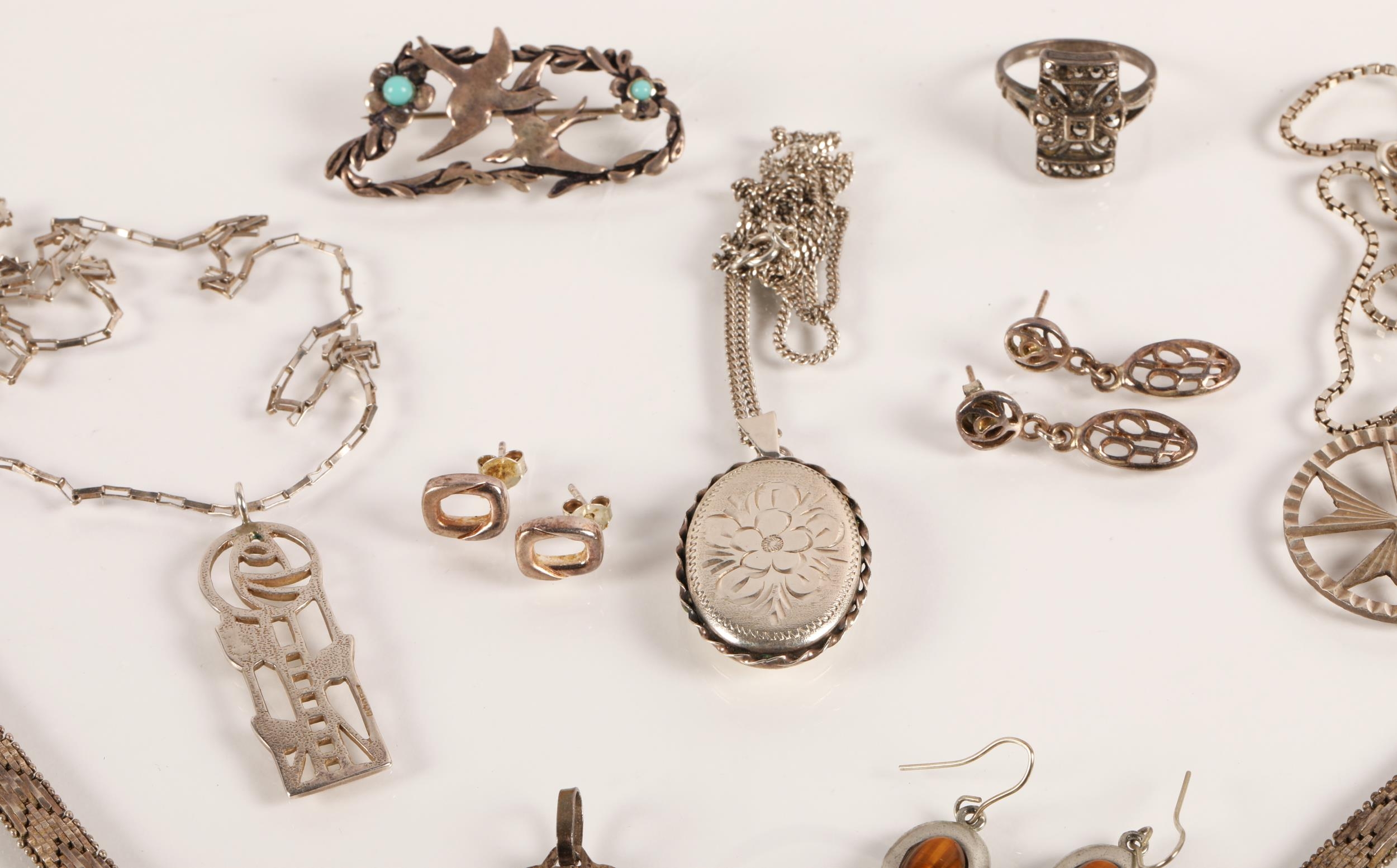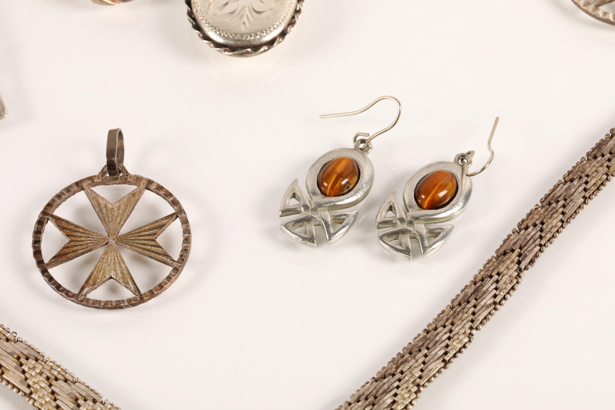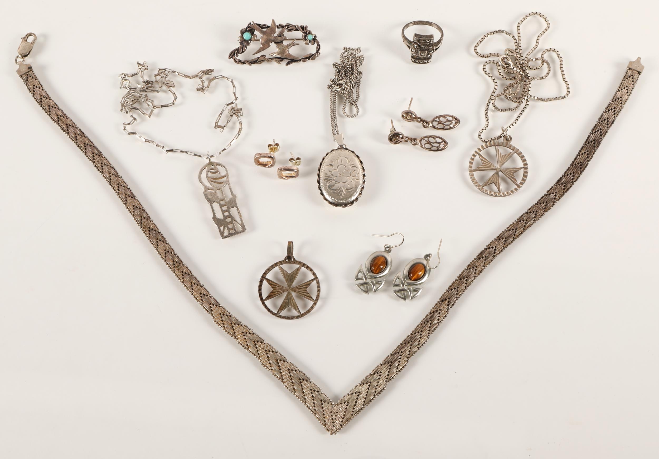 Silver and white metal jewellery to include necklaces, Maltese Cross pendants, earrings, brooches, locket, etc. gross weight 85g