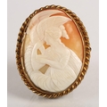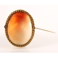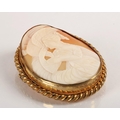 Victorian unmarked gold mounted carved shell cameo brooch, d...