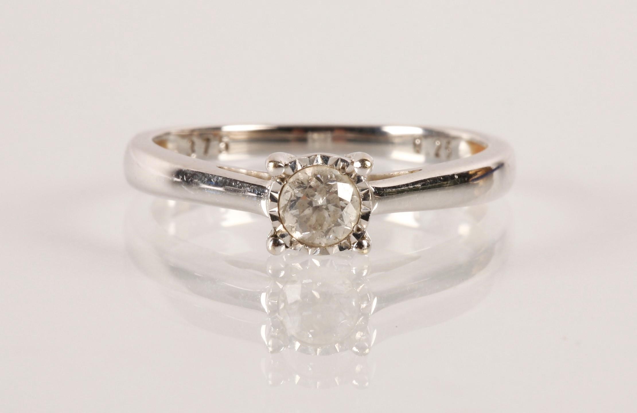 Ladies 9ct white gold diamond solitaire ring, the brilliant cut stone in a raised claw setting, 0.4 carat stone, ring size N, gross weight 2 grams