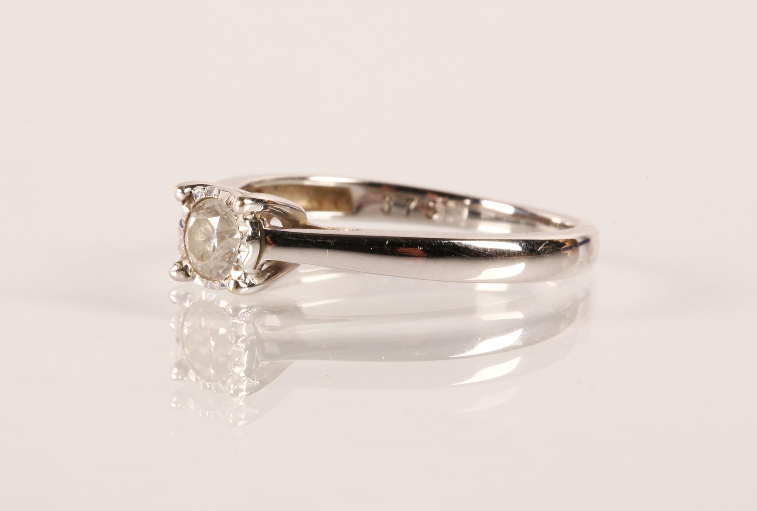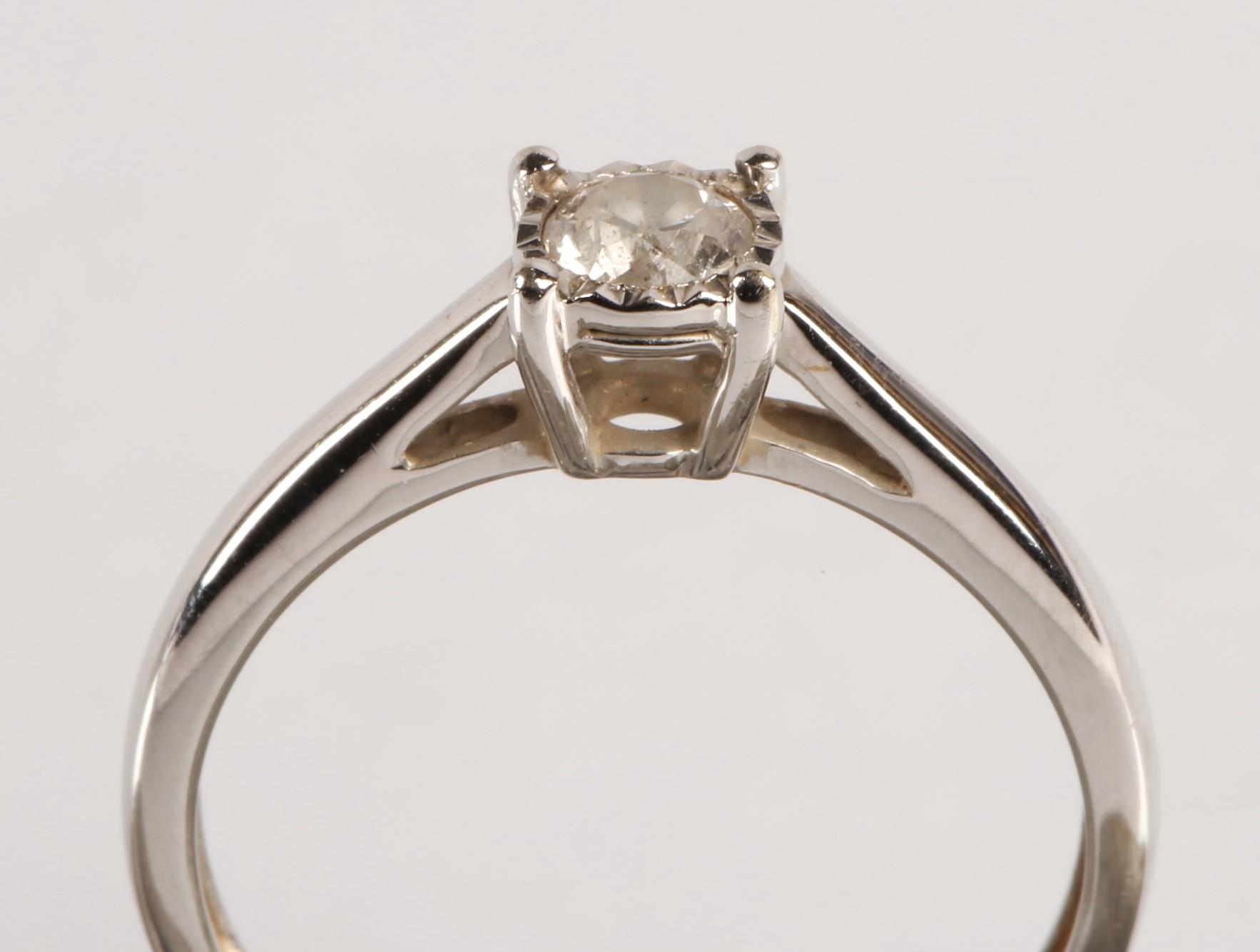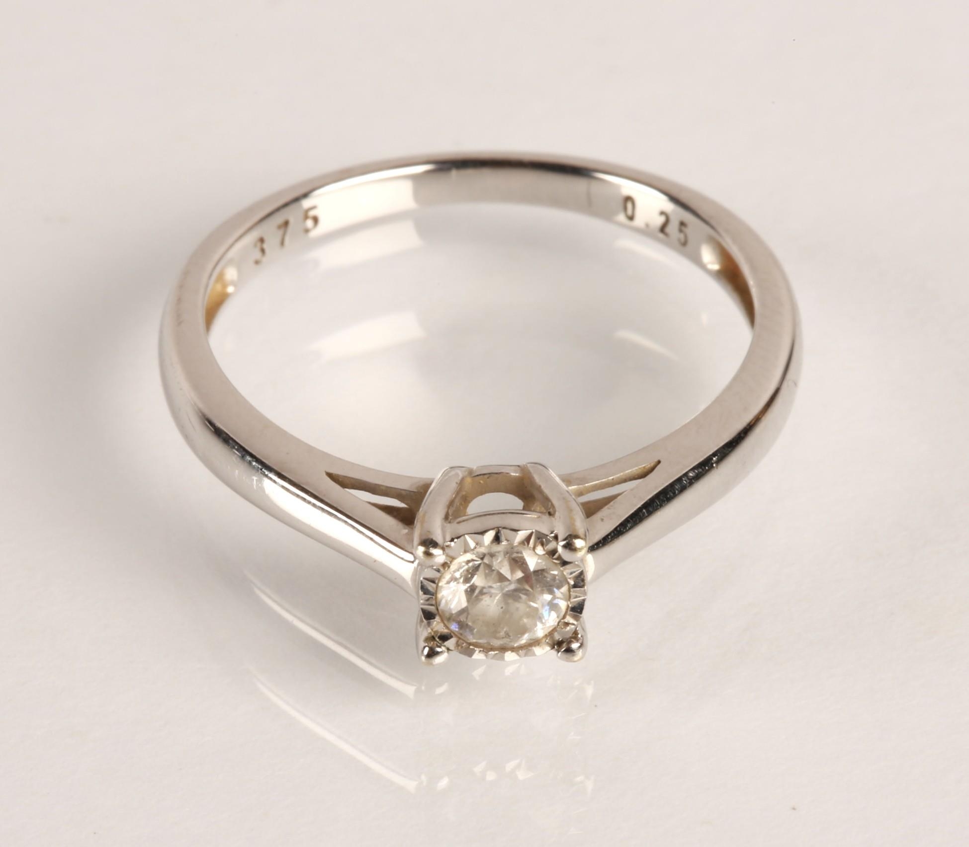 Ladies 9ct white gold diamond solitaire ring, the brilliant ...