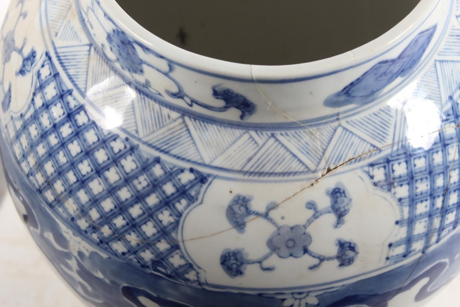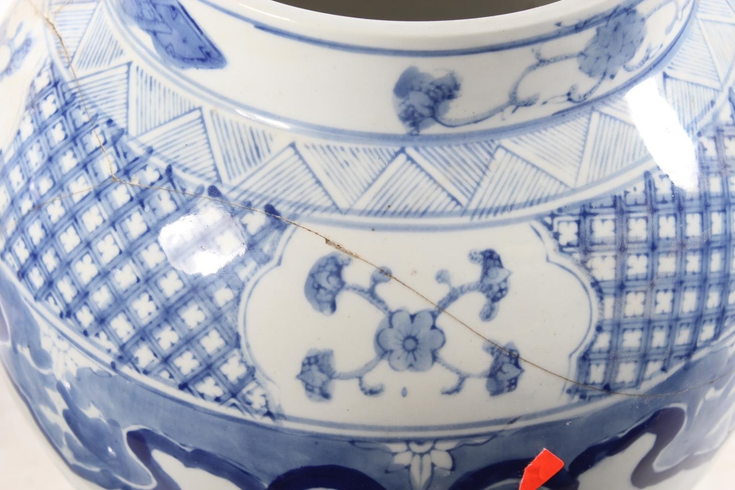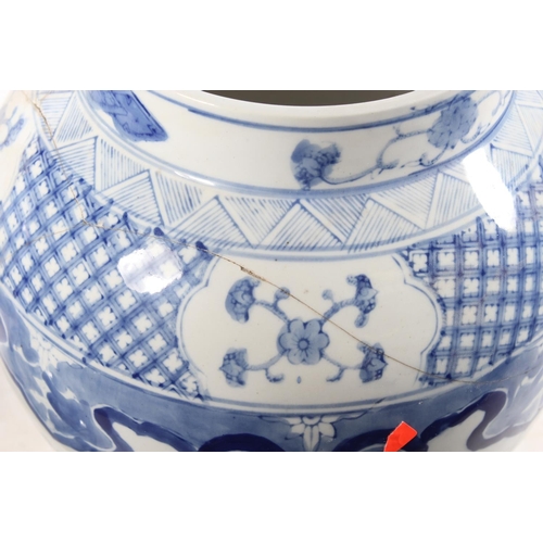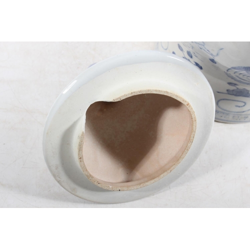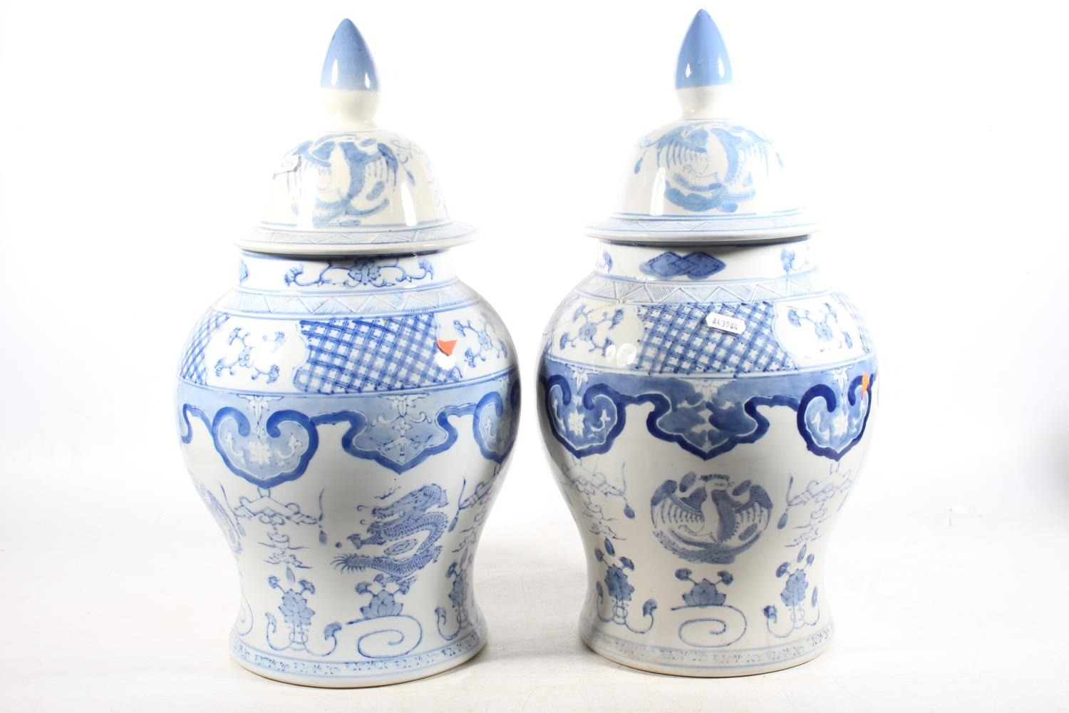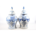 Pair of Chinese style blue and white temple jars and covers,...
