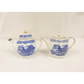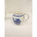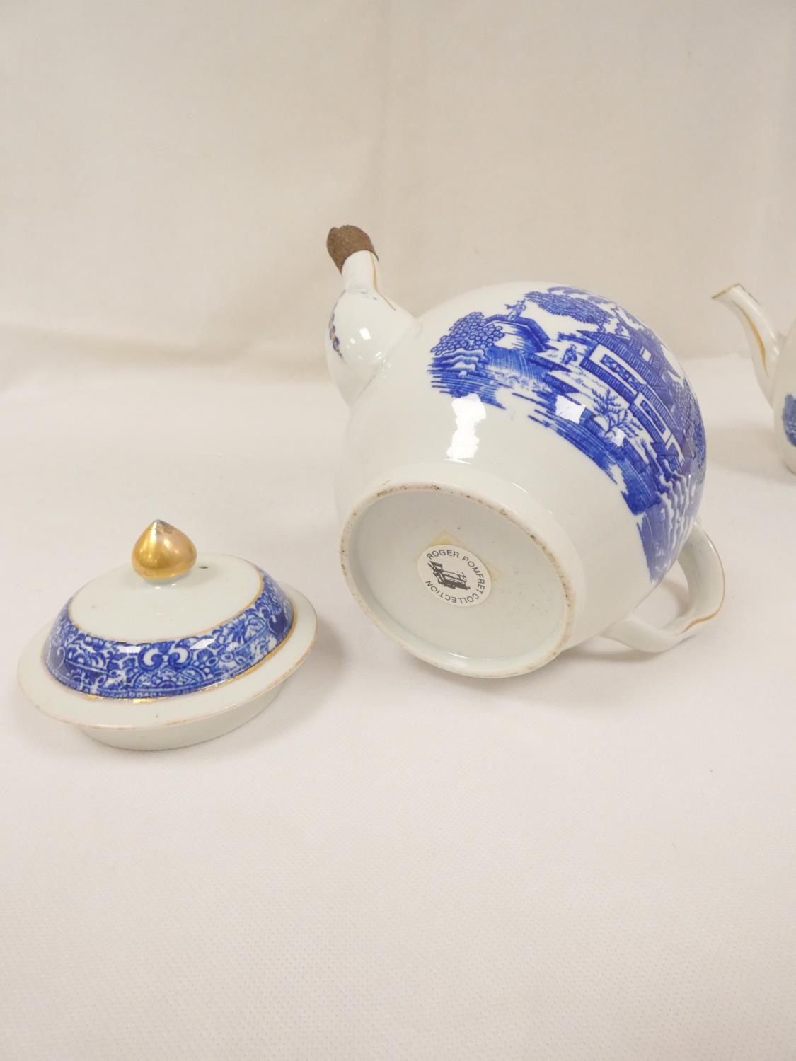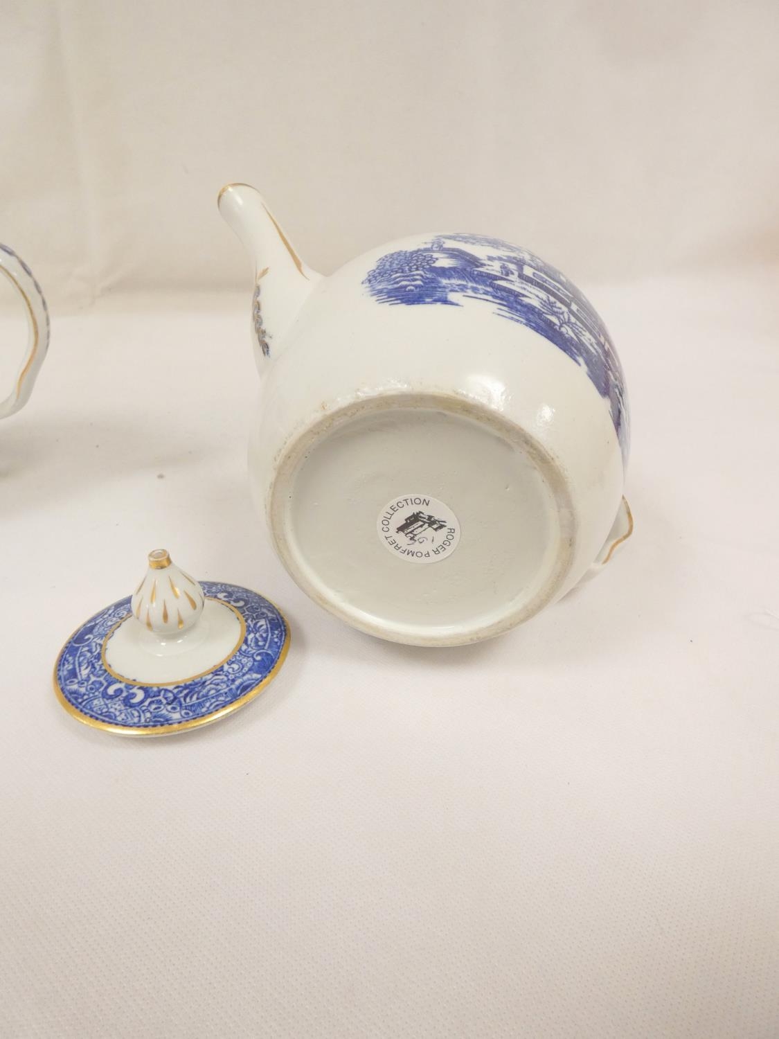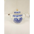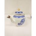 New Hall teapot, blue printed with "Man on Bridge" pattern, ...