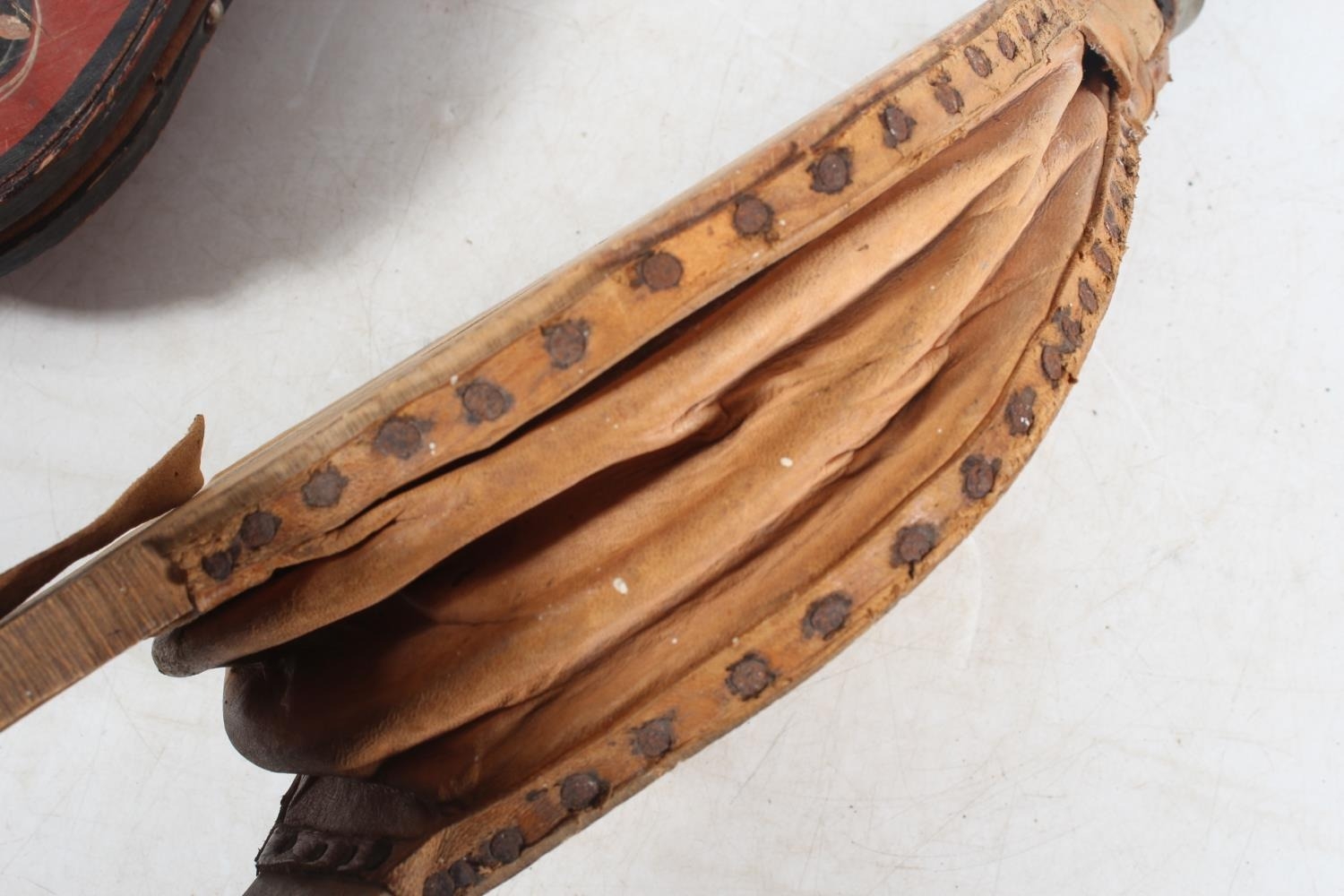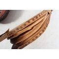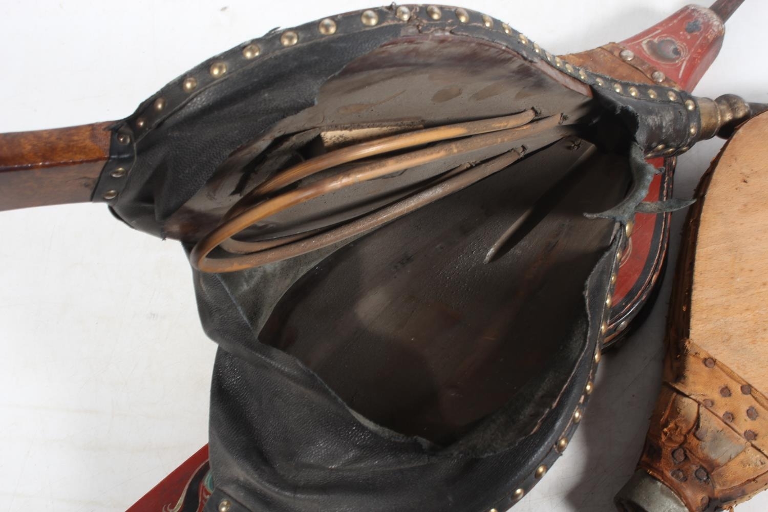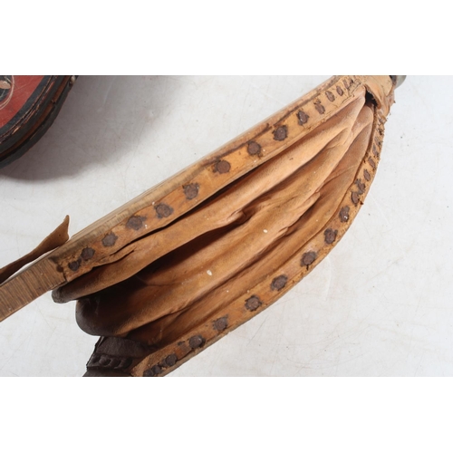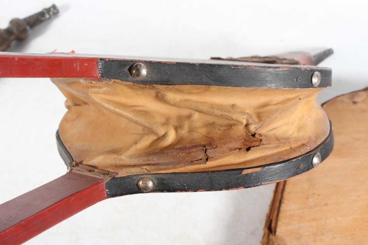 Three pairs of fire bellows, one painted in the bargeware style, the longest 68cm long. (3)