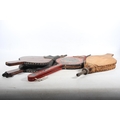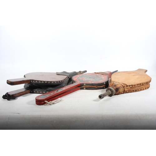 Three pairs of fire bellows, one painted in the bargeware st...