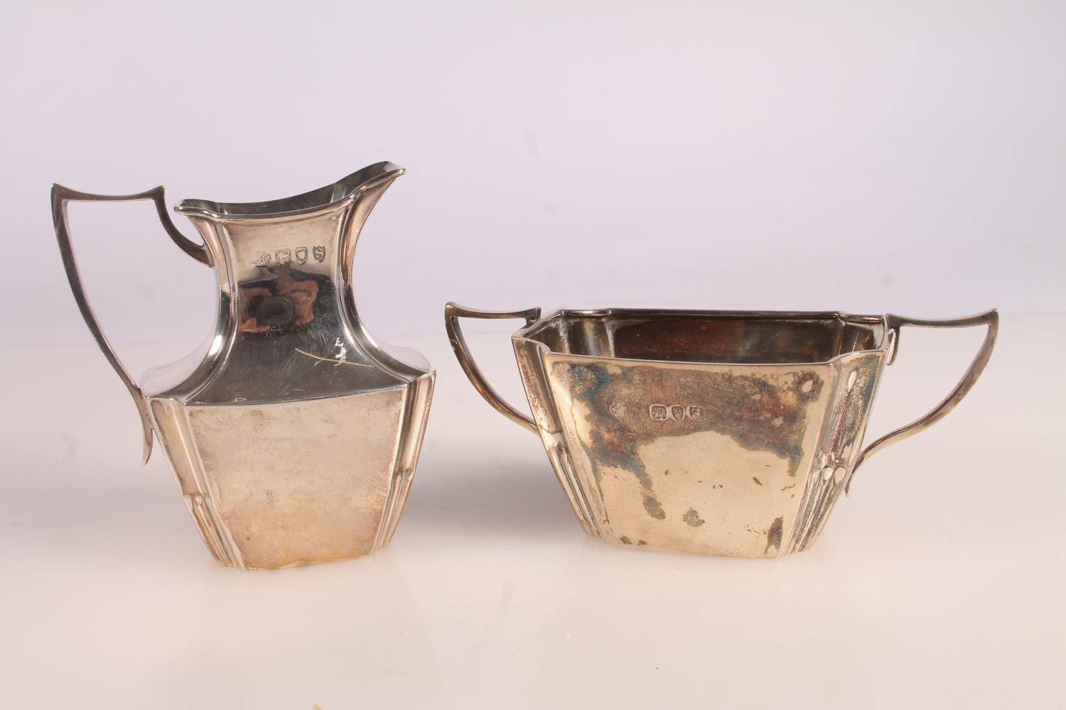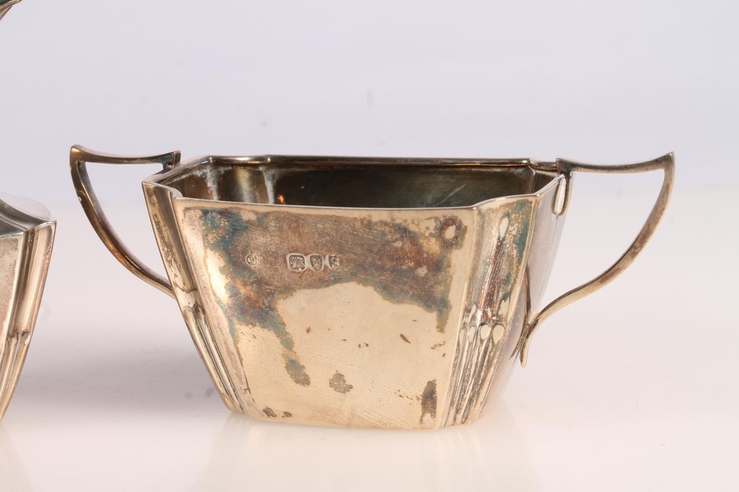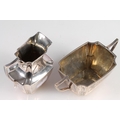 Victorian silver three piece bachelors tea set, the teapot w...