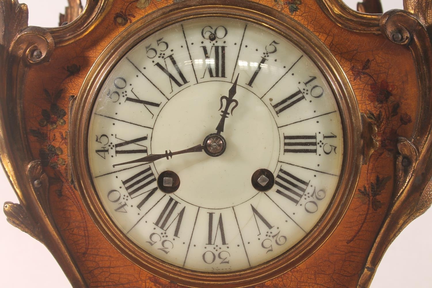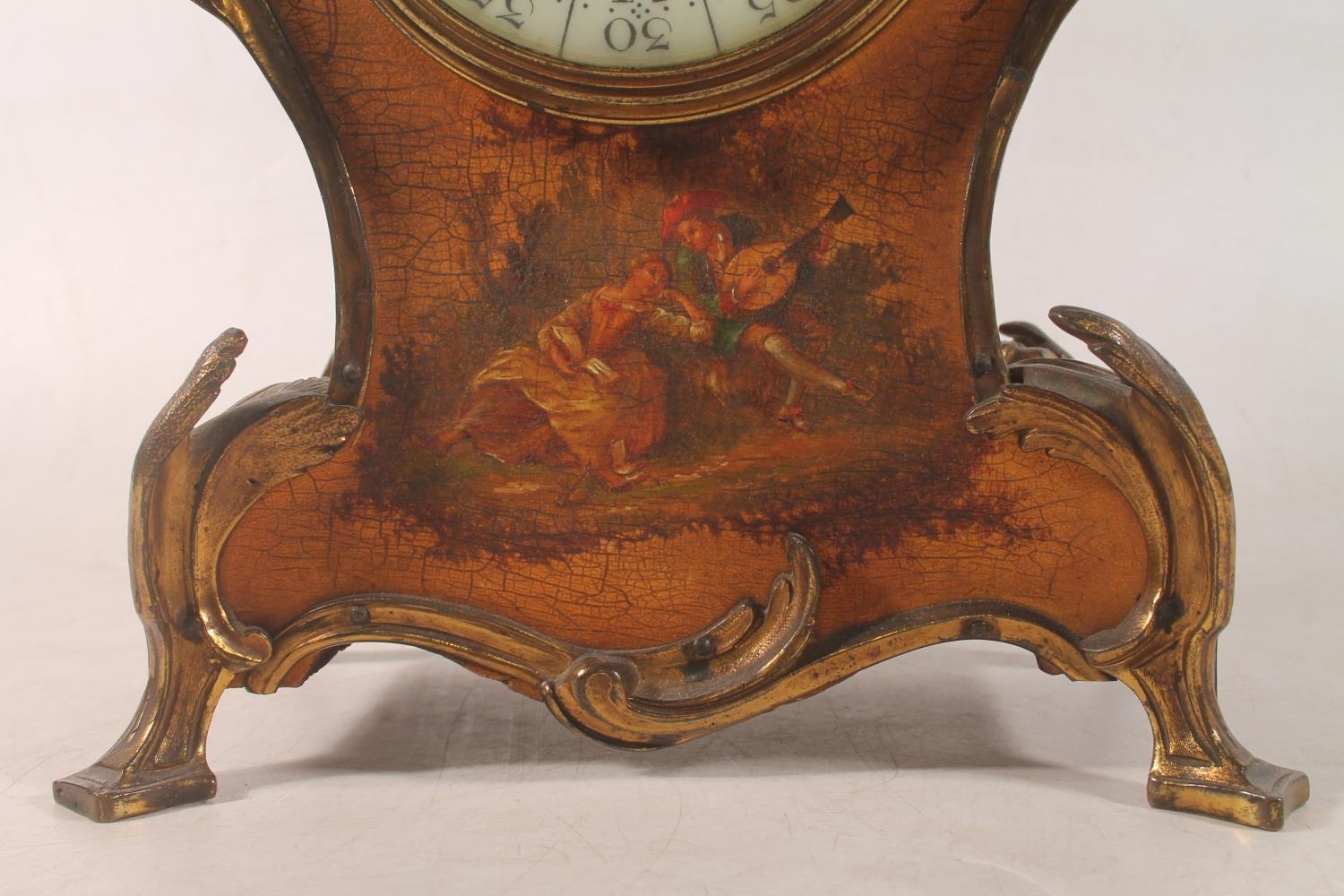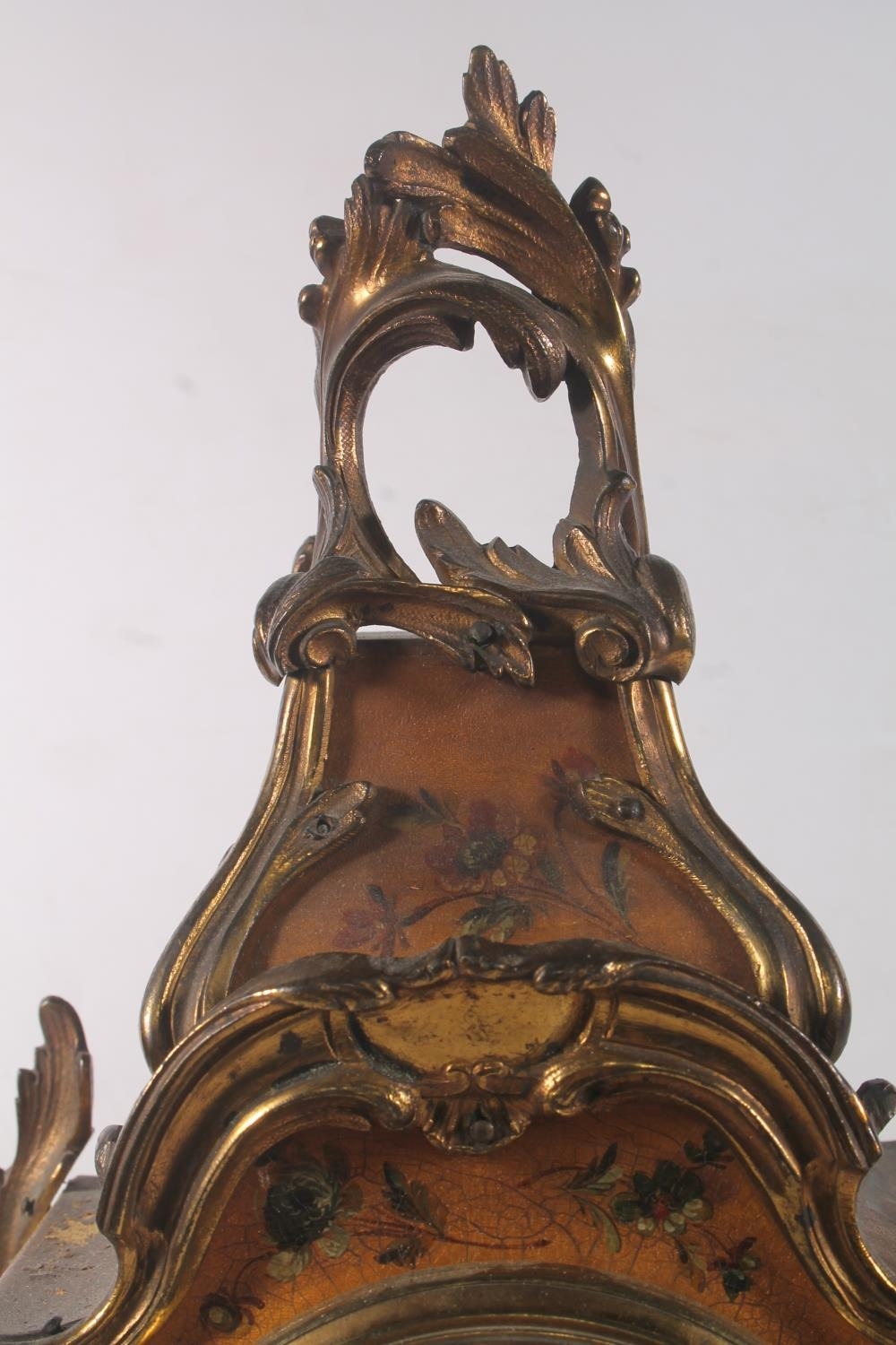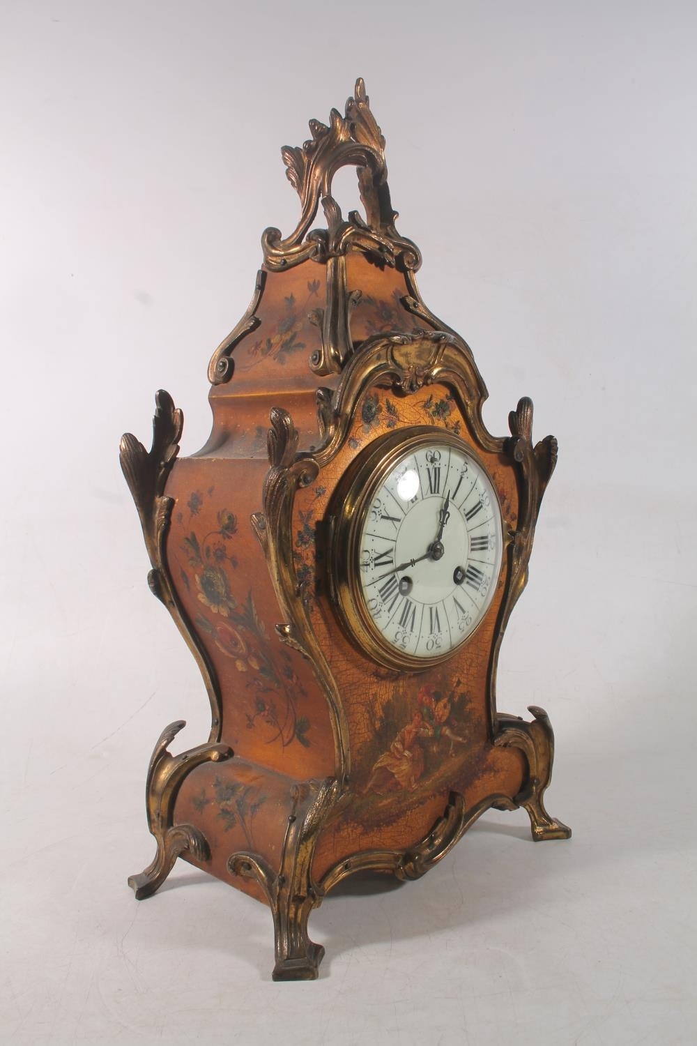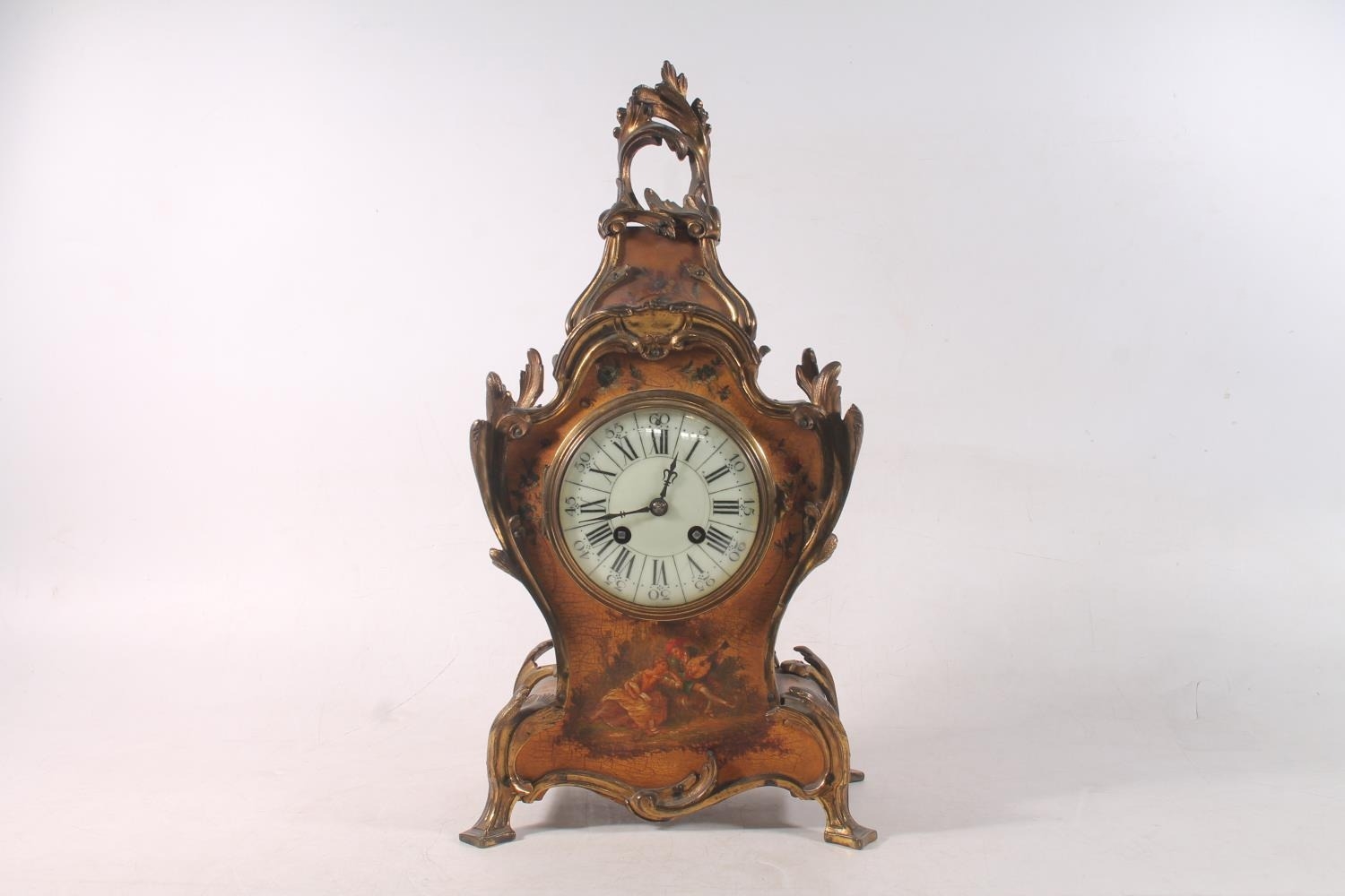 French Rococo style painted giltwood mantel clock, the movem...