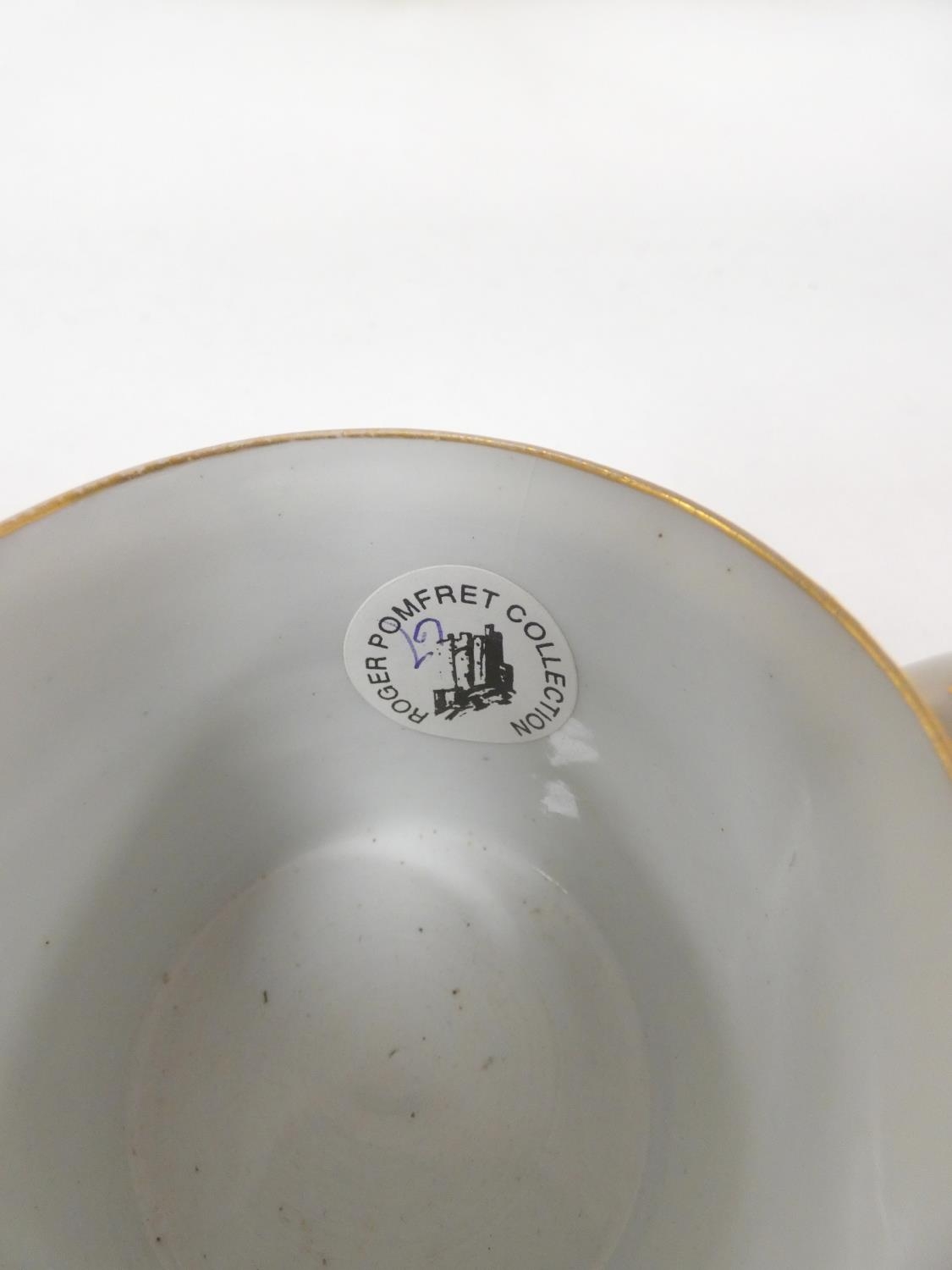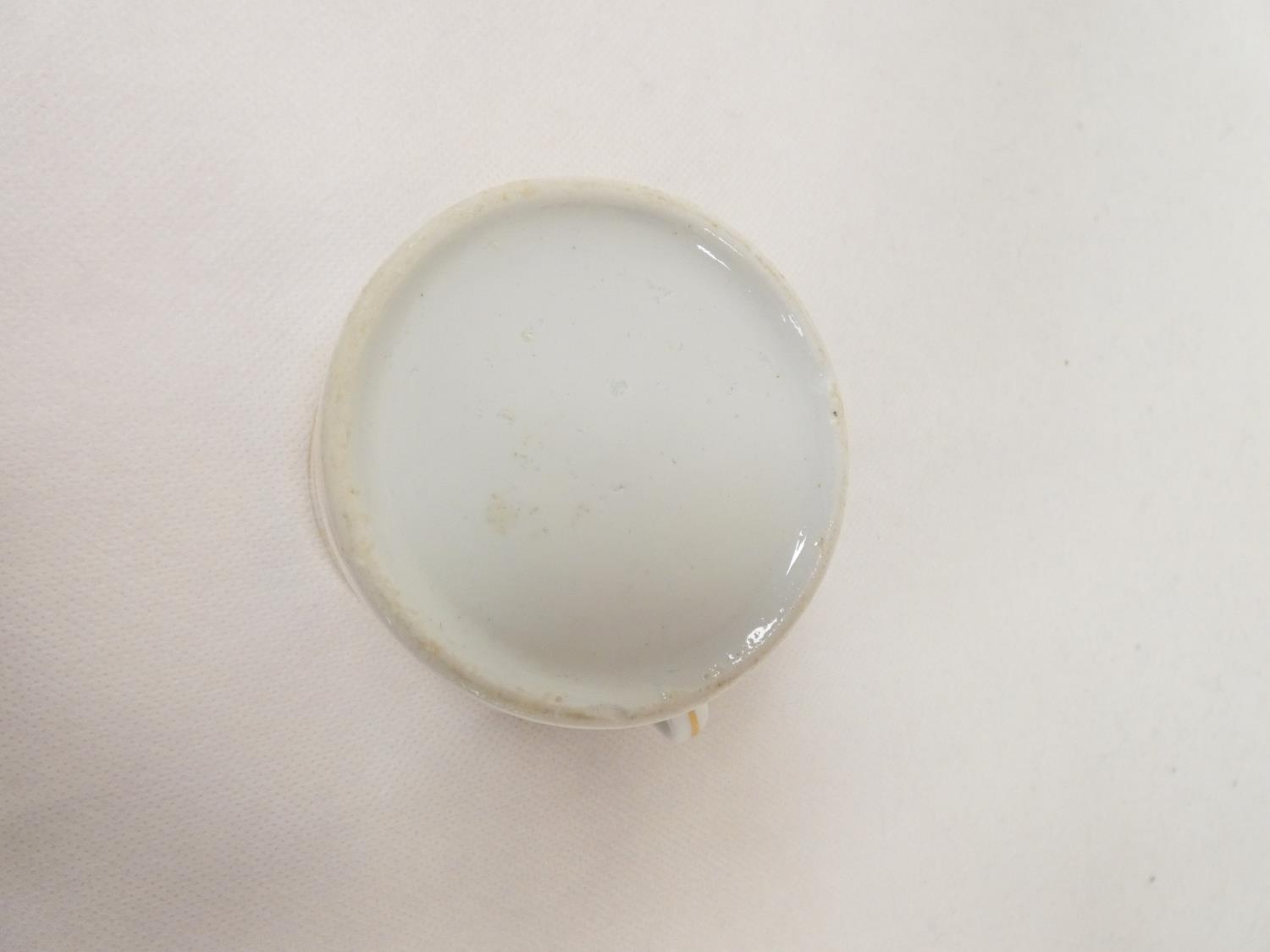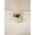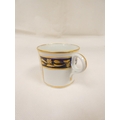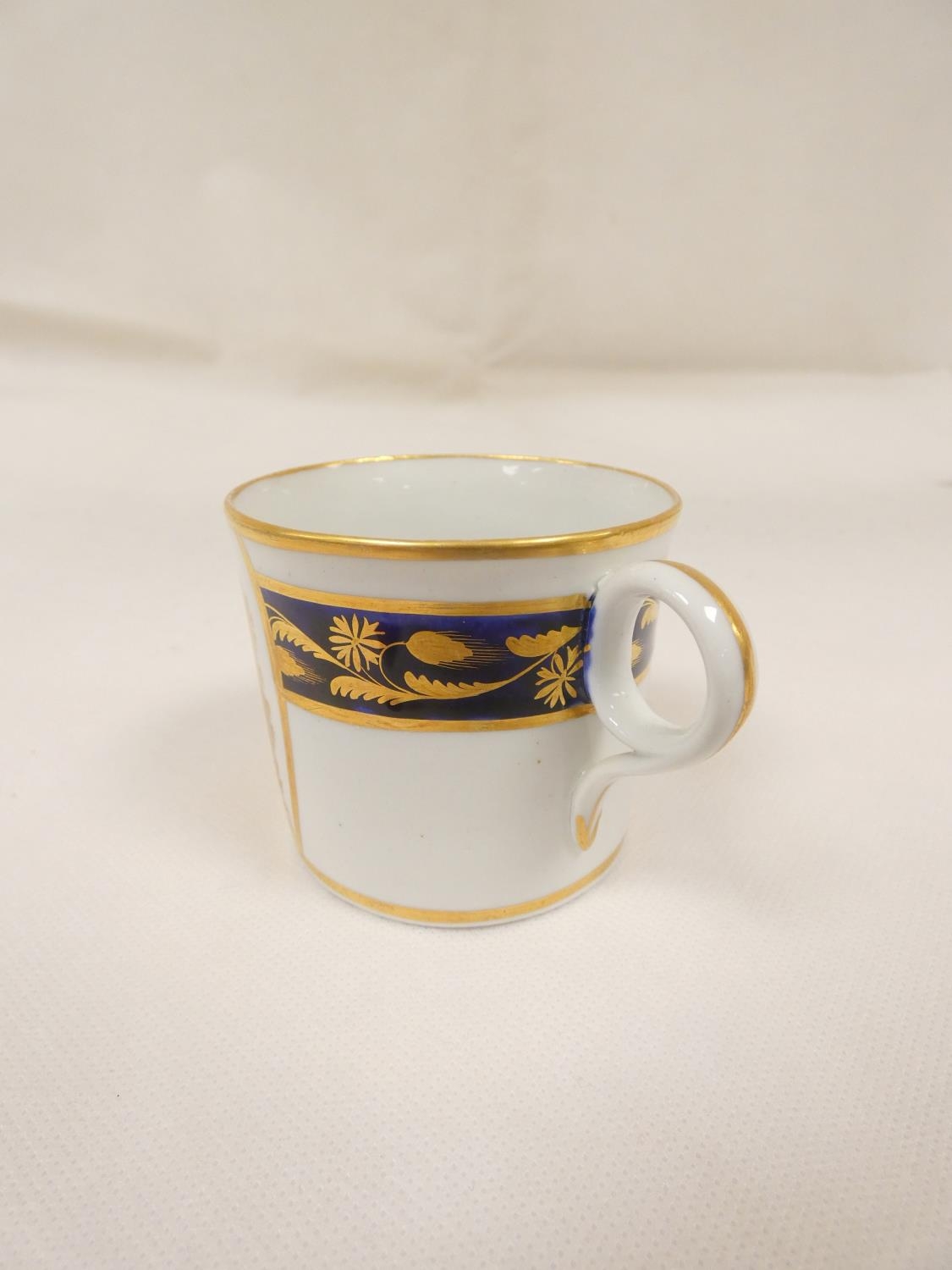 New Hall coffee can, a mountain and lake landscape printed in gold, blue and gold foliate band to reverse, ring handle, unmarked but Warburton's patent, 6cm high, c.1810.